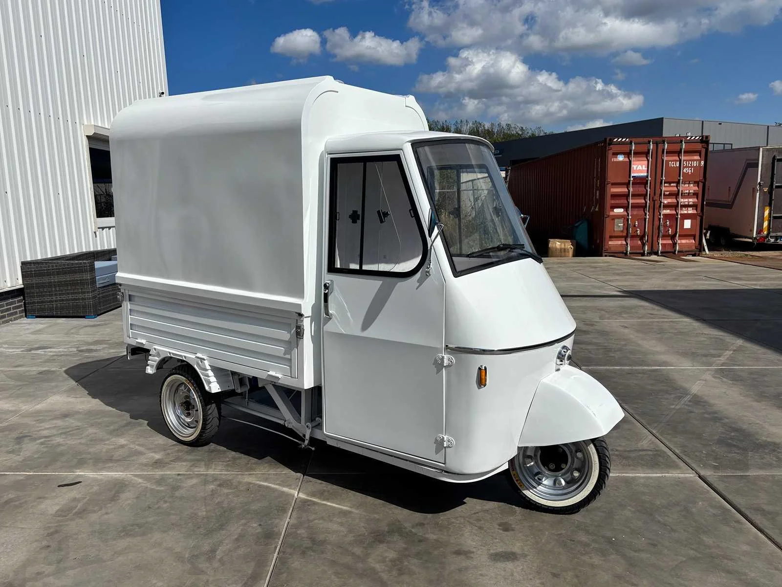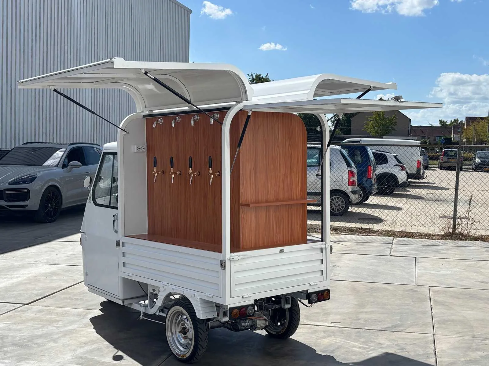Piaggio APE (look) omgebouwd tot rijdende biertap Voorzien van tapinstallatie 4 drafts Mogelijkheid tot 4 biervaten in koelinstallatie Electrisch aangedreven 50kmph (zonder kenteken) (NEW) Nee Merk: Vespa Type: APE Model: Drafts Kleur: wit Bouwjaar: 2025 Datum eerste toelating: 2025 Lengte: 2800 Breedte: 1060 Hoogte: 1950