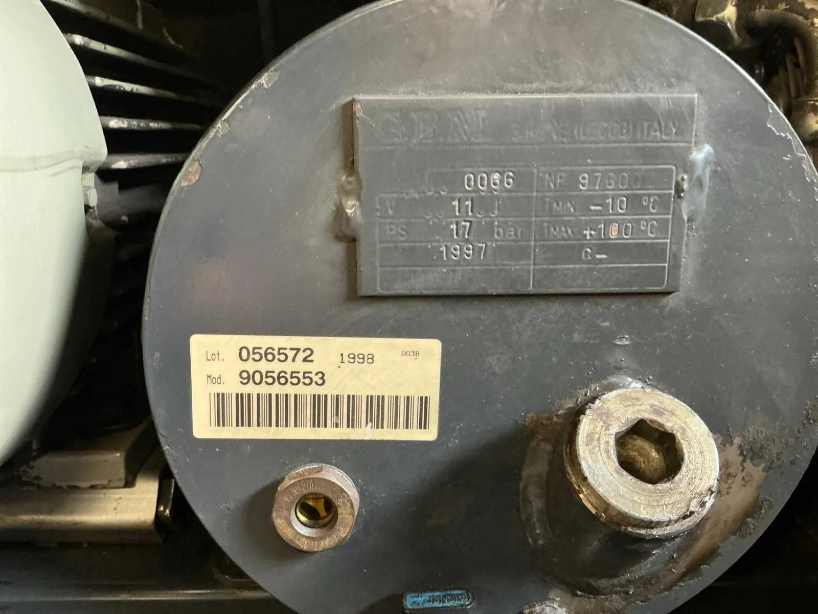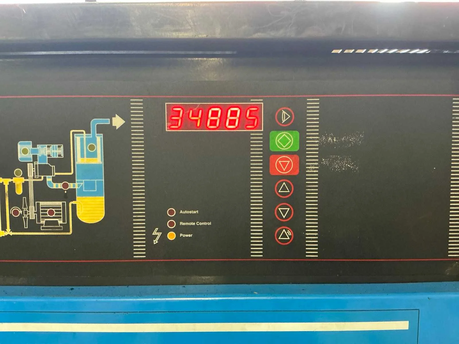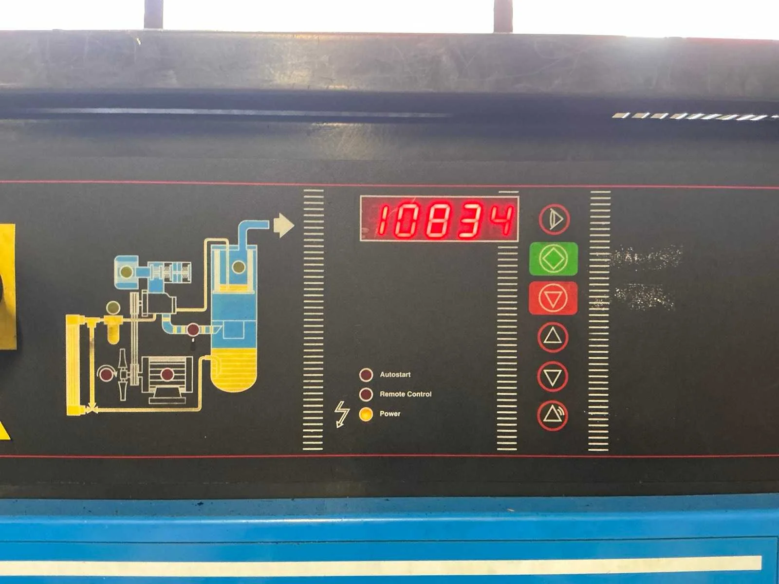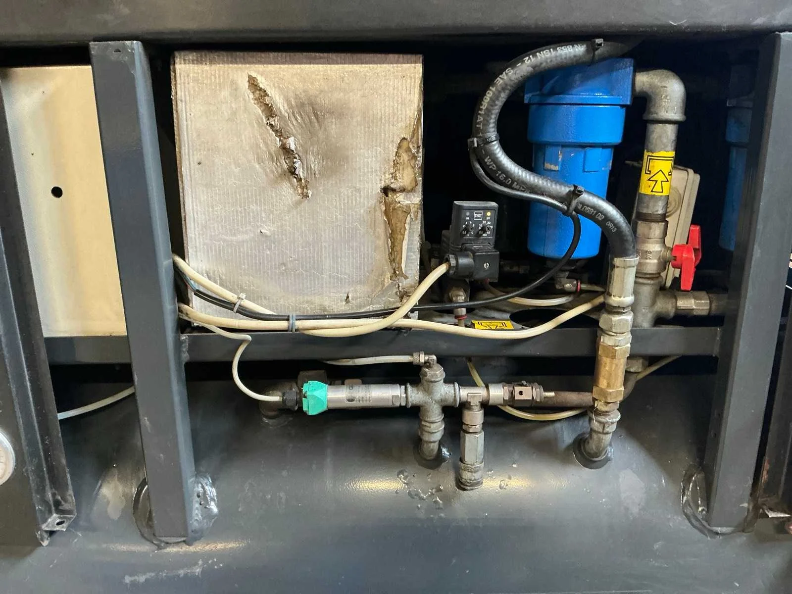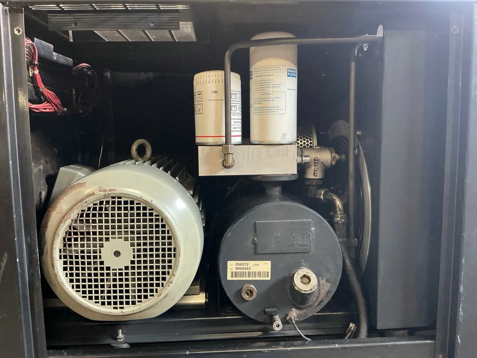 Voorzien van: noodstop, display, drukmeter, temperatuur bewaking, luchtdroger, geluidsisolatie. Nee Merk: Abac Type: VT 1510 EF 500 Bouwjaar: 1998 Serienummer: SD015036 G Capaciteit.: 10bar Luchtstroom: 1490l/min Vermogen: 11kW Buffertank inhoud: 500l Afgelezen urenstand: 10834 Aansluiting: 380V Eigen gewicht: 400kg Totale afmeting L: 1900mm Totale afmeting Breedte: 600mm Totale afmeting Hoogte: 1700mm