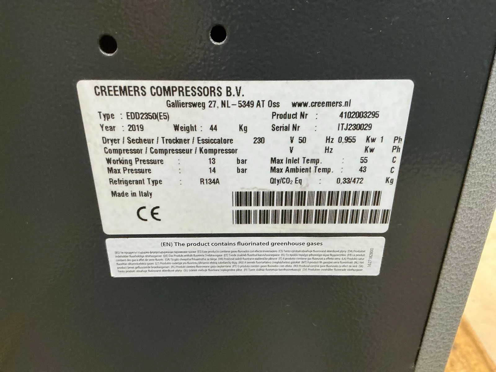 2019 creemers edd2350 luchtdroger