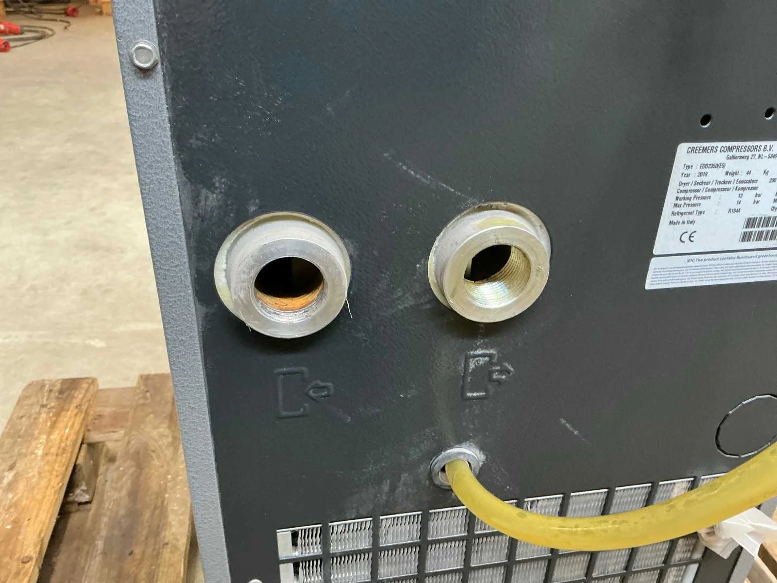 Voorzien van: display, werkdruk 13 bar, max druk 14 Bar, max. Inlaat temperatuur 55C°. Nee Merk: Creemers Type: EDD2350 Bouwjaar: 2019 Serienummer: ITJ230029 Aansluiting: 230V Eigen gewicht: 44kg Totale afmeting L: 500mm Totale afmeting Breedte: 400mm Totale afmeting Hoogte: 800mm
