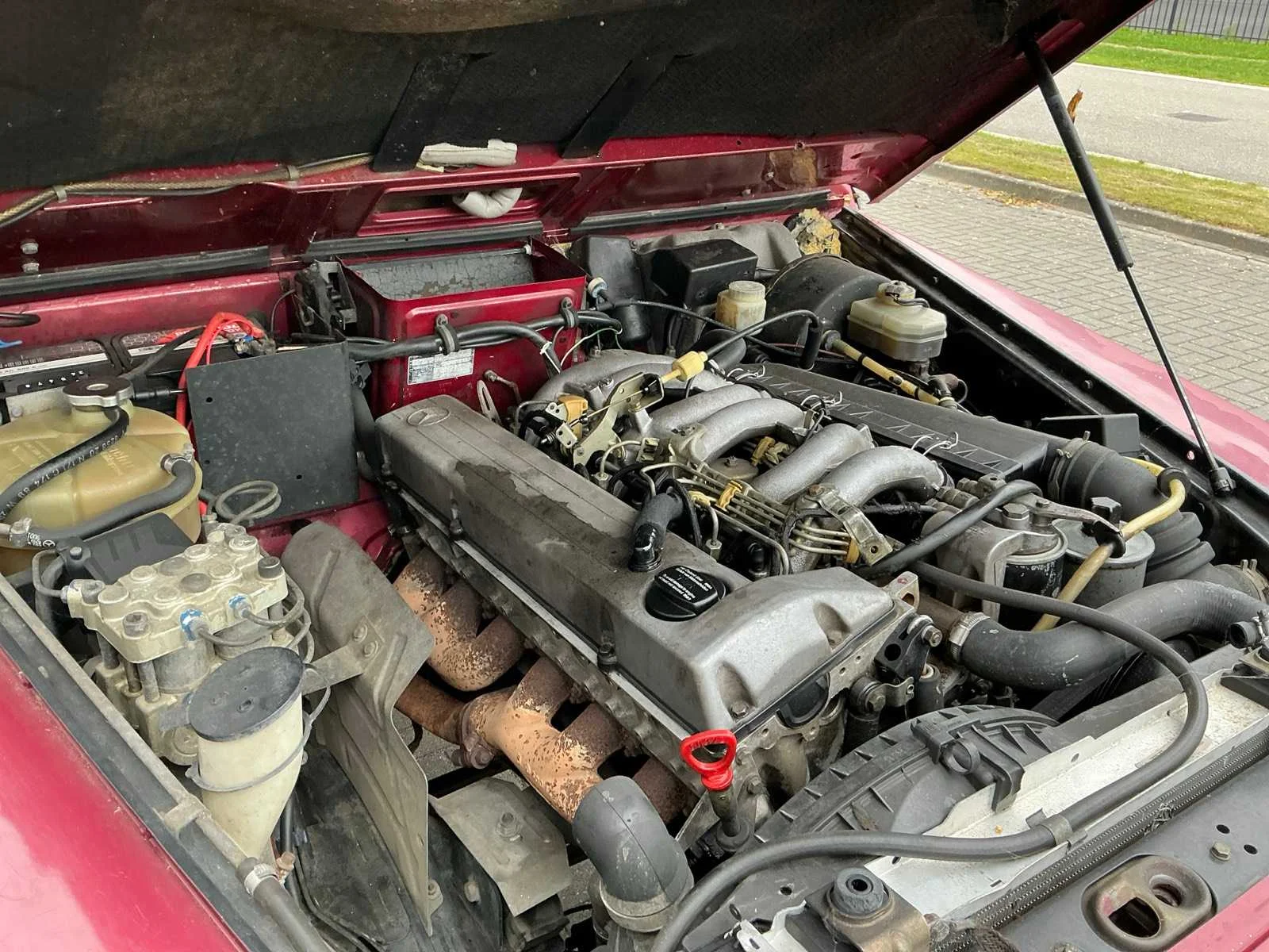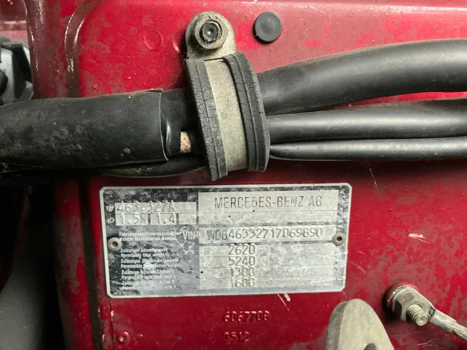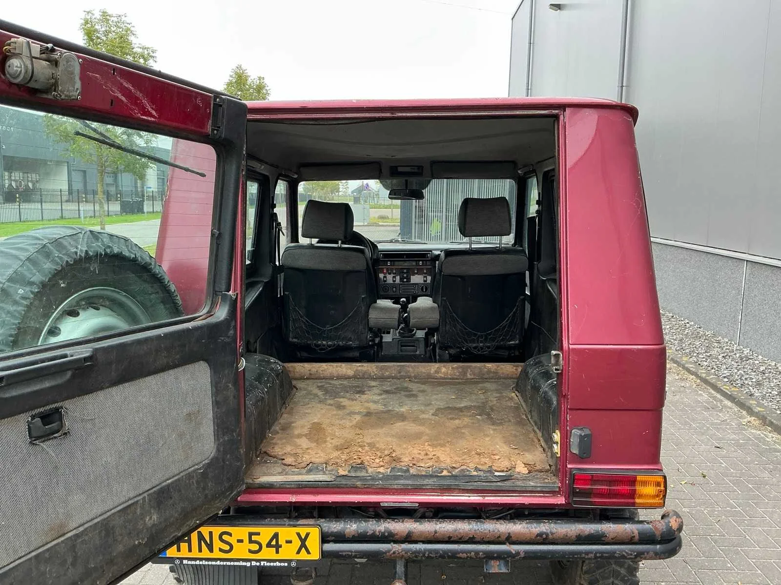 Afmetingen: 210 cm hoog, 180 cm breed, 420 cm lang. Voorzien van: 6 cilinder dieselmotor, handgeschakelde 5 versnellingsbak, korte wielbasis, elektronisch inschakelbaar sperdifferentieel voor en achter, hoge lage giering, elektrische 3,5T lier, trekhaak, aangepaste veren en schokdempers, schuiframen, kunststof brandstoftank, elektrische ramen, ABS, hoofdstroomschakelaar. Nee Kenteken: HNS-54-X Merk: Mercedes-Benz Model: G-klasse 300GD Type: W463 Bouwjaar: 1990 Afgelezen kilometerstand: 365995km Cilinderinhoud: 2996cc Vermogen (kW): 83kW Brandstof: diesel Chassisnummer: WDB46332717069890 Laadvermogen: 500kg NAP status: Geldig Datum eerste toelating: 1990-12-05 APK vervaldatum: 2027-02-02 Vermogen (pk): 113hp Aandrijving: Vierwielaandrijving Aantal zitplaatsen: 2 Maximaal trekgewicht ongeremd: 750kg Maximaal trekgewicht geremd: 2620kg Kleur: rood Transmissie: Handgeschakeld Stuurwiel: Links Emissieklasse: 0 Aantal deuren: 3 Aantal sleutels: 1 Ledig gewicht: 2120kg Velgmaat: 16 Bruto BPM (NL): 0€ Rest BPM: 0€ Aantal cilinders: 6 Carrosserie: stationwagen Nationaliteit documenten: Nederlands Carfax Link: https://was.carfax.eu/v0/api/ccdid/5100016408/svc/201/vinreg/HNS54X/checksum/eyJhbGciOiJIUzI1NiIsInR5cCI6IkpXVCJ9.eyJleHAiOjE3NjUzNjE3MTJ9.3OlhSdo5p4eA7Jw6ZYWwiHAEq4TckMkwpxK-Wpns7PE Start en rijdt: Ja Keuringsrapport geldig tot: 02-02-2027 Self drive export possible : true Vierwielaandrijving 4x4: true