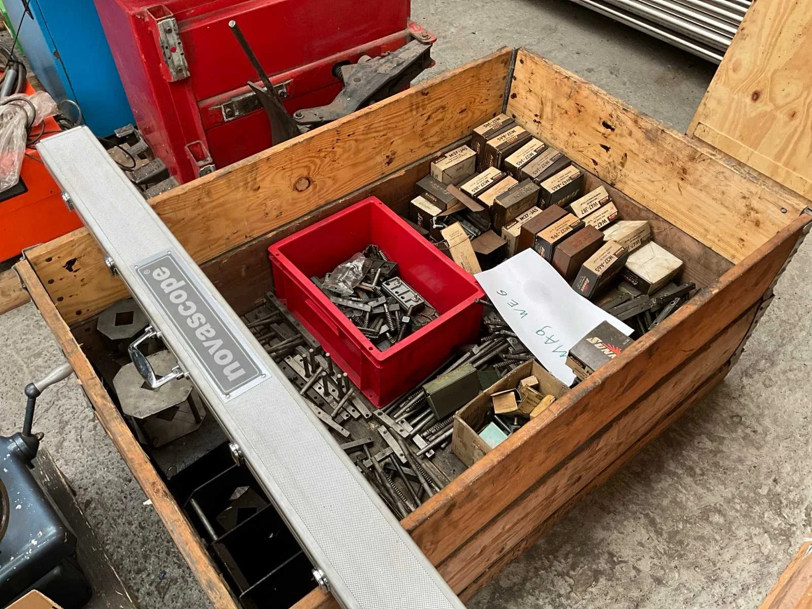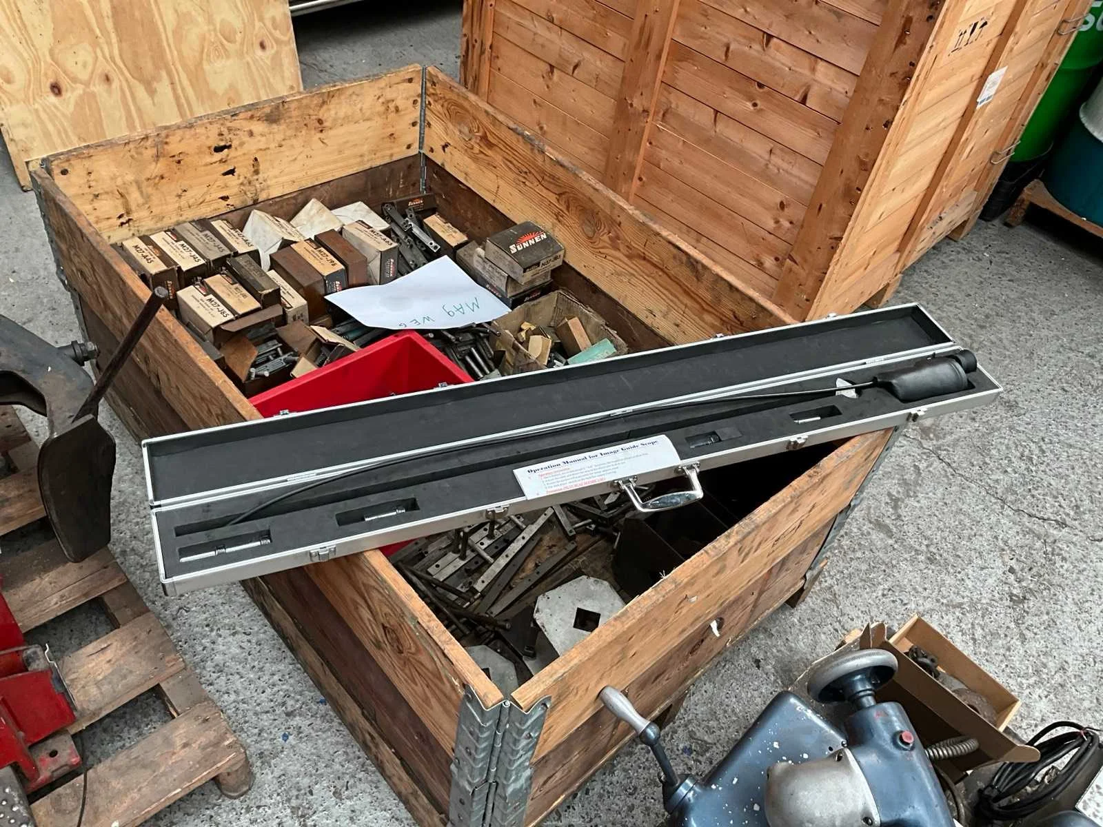 Betreft, Bosch ETT 008.55 gastester MHC222 (defect) gastester SUN MGA 1500 ( moet geijkt worden) co tester Facom banden monteerapparaat Beissat Microline 1800 uitlijnapparaat Novascope inspectiecamera Klepslijpmachine Black & Decker T01 Partij Hoonstenen Pneumatische pers Nee