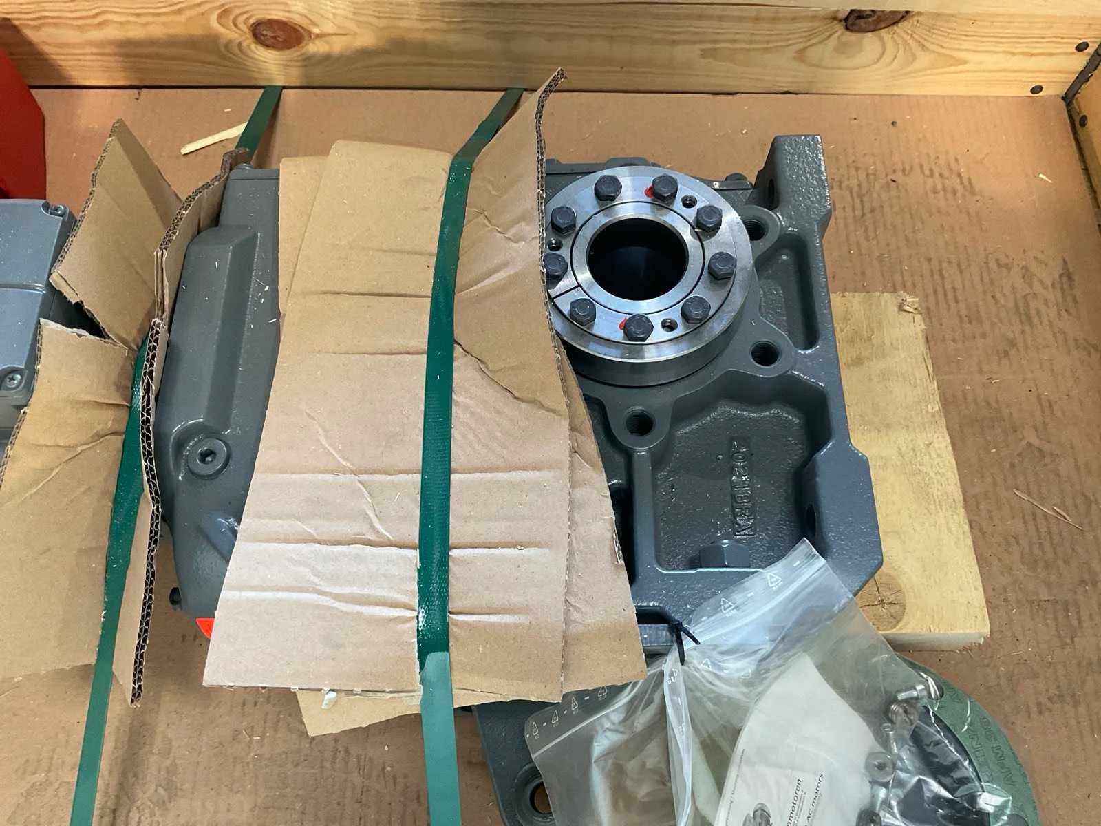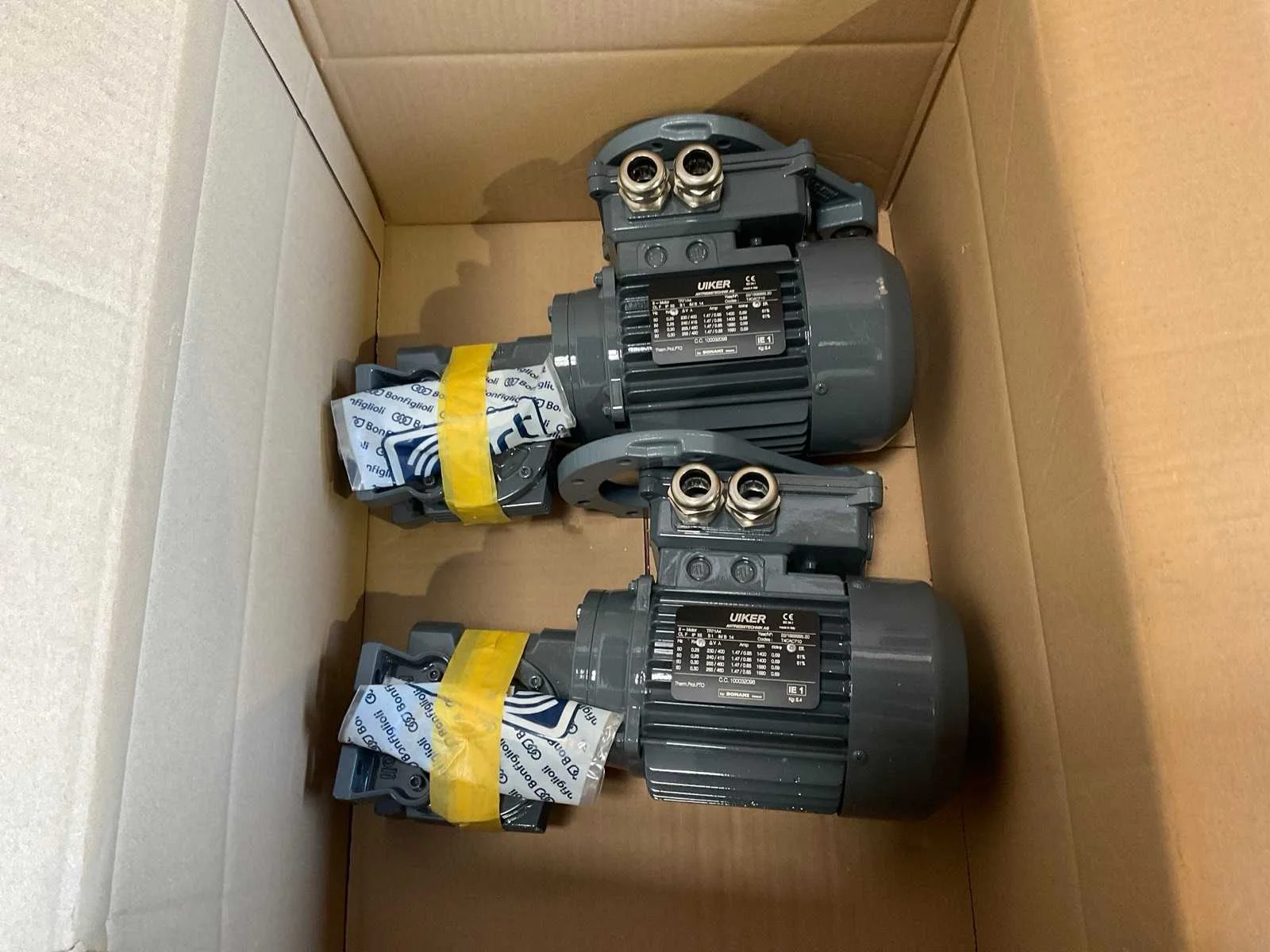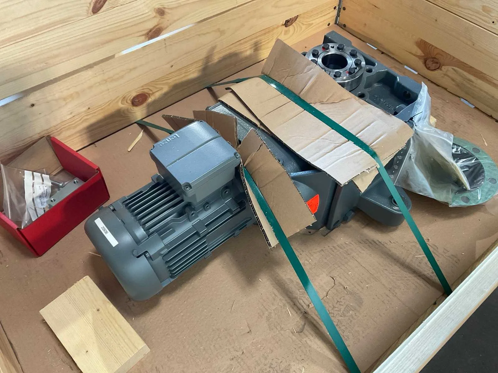 Bestaande uit: 1x SEW-Eurodrive 4,6kw met haakse overbrenging, 2x Uiker 0,2kw met haakse overbrenging, 1x Uiker 0,3kw met haakse overbrenging , 2x WEG 2,2kw, 1x Lenze 2,6kw met haakse overbrenging Nee