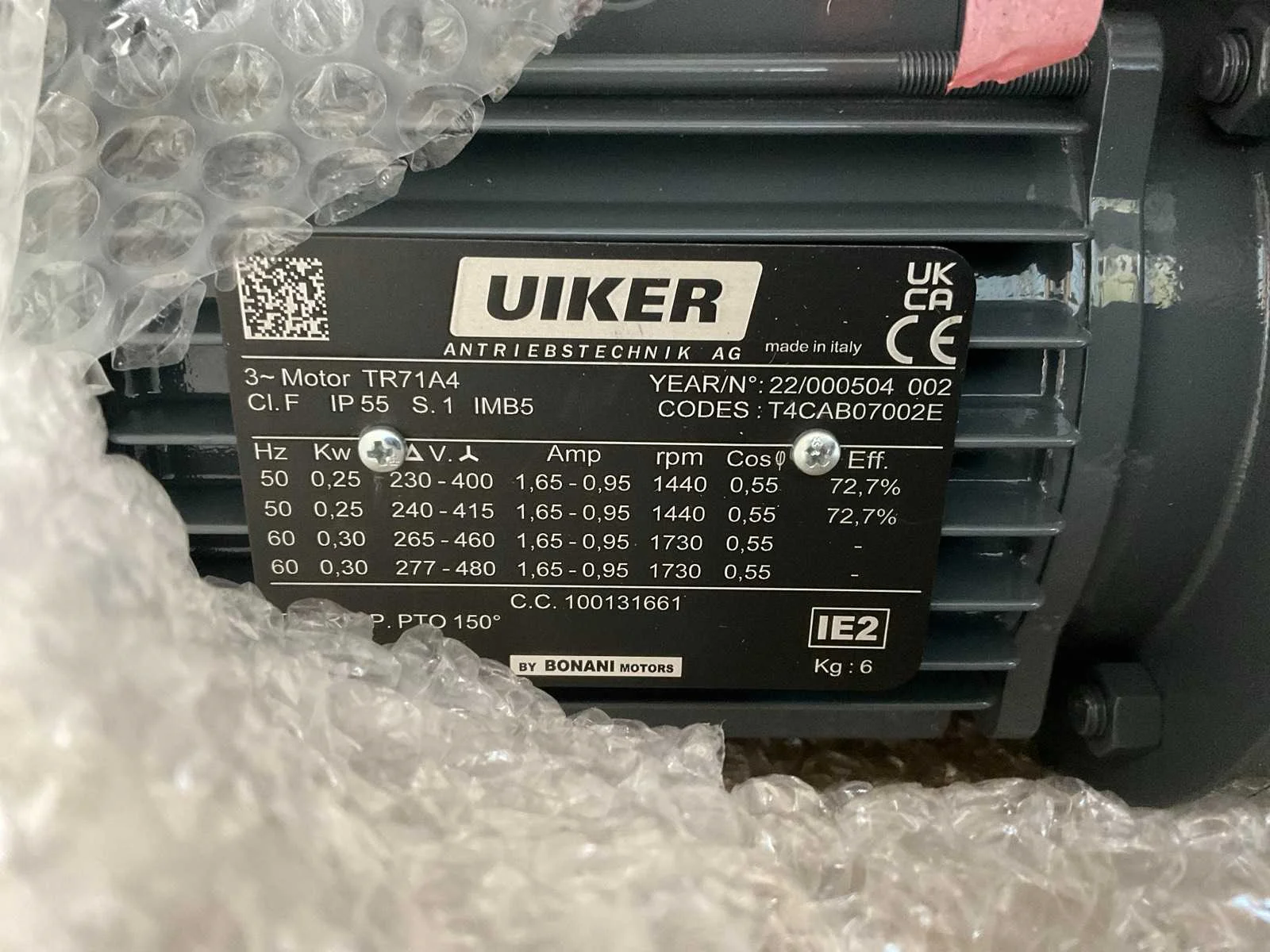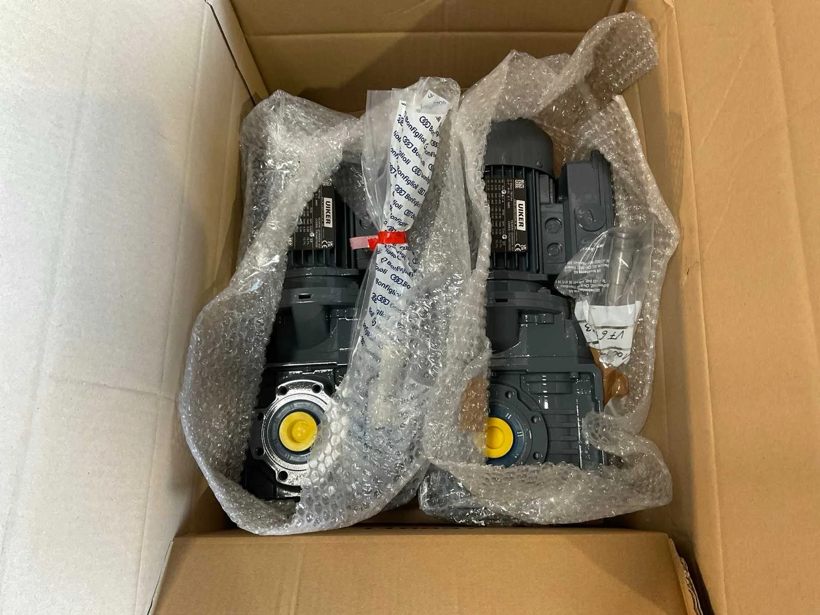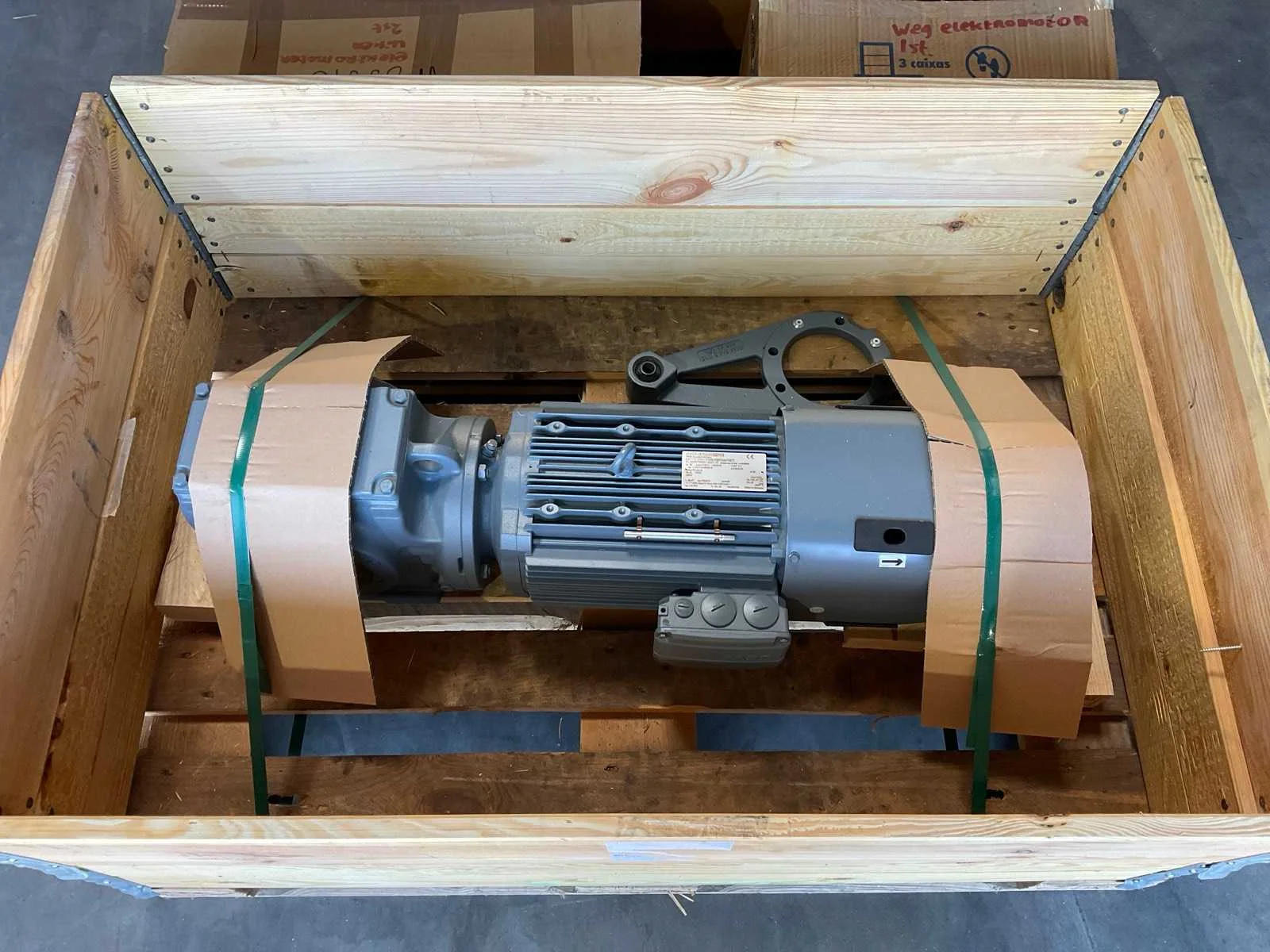Bestaande uit: 1x SEW-Eurodrive 4,6kw met haakse overbrenging, 2x Uiker 0,2kw met haakse overbrenging, 1x Uiker 0,3kw met haakse overbrenging , 2x WEG 2,2kw, 1x Lenze 2,6kw met haakse overbrenging Nee