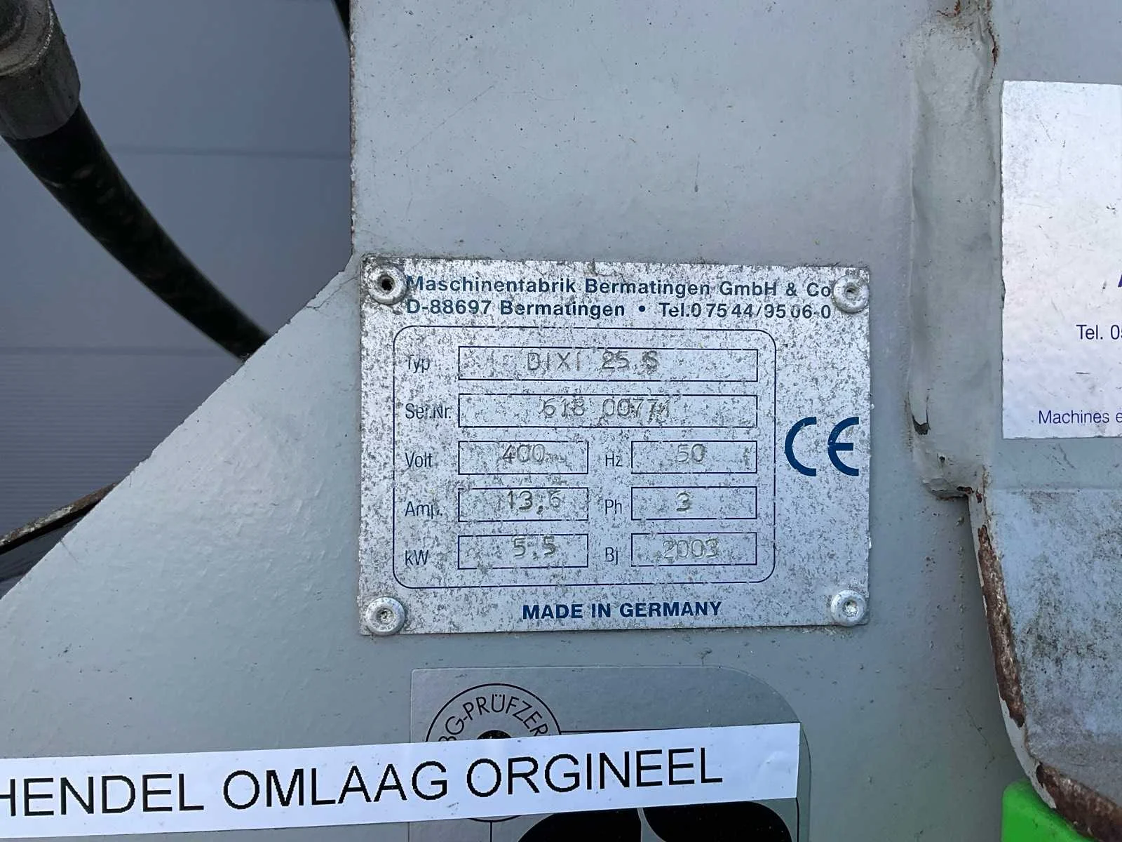 400V, touw bindsysteem, Nee Merk: Dixie Type: 25S Bouwjaar: 2003 Serienummer: 61800771 Balenpers type: true Folie / kartonpers type: true Capaciteit afm. l: 1140mm Capaciteit afm. b: 1550mm Capaciteit afm. h: 3200mm