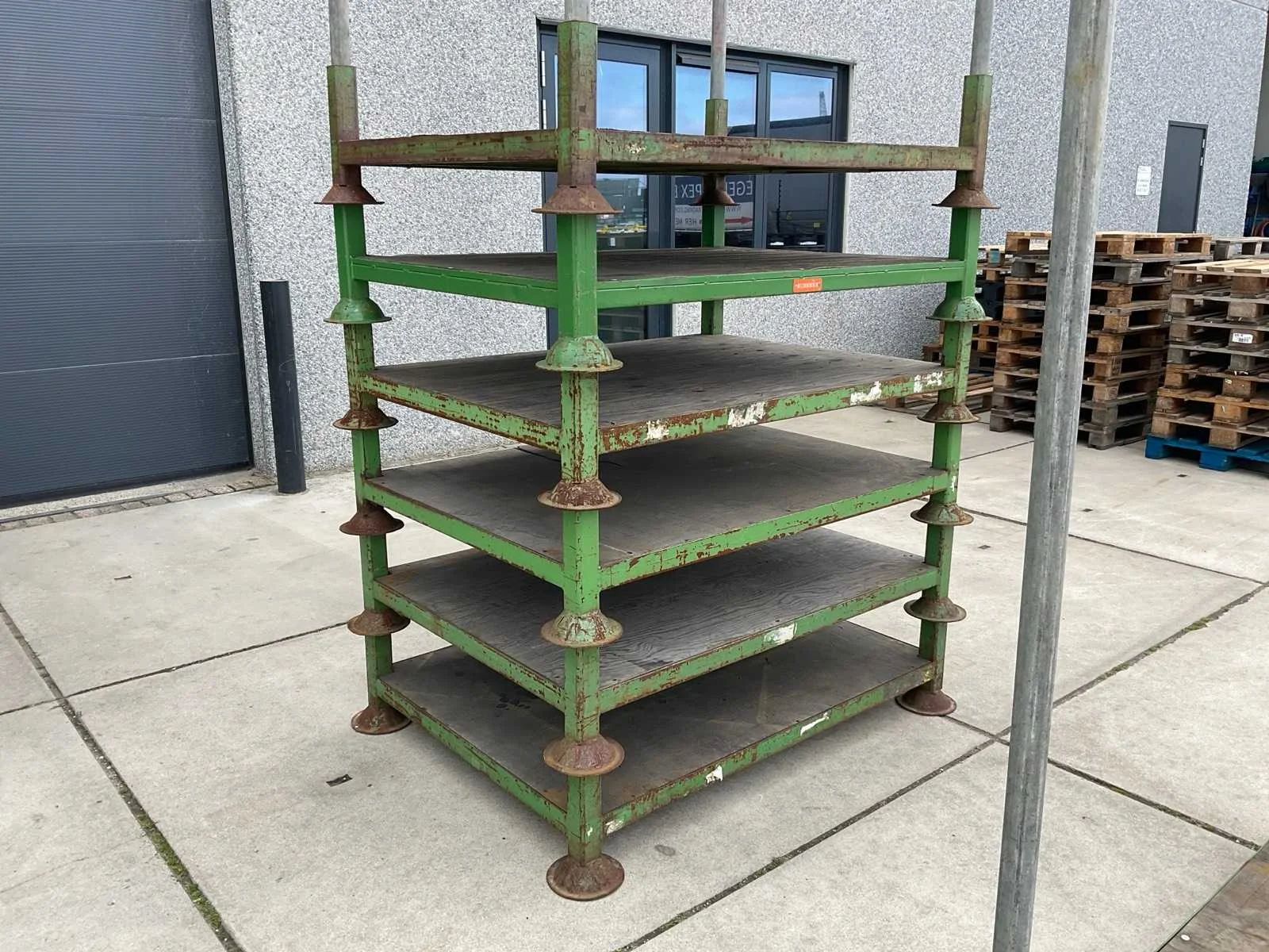 Uit voorraad, niet alle jukken op foto aanwezig, bestaande uit: 20 stapeljukken en 80 verhoogbuizen (1900mm), Nee Afmeting l: 1010mm Afmeting b: 1380mm