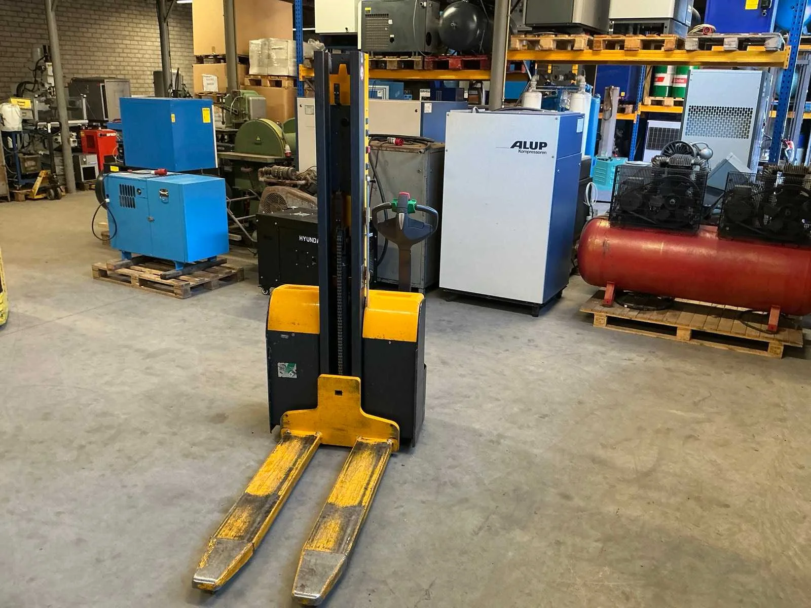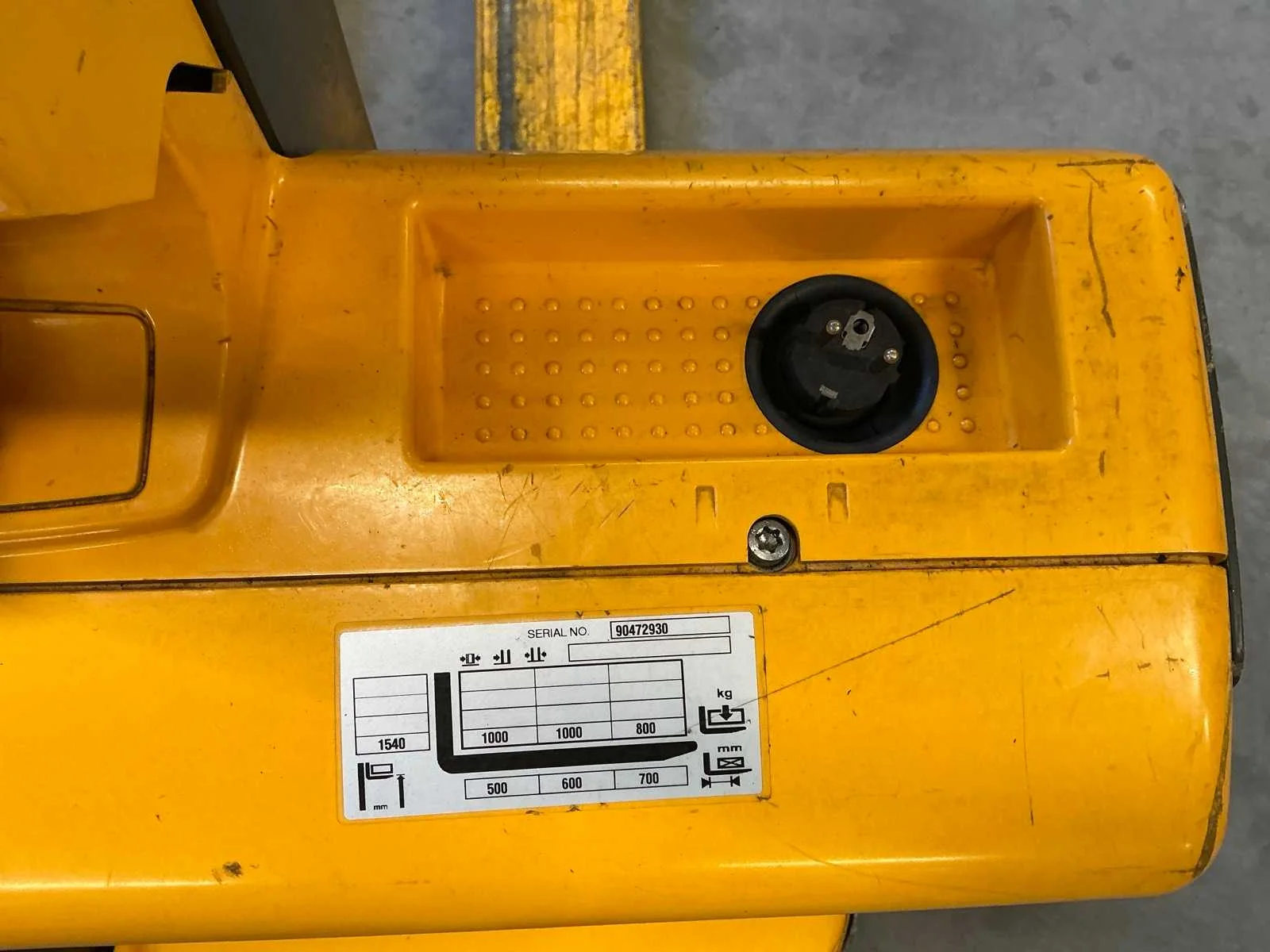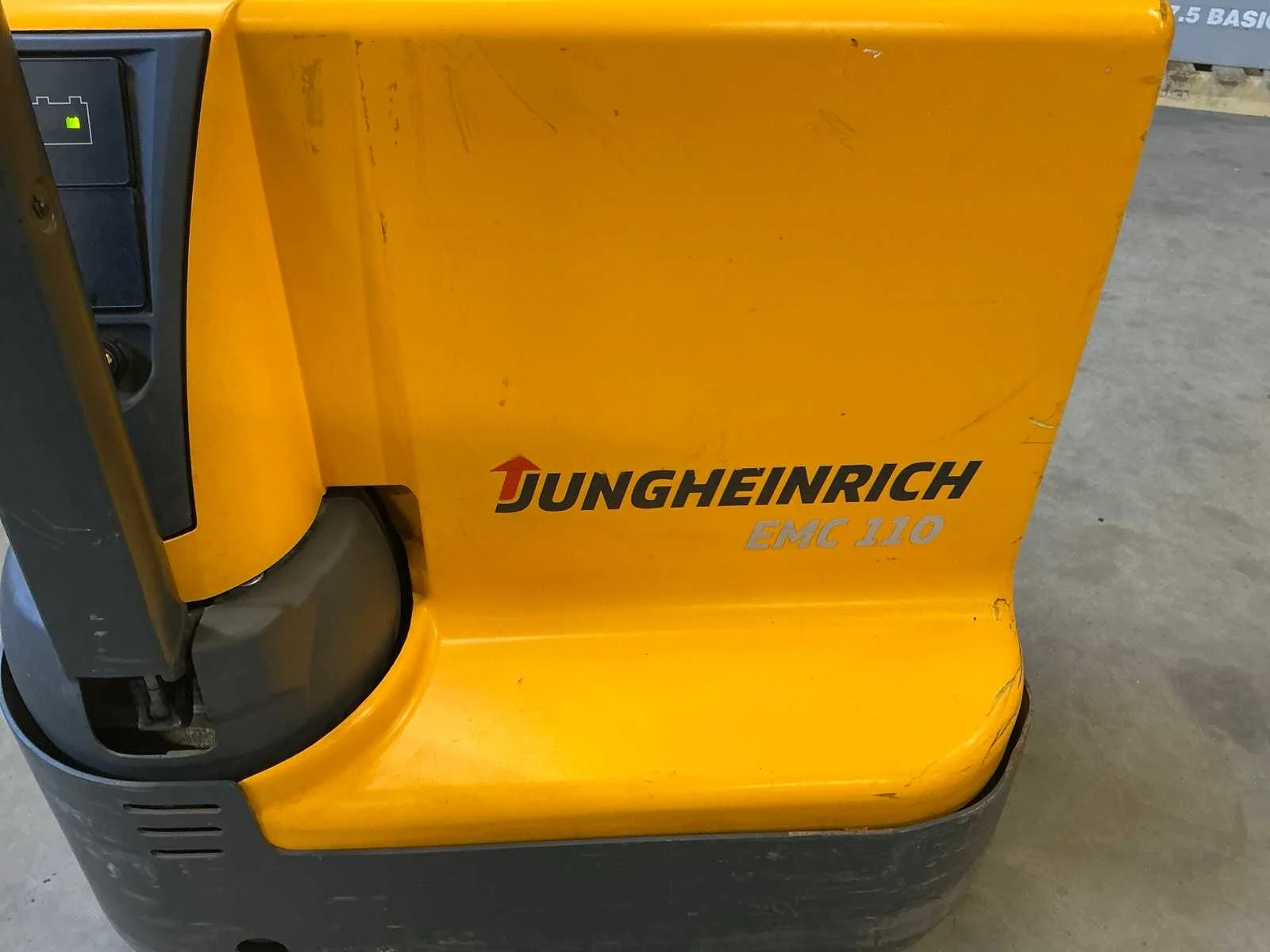 Voorzien van: geïntegreerde accu lader, accu indicatie, bediening op mast en stuurkolom. Nee Merk: Jungheinrich Type: EMC 110 Serienummer: 90472930 Hefvermogen: 1000kg Lepellengte: 1150mm Accu lader: true Totale afmeting L: 1900mm Totale afmeting Breedte: 850mm Totale afmeting Hoogte: 2000mm