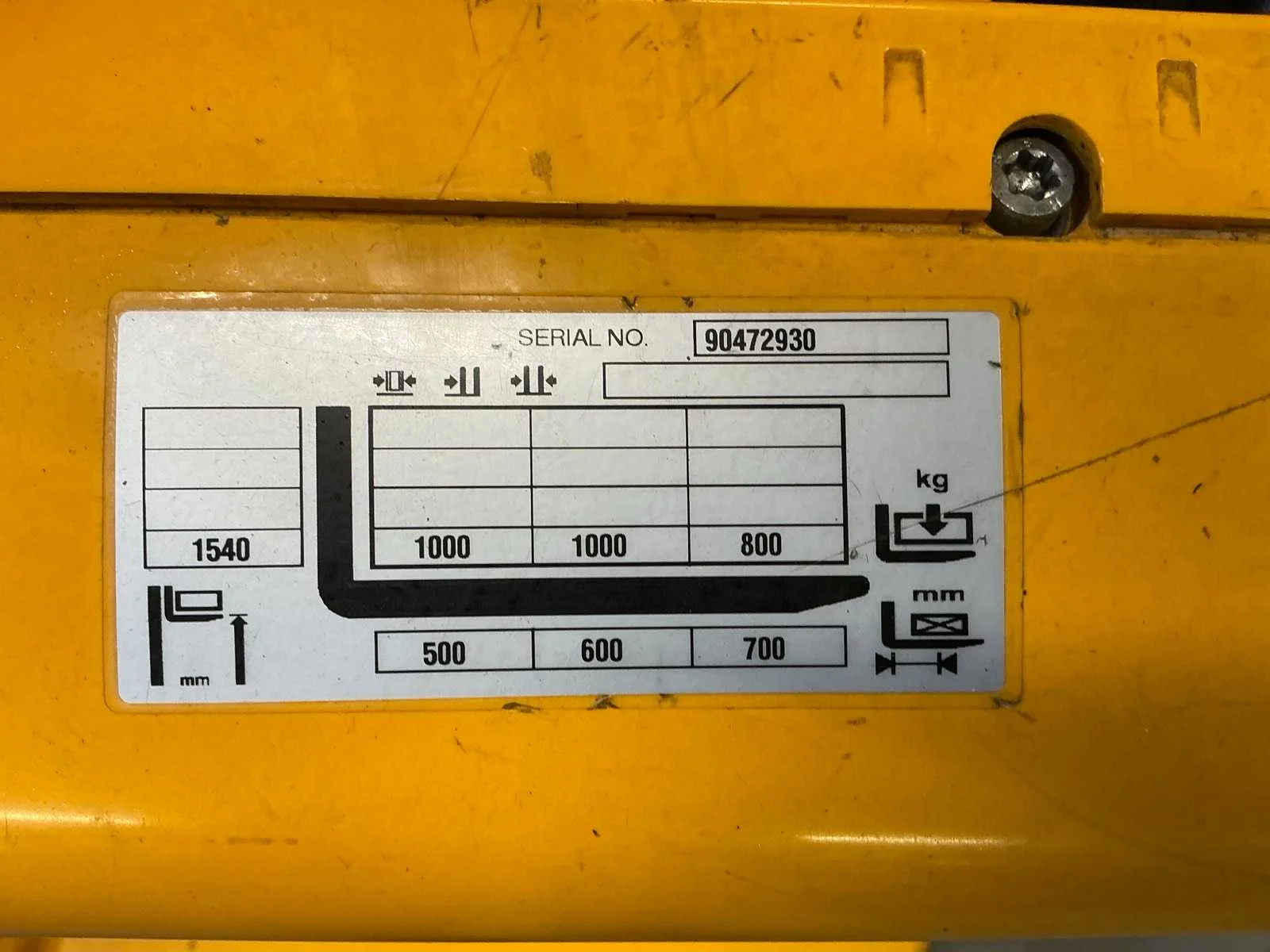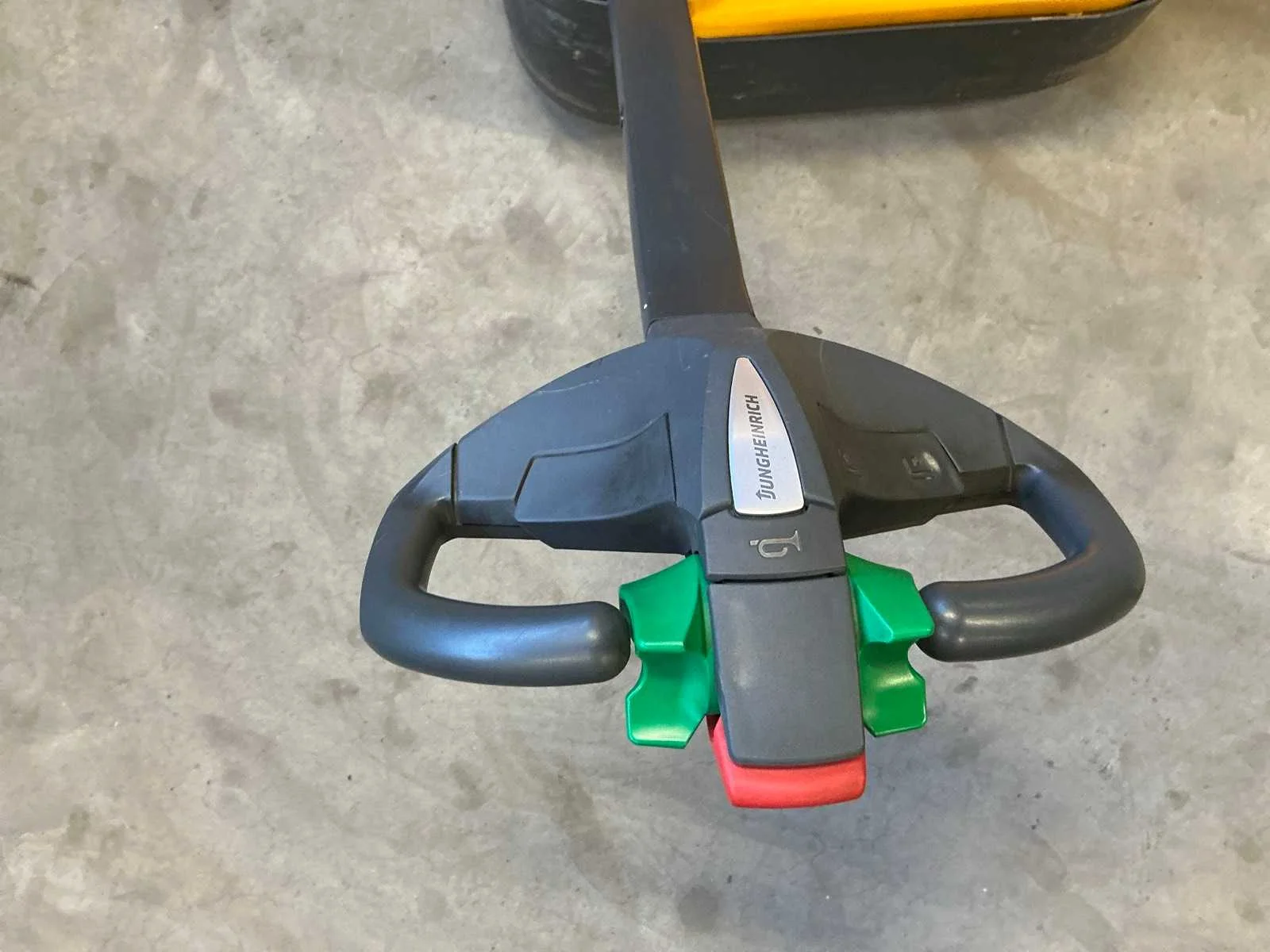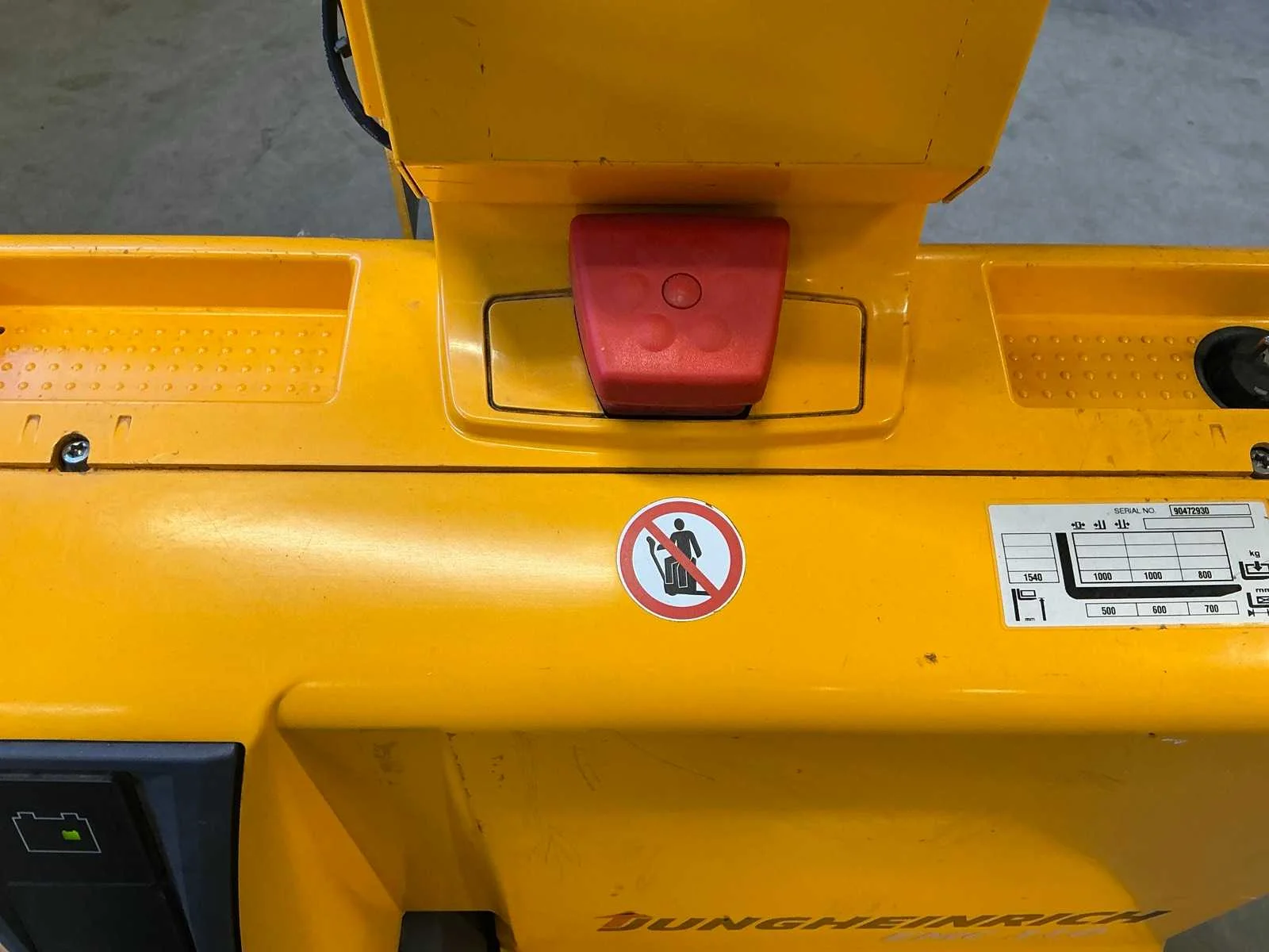 Voorzien van: geïntegreerde accu lader, accu indicatie, bediening op mast en stuurkolom. Nee Merk: Jungheinrich Type: EMC 110 Serienummer: 90472930 Hefvermogen: 1000kg Lepellengte: 1150mm Accu lader: true Totale afmeting L: 1900mm Totale afmeting Breedte: 850mm Totale afmeting Hoogte: 2000mm