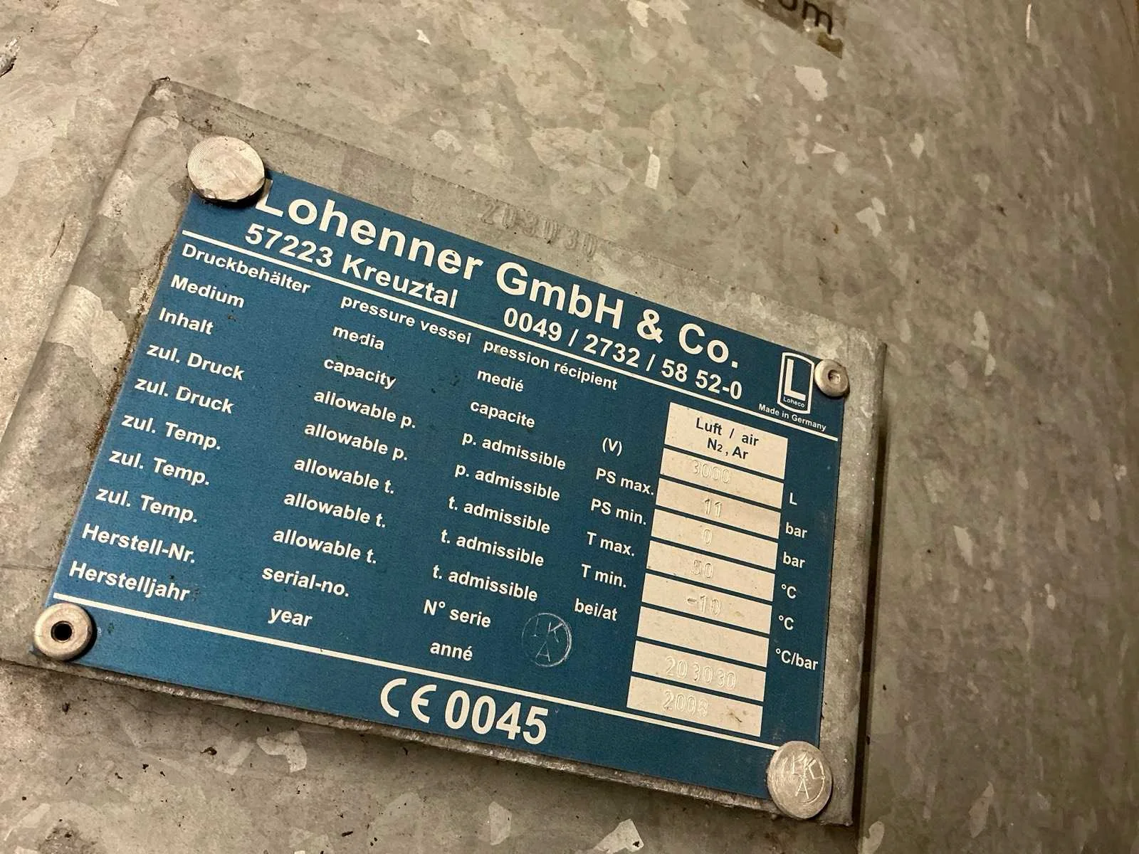 Voorzien van: buffervat 3000ltr, 11 Bar, verticale opstelling, gegalvaniseerd, hijsogen, overdruk ventiel, drukmeter, condensafvoer. Nee Merk: Atlas Copco Type: Buffervat 3000Ltr. Bouwjaar: 2008 Serienummer: 203030 Capaciteit.: 11bar Buffertank inhoud: 3000l Totale afmeting Breedte: 1300mm Totale afmeting Hoogte: 3600mm