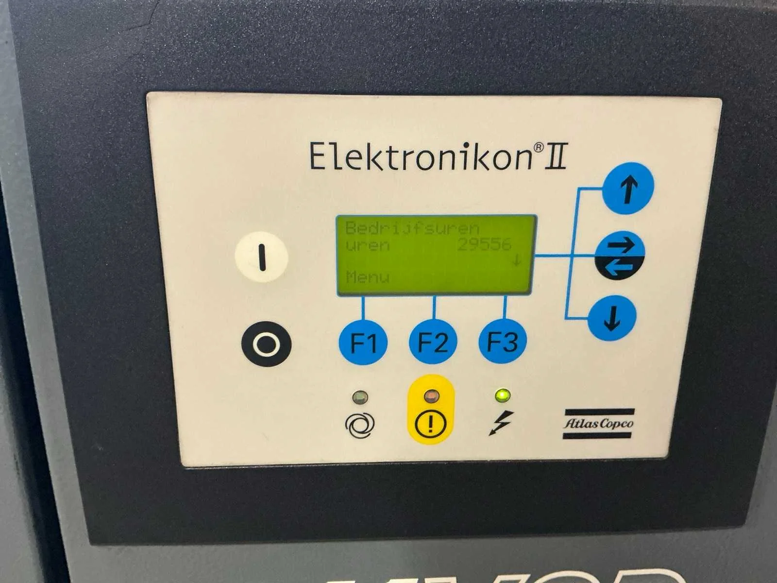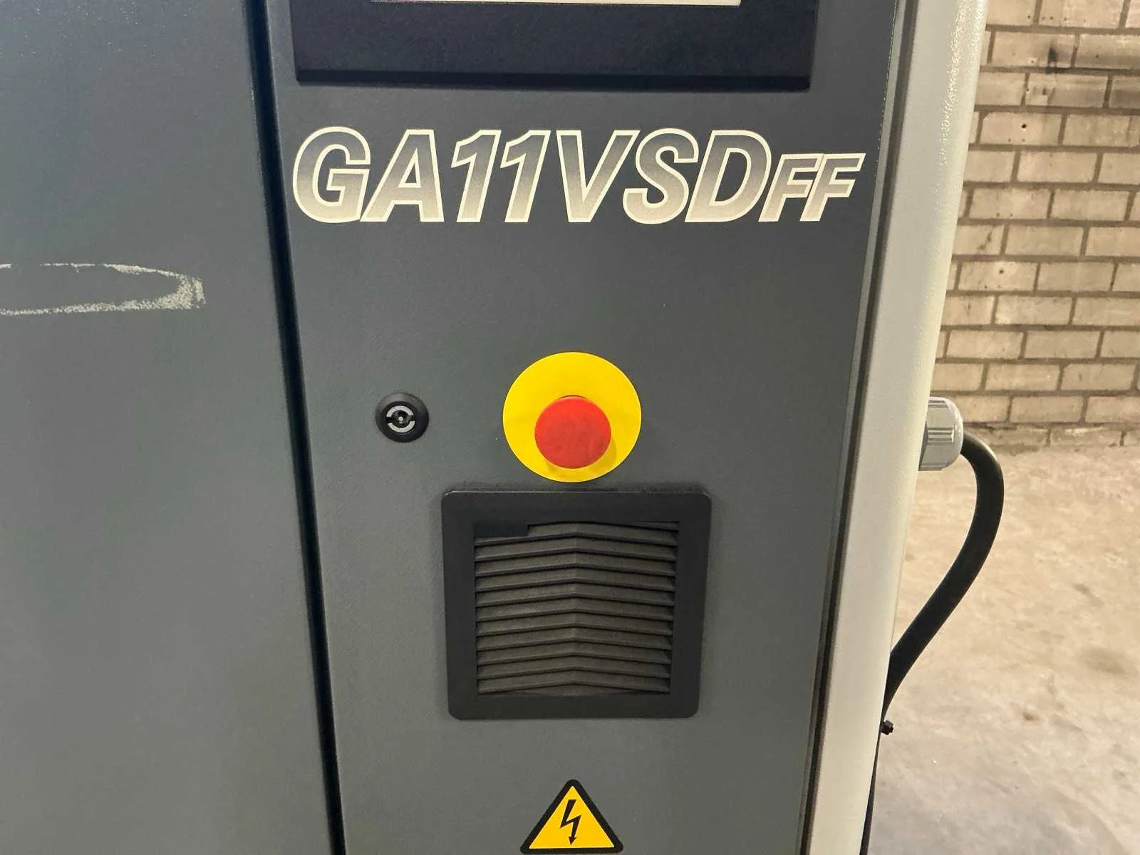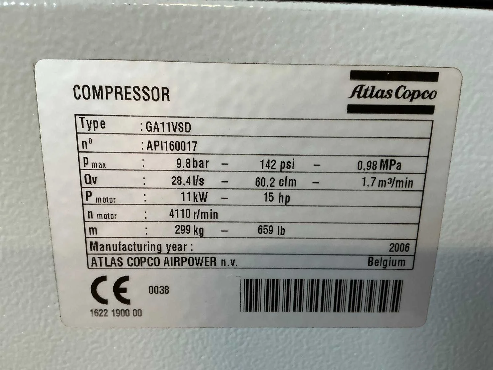 Voorzien van: luchtdroger, noodstop, lcd display, frequentie geregeld. Nee Merk: Atlas Copco Type: GA11VSD ff Bouwjaar: 2006 Serienummer: API160017 Capaciteit.: 9.8bar Luchtstroom: 1700l/min Vermogen: 11kW Luchtdroger: true Aansluiting: 380V Eigen gewicht: 299kg Totale afmeting L: 650mm Totale afmeting Breedte: 1100mm Totale afmeting Hoogte: 1250mm