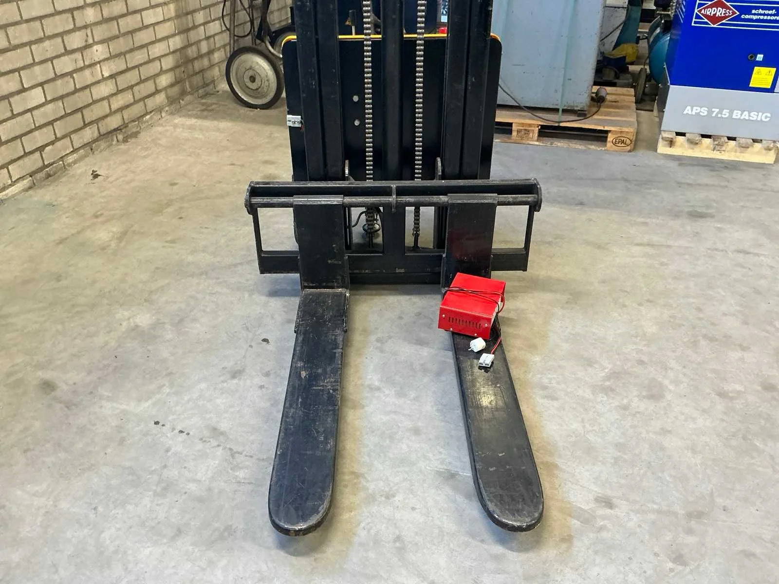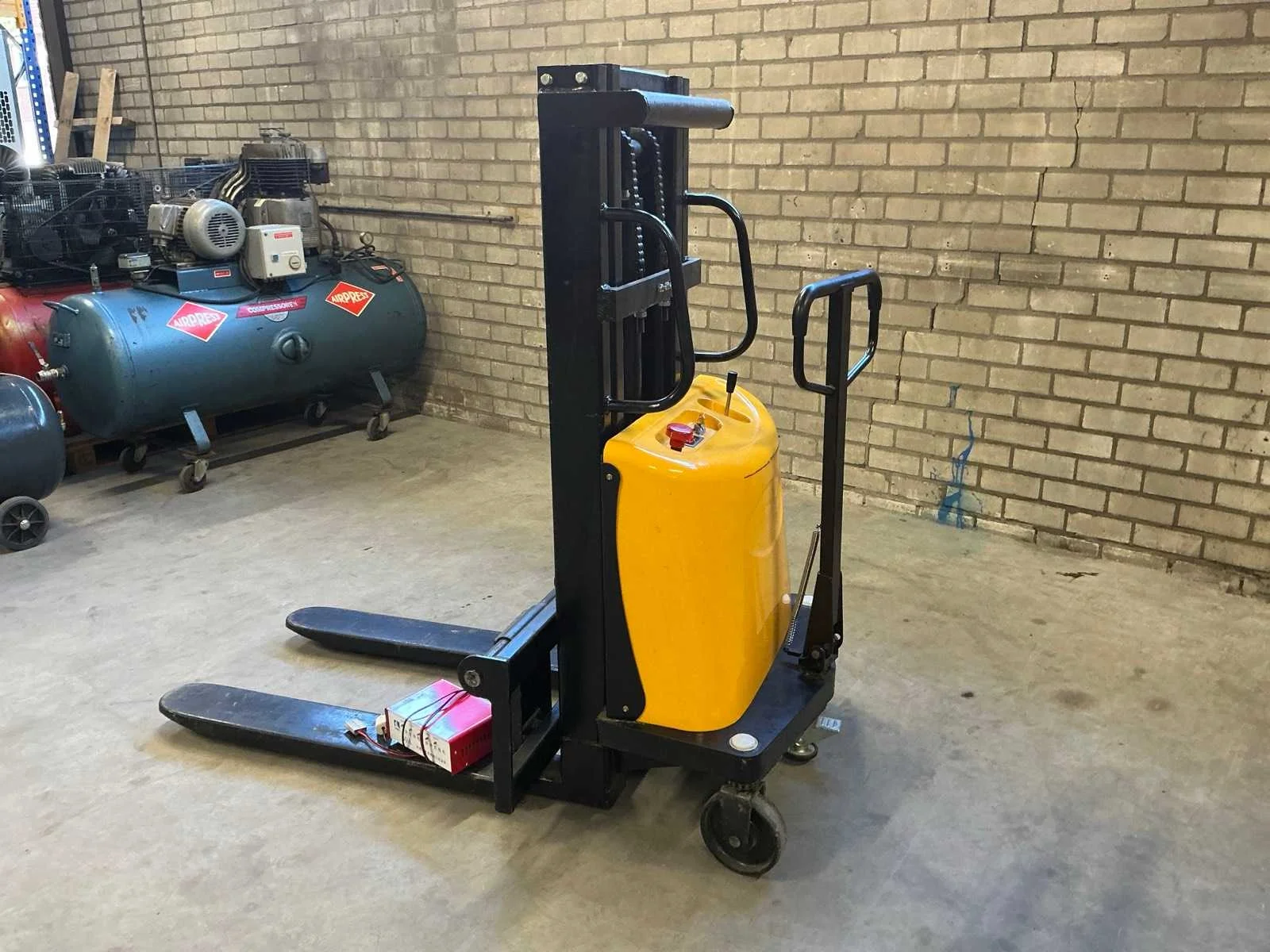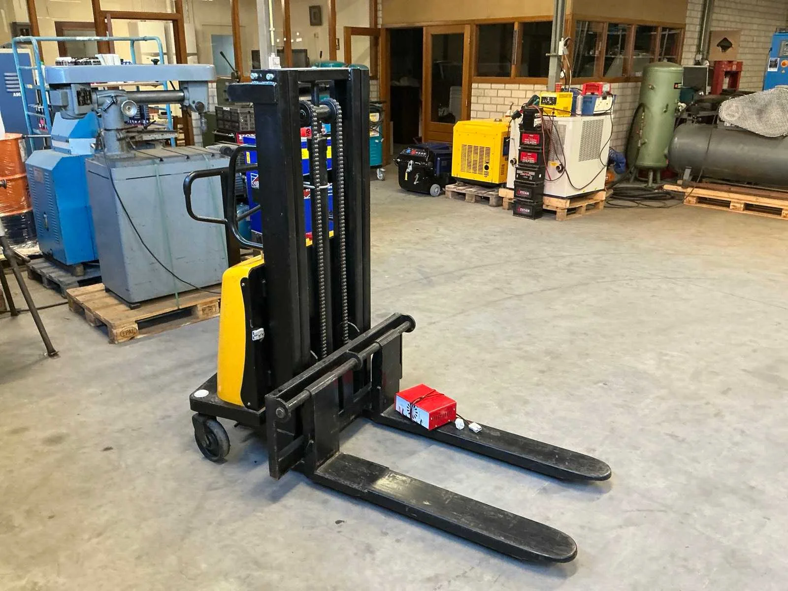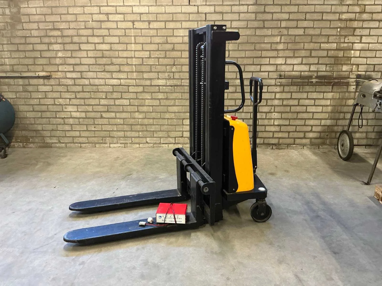 Voorzien van: oplader 220v, verstelbare vorken tot 950mm, doorrijdt hoogte 1600mm, noodstop, 2 sleutels, accu indicatie. Nee Merk: Stapelaar Elektrisch: true Hefvermogen: 1000kg Hefhoogte: 2000mm Lepellengte: 1000mm Accu lader: true Totale afmeting L: 1800mm Totale afmeting Breedte: 1000mm Totale afmeting Hoogte: 1600mm