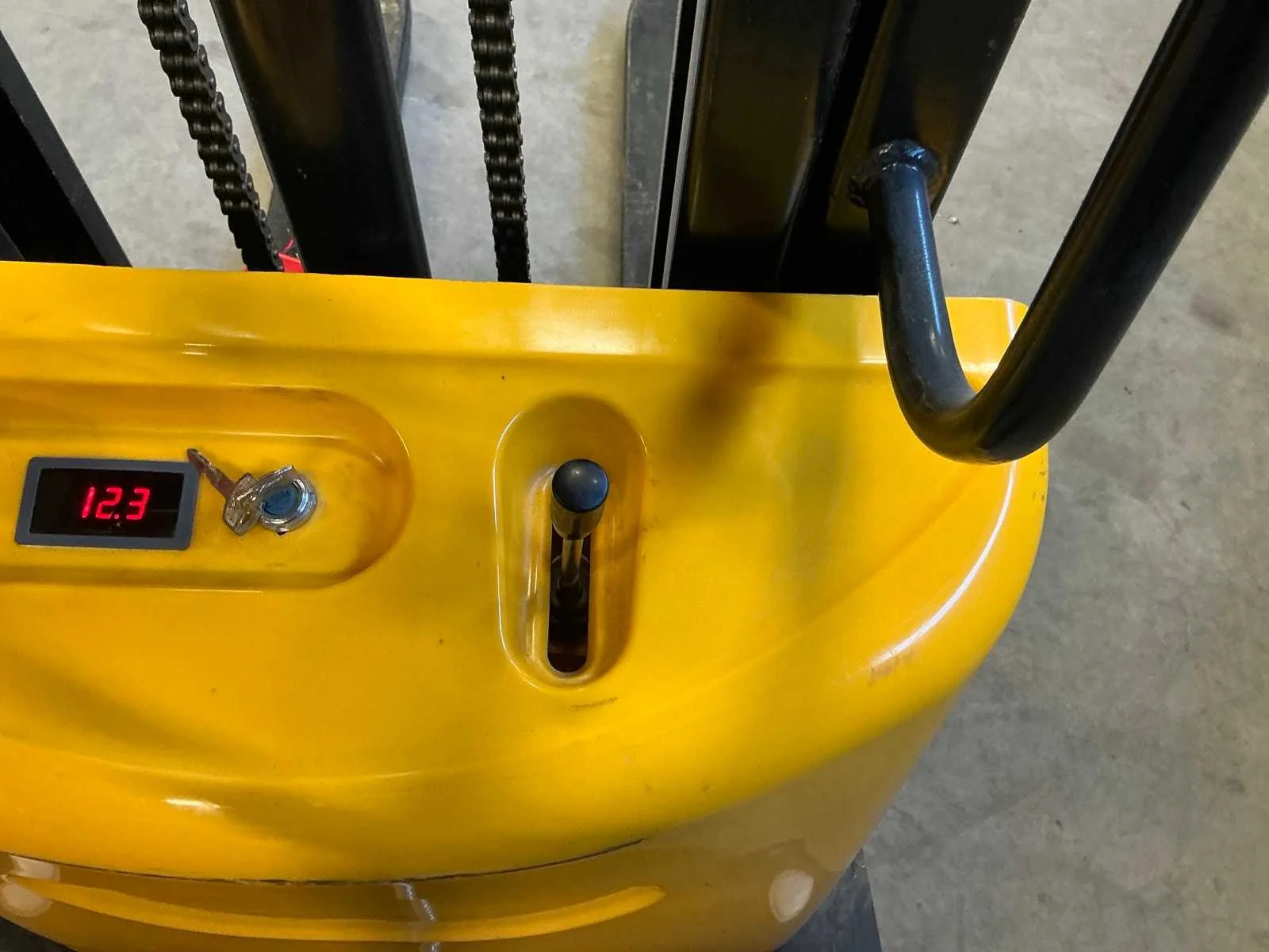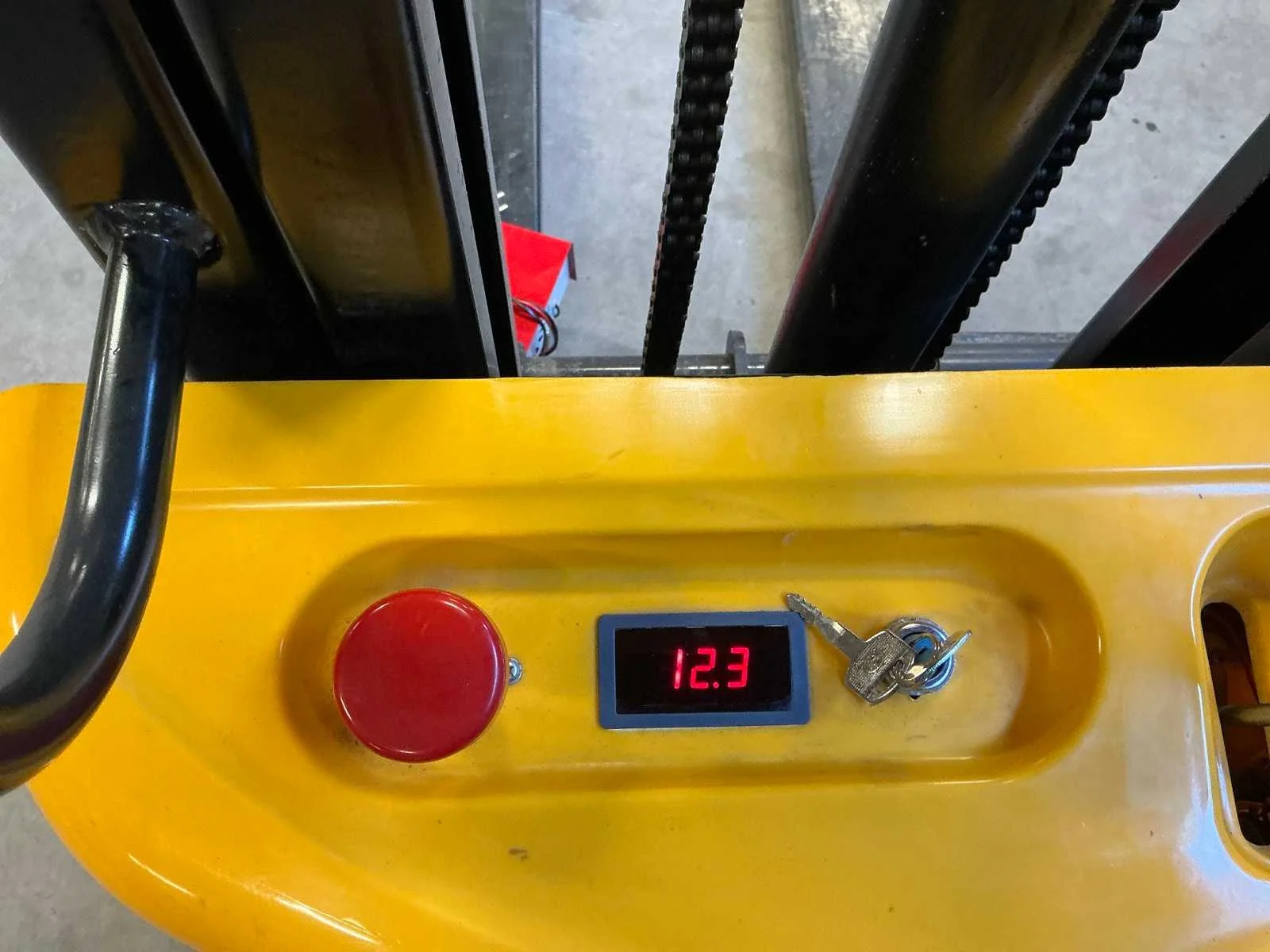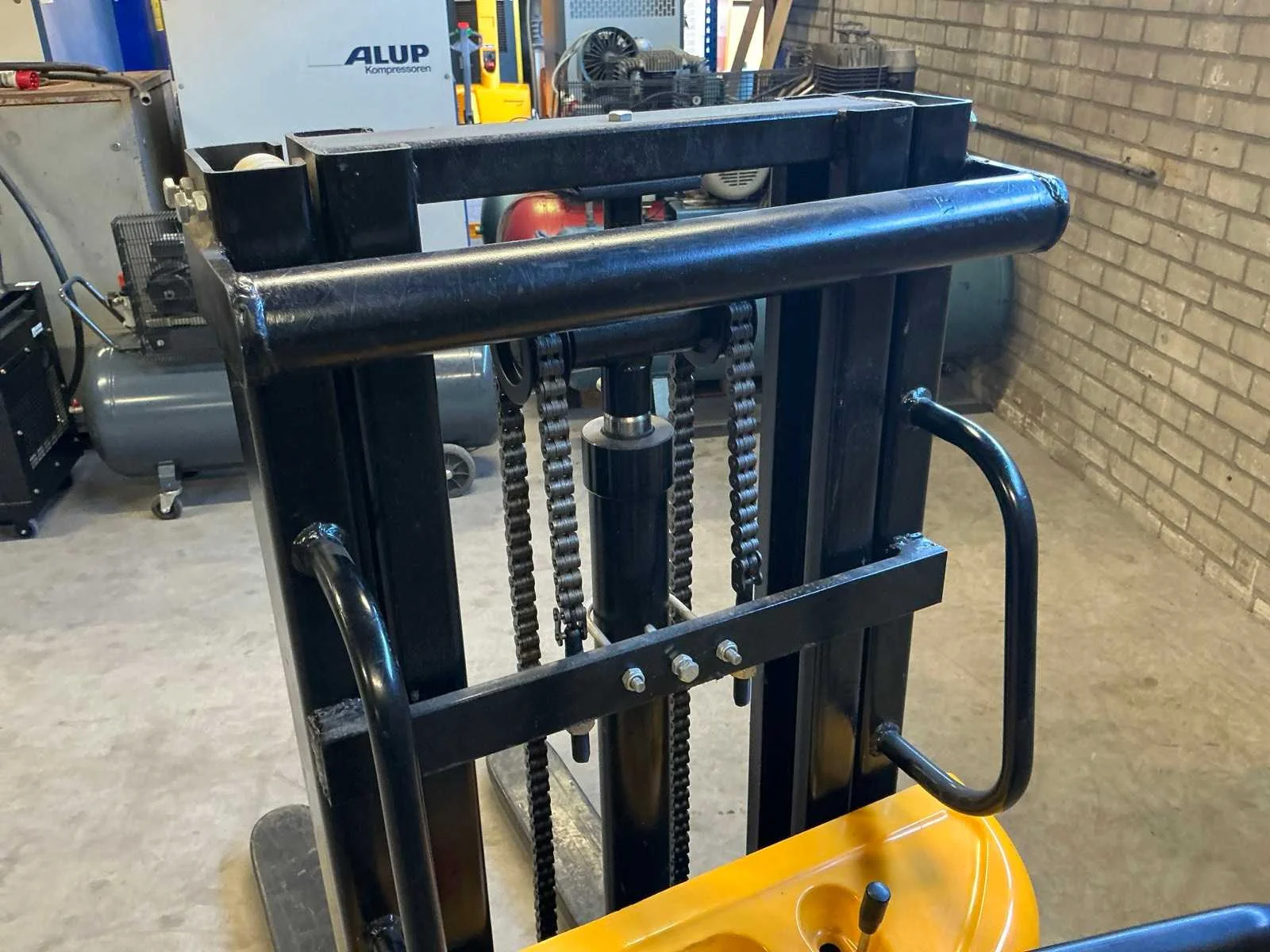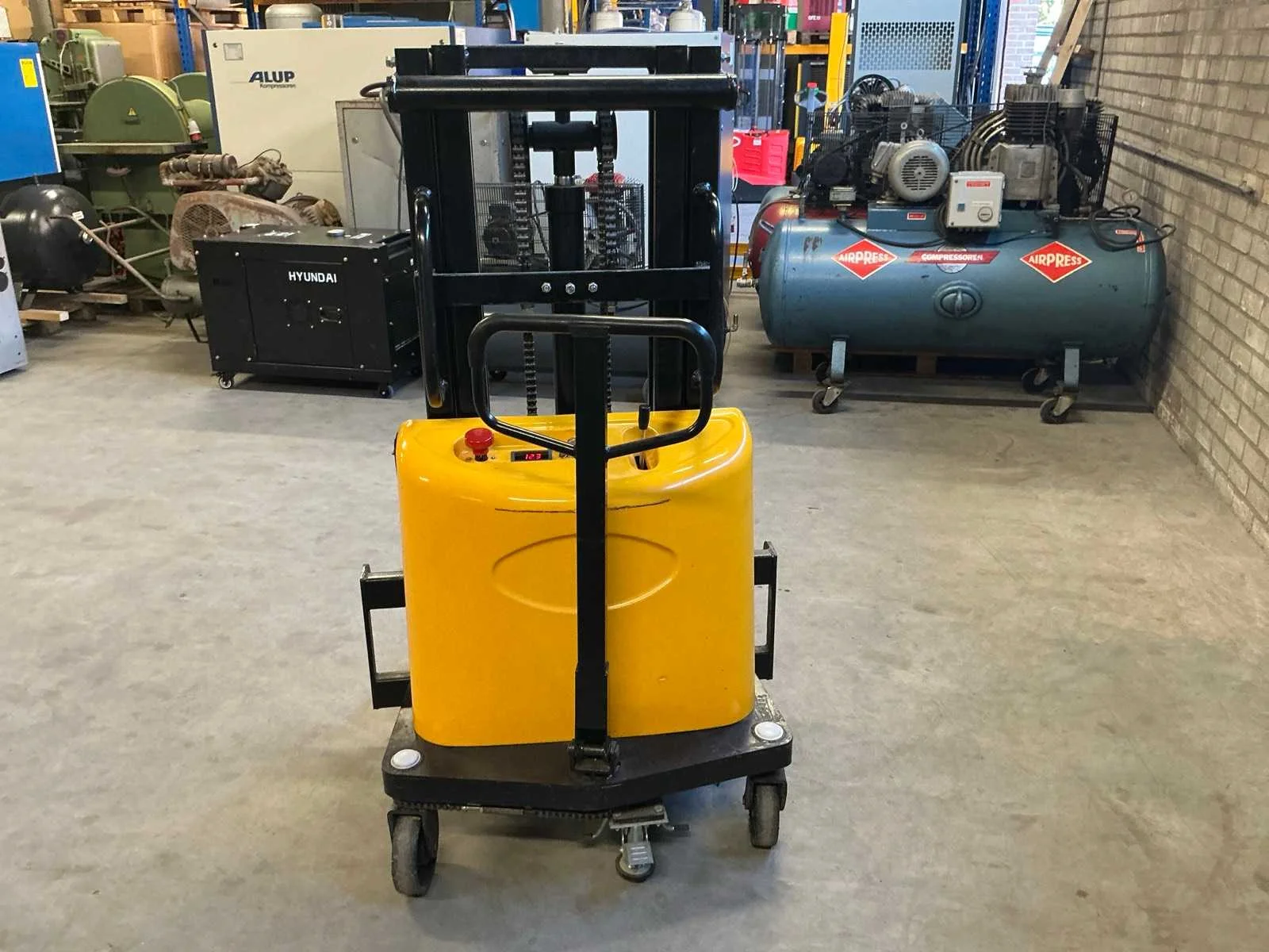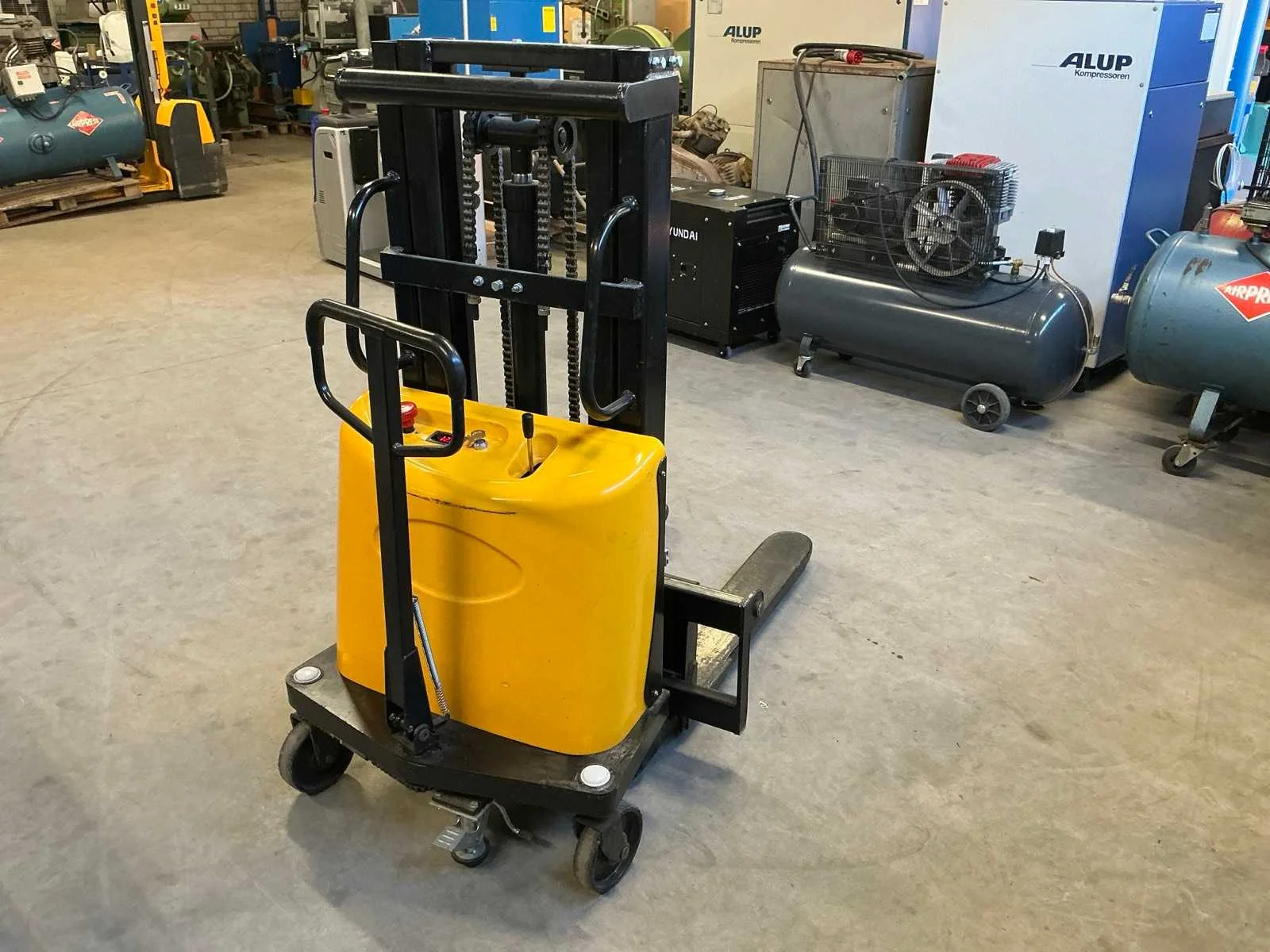Voorzien van: oplader 220v, verstelbare vorken tot 950mm, doorrijdt hoogte 1600mm, noodstop, 2 sleutels, accu indicatie. Nee Merk: Stapelaar Elektrisch: true Hefvermogen: 1000kg Hefhoogte: 2000mm Lepellengte: 1000mm Accu lader: true Totale afmeting L: 1800mm Totale afmeting Breedte: 1000mm Totale afmeting Hoogte: 1600mm