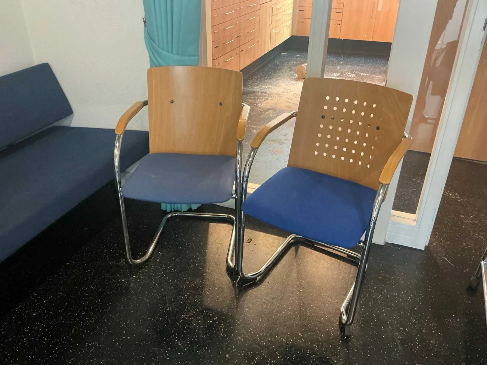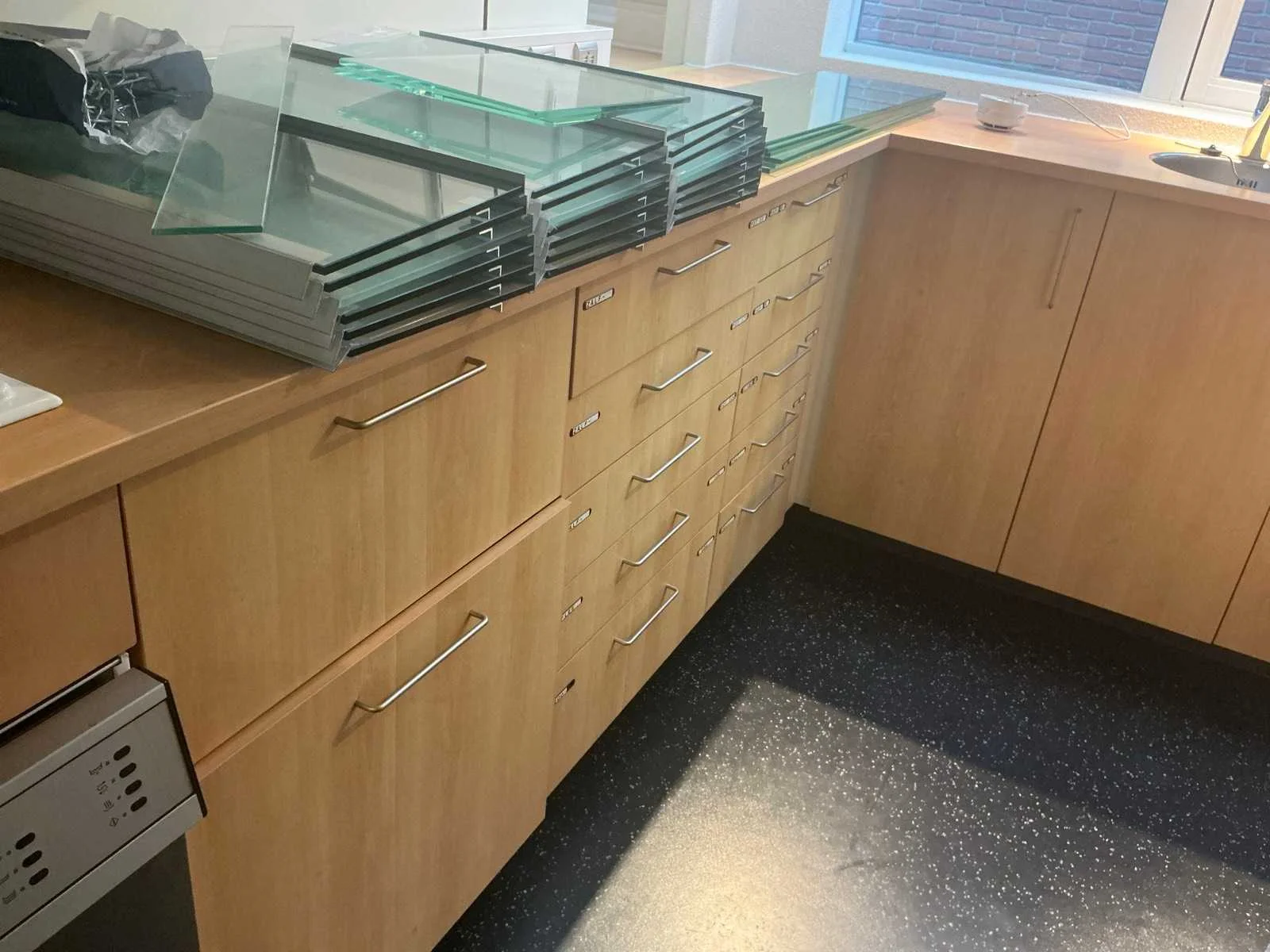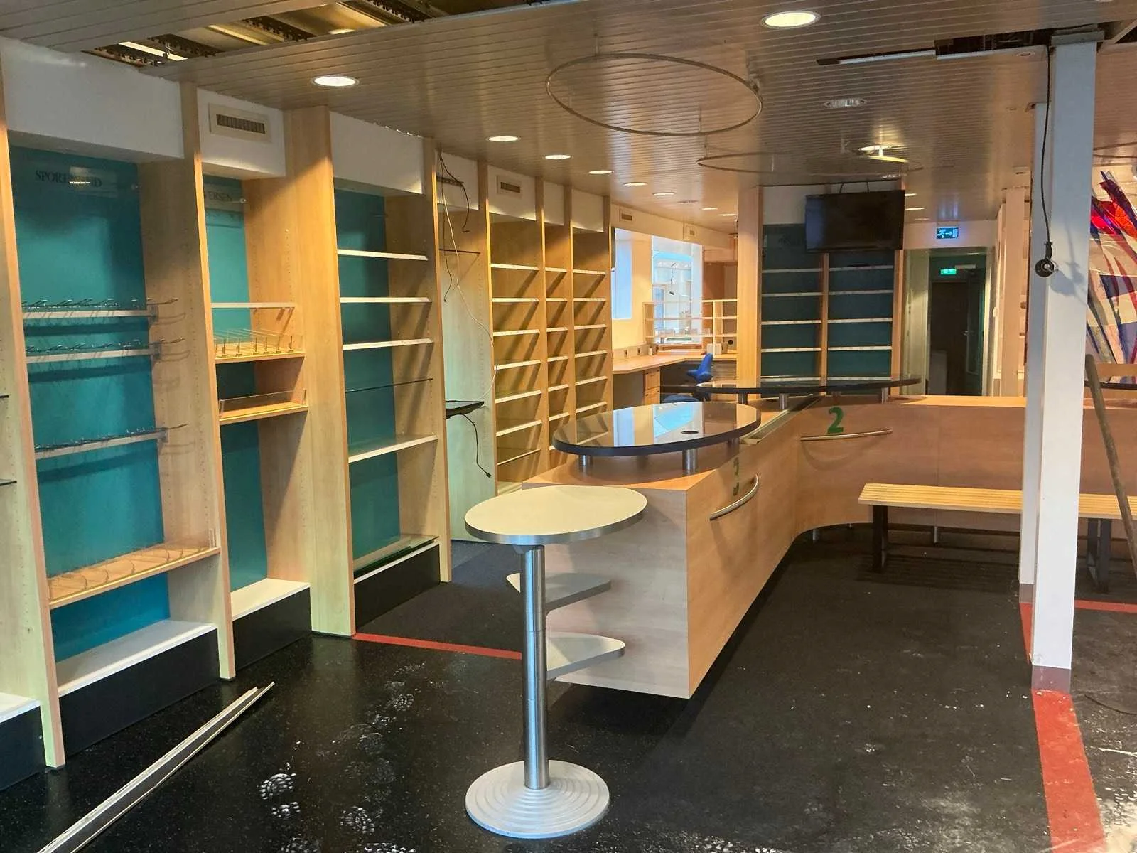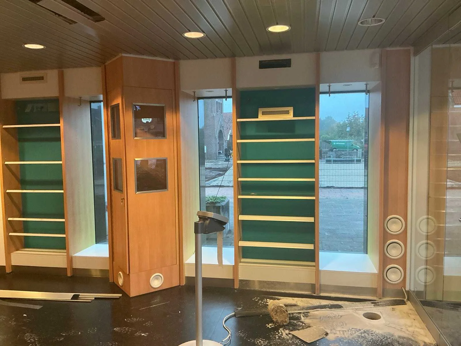 Diverse voorraad kasten waar onder 4 van 3 meter; 1 kast van 6 meter; Toonbanken; voorraad kasten winkel; televisies; Rolstoelen; Kastwanden; Kaartjes trekker: 3 stoelen 1 Bank; White board; Brandslang; Brandkast Nee Merk: Apotheek interieur