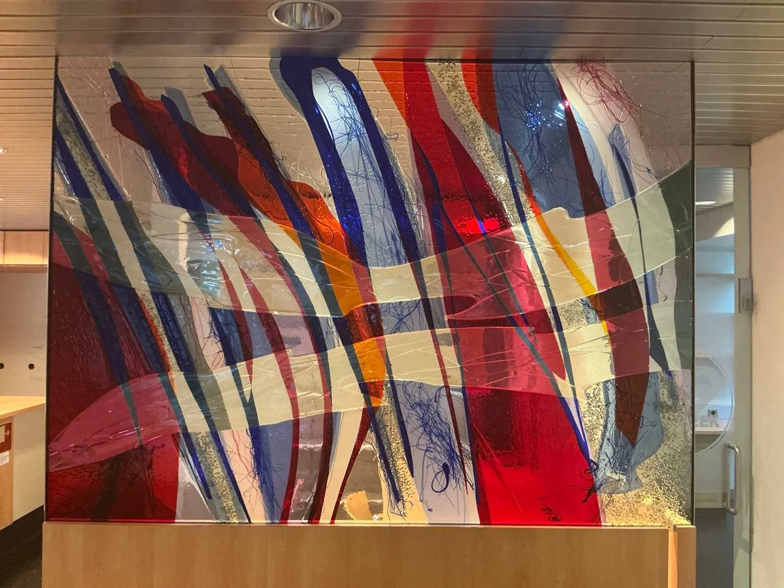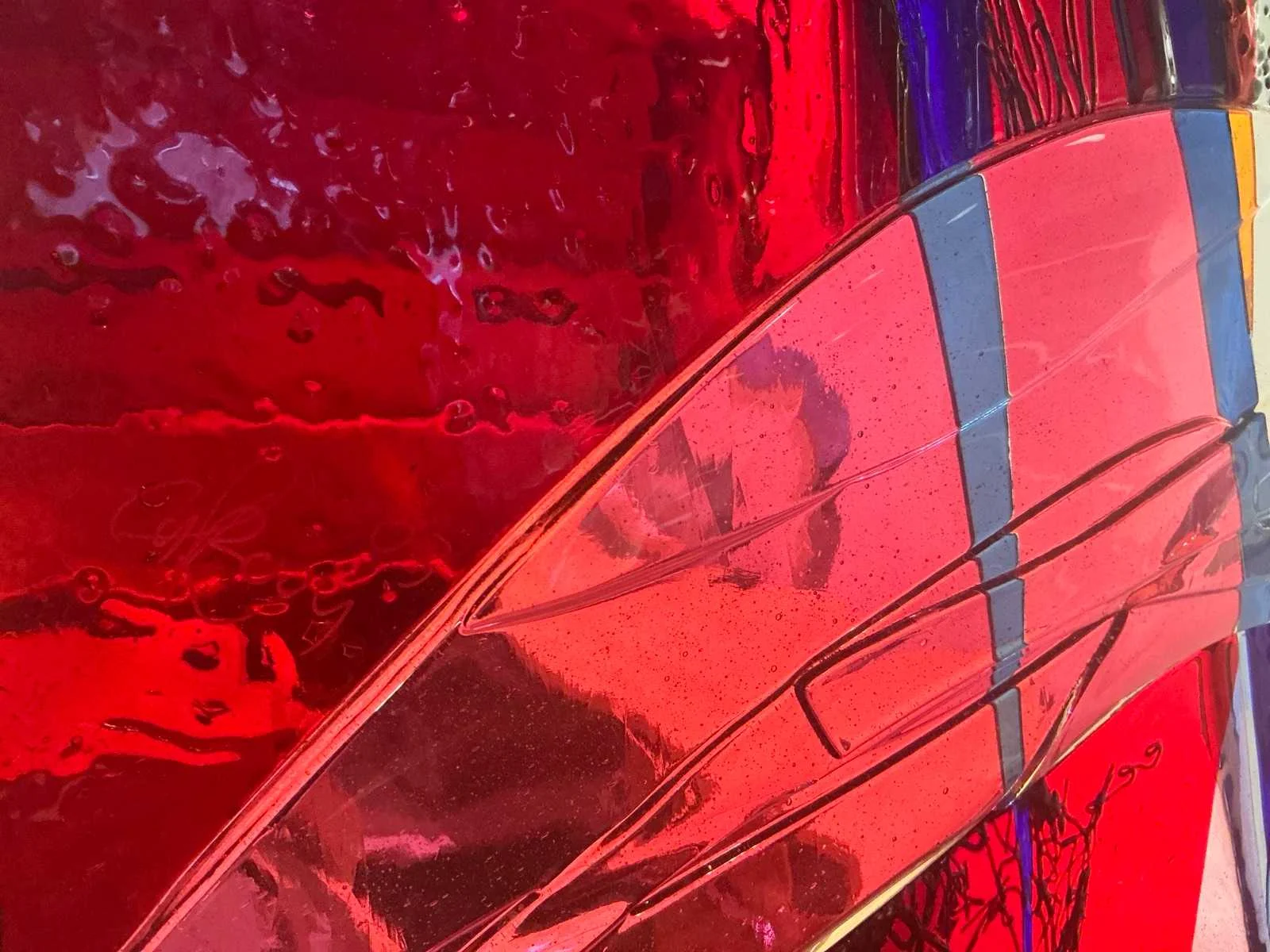 Glas kunst van Louis La Rooy Nee Kunstenaar: Louis La Rooy Materiaal: Glas Handtekening/stempel: true Lengte: 1.5cm Breedte: 200cm Hoogte: 146cm