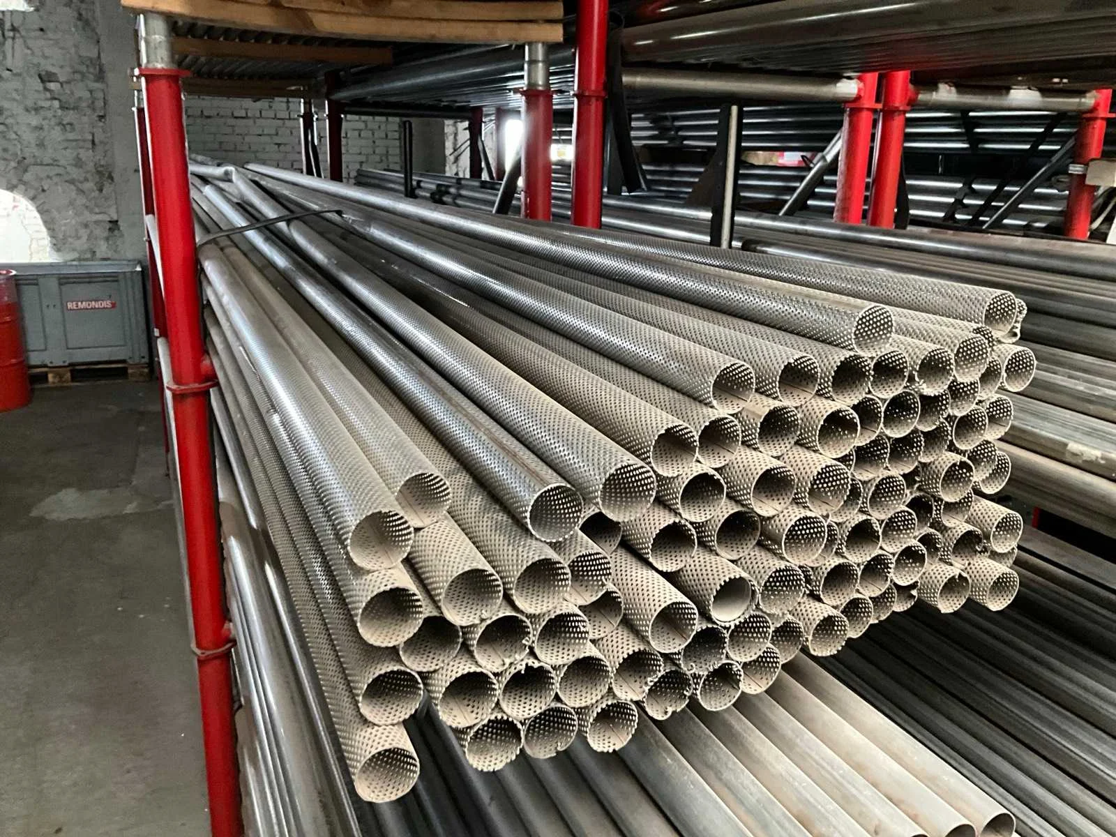 Kavel staande uit: 954 buizen 409 RVS 208 RVS 409 buis 40*1,2 mm L=6meter 215 RVS 409 buis 45*1,2 mm - geperforeerd 3 mm gaten. H.o.h. 5,25 mm - kruislings patroon L=6meter 194 RVS 409 buis 45*1,2 mm - geperforeerd 3 mm gaten. H.o.h. 7 mm - vierkant patroon L=6meter 214 RVS 409 buis 48*1,2 mm L=6meter 73 RVS 409 buis 50,8*1,2 mm - geperforeerd 3 mm gaten. H.o.h. 5,25 mm - kruislings patroon L=6meter 50 RVS 409 buis 70*1,2 mm L=6meter Let op, zie foto's zijn enkele buizen gedeukt/beschadigd. Nee