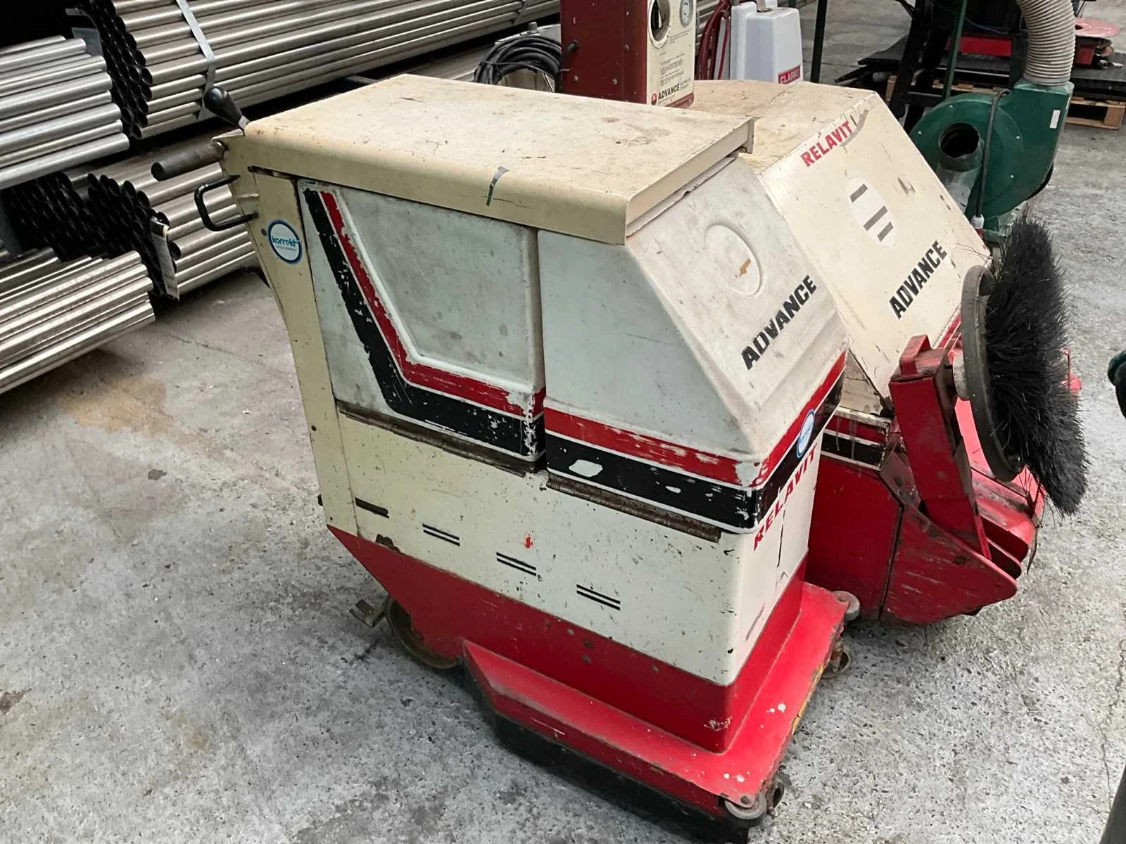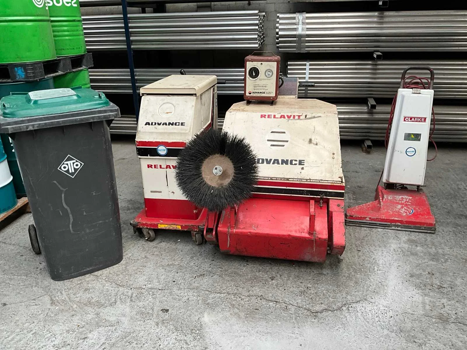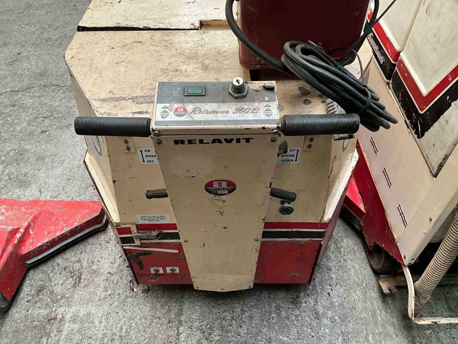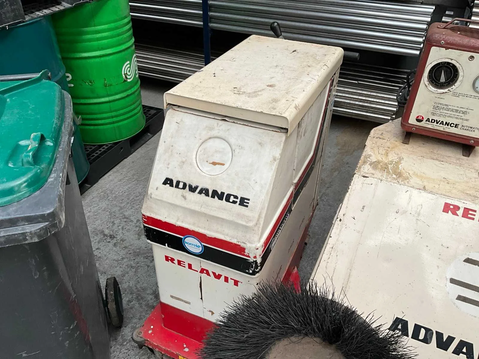 Schrobmachine Relavit Convertmatic 24v (accu defect) Tapijt stofzuiger Clarke 230v Veegmachine Rekavit 24 V (accu defect) 1 x vuilniscontainer 250 Liter Nee