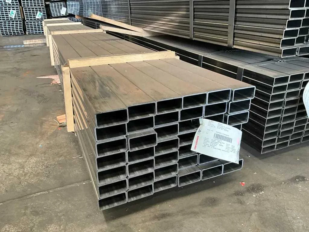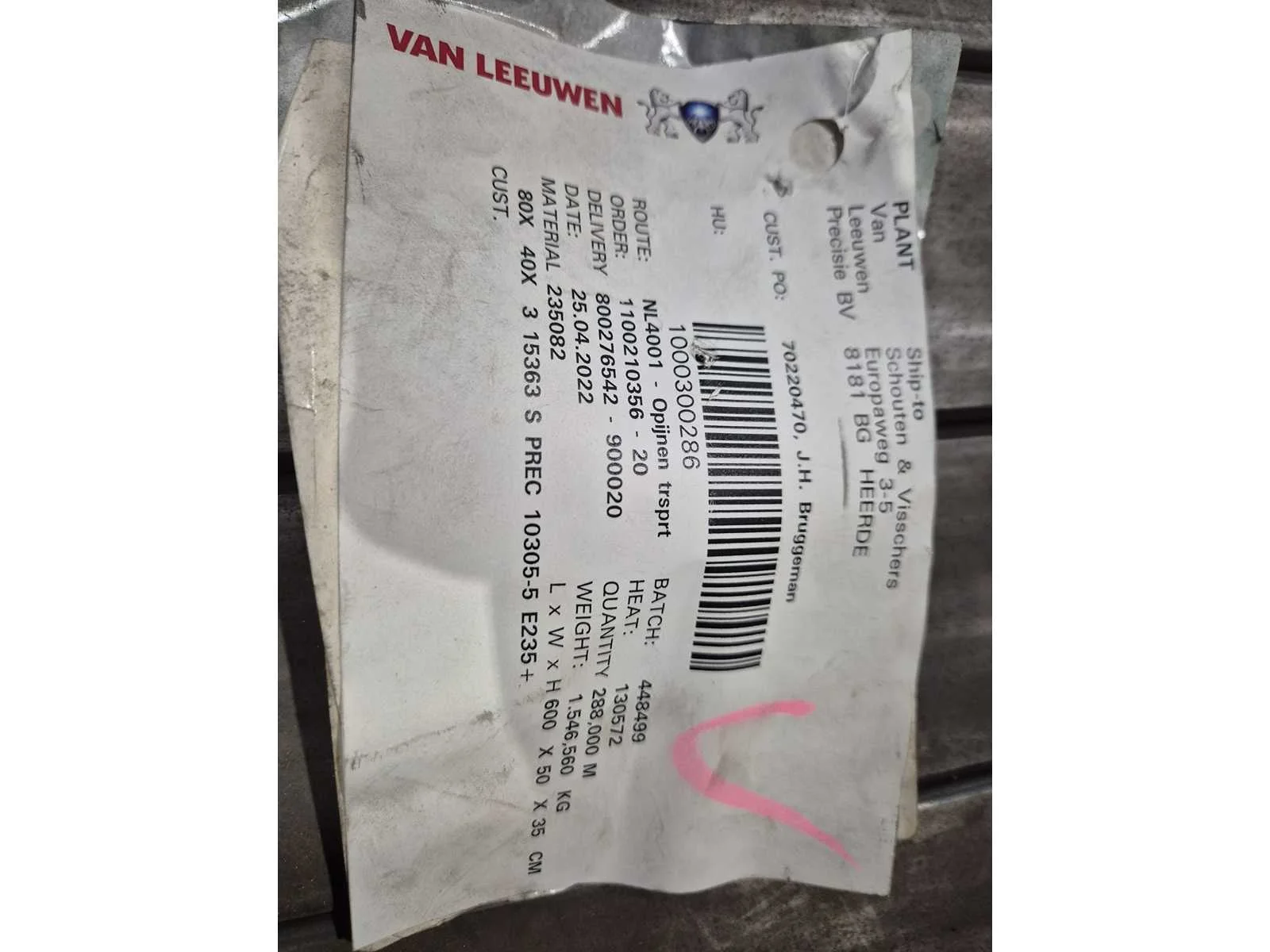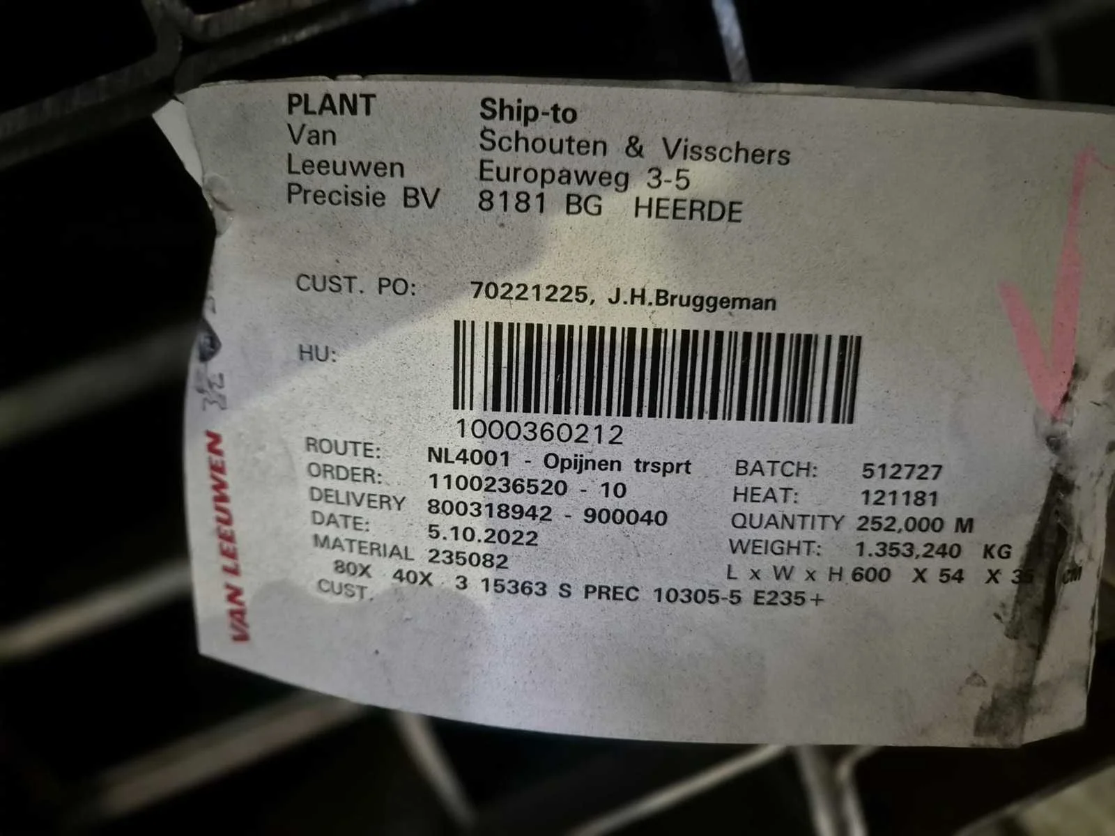 Stalen kokerprofielen E235 + CR1 S2, afmeting 80x40x3mm Lengte 6000mm, leverancier van Leeuwen Precisie BV, aantal bundels: 2, gewicht per bundel ca 1540kg totaal: 2890kg No Type: E235 + CR1 S2