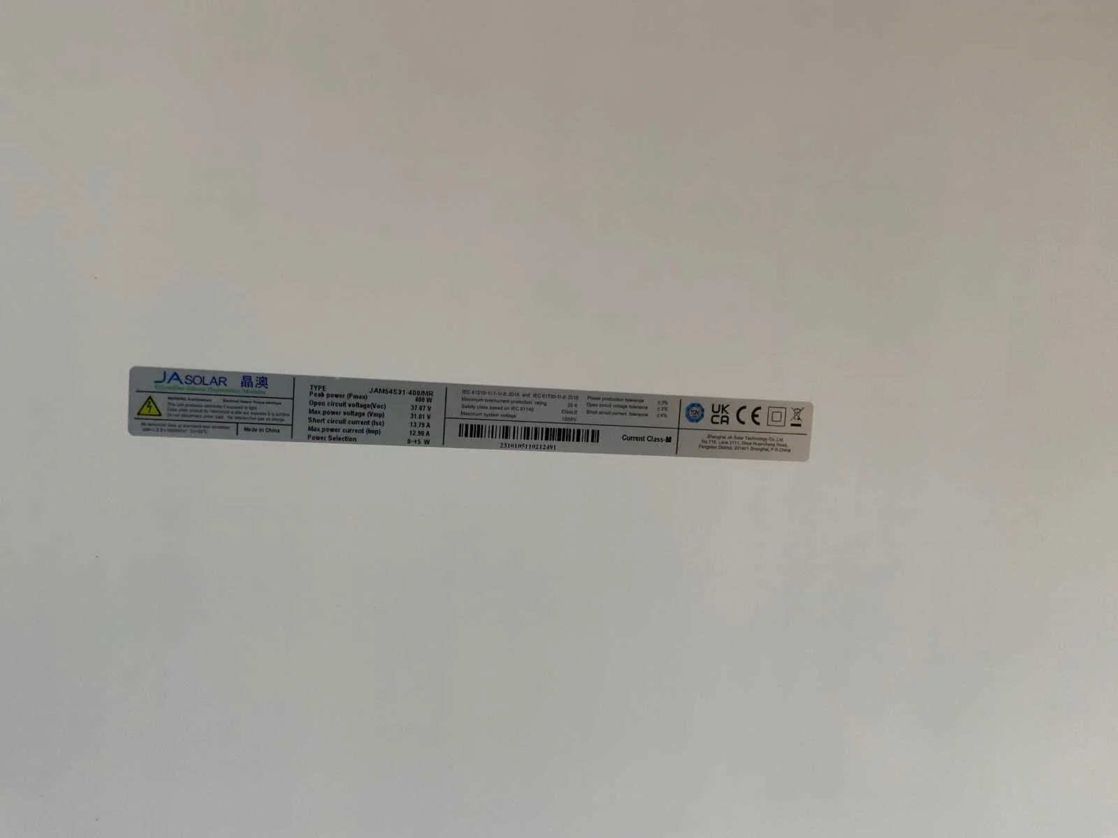Totaal 8 panelen inclusief 1x Solis Solar Inventer S6 -GR1P5K omvormer Nee Merk: Jasolar Type: JAM54S31-400/MR Max. ac power: 400W