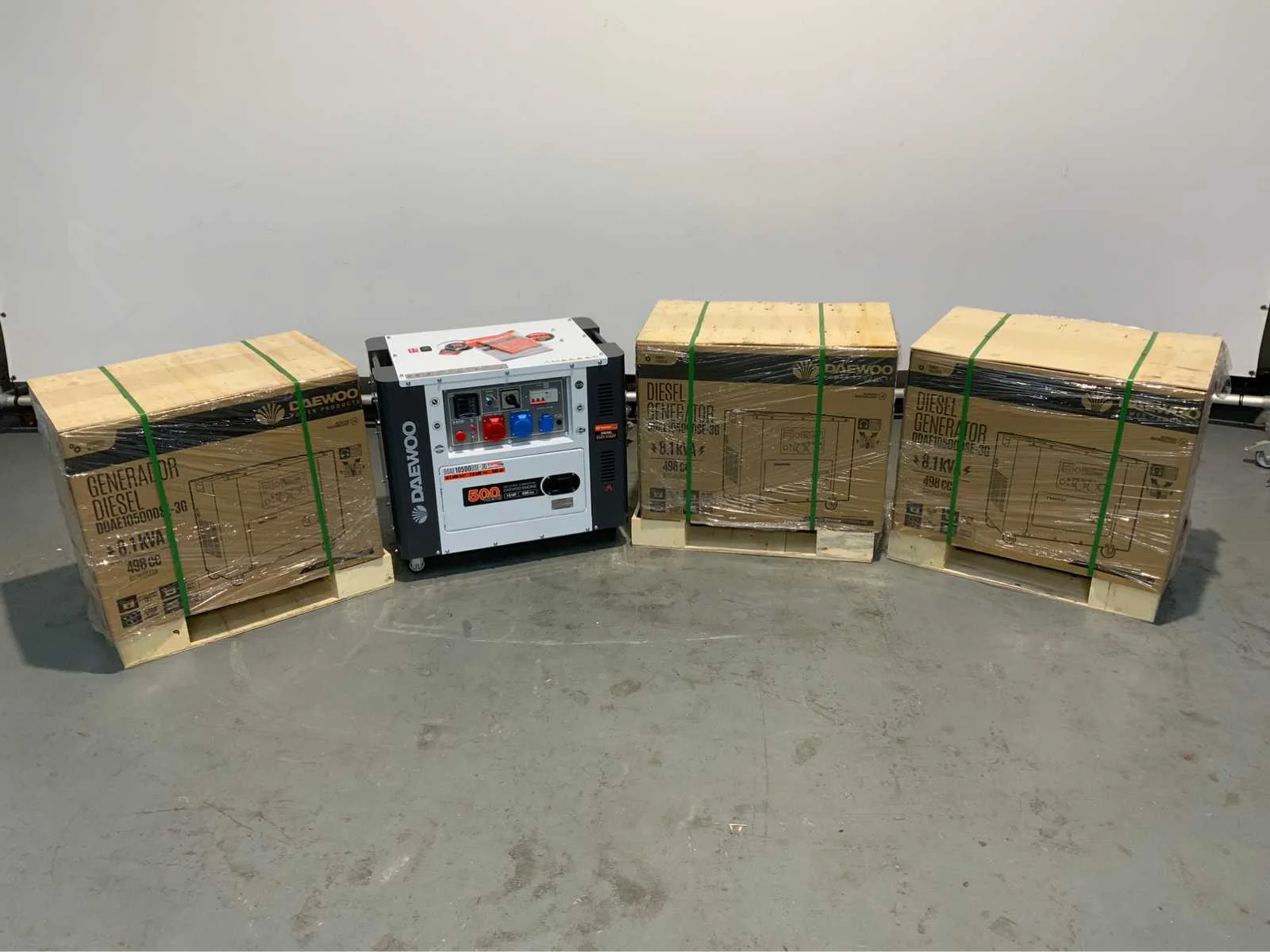 Capaciteit: 8,10 kVA; aansluiting: 400 V; motor merk: Daewoo; motor capaciteit: 11 kW; generator capaciteit: 32 A; afgelezen urenstand: 0; handboek aanwezig, diesel, ongebruikt, krachtstroom 400 volt en 220 volt Nee Merk: Daewoo Type: DDAE10500DSE-3G diesel Bouwjaar: 2025 Capaciteit.: 8kVA Motorcapaciteit: 11kW Afgelezen urenstand: 0 Machinegewicht: 165kg Totale afmeting L: 880mm Totale afmeting Breedte: 560mm Totale afmeting Hoogte: 720mm