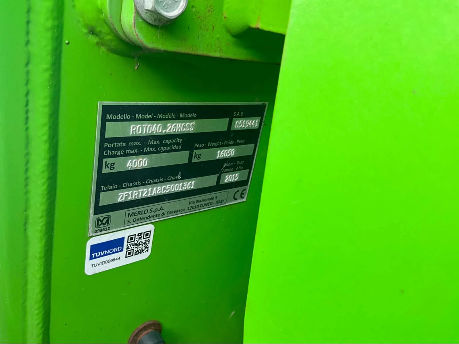Voorzien van 4-Cil. “Iveco” Dieselmotor; 40km/h; 4x4 aandrijving; hydraulische stempelpoten; stempelschotten; stempelschottenrek achterzijde; lucht geveerde stoel “Grammer” met twee leuningen en dubbele elektronische/hydraulische joystick bediening; lolliepop; kantelbare cabine; ; afsluitbare gereedschapskist op bovenwagen; hydraulisch snelwisselsysteem “tac-lock”; aanlashaak op snelwissel; Differentieelslot op achteras; trekhaak; zonnegordijn; radio; extra spiegel; dakruitenwisser; vrije zwenk; achteruitrijverlichting; sjorogen t.b.v. transport; smeernippels verplaats van draaikrans; wielkasten voor zien van opstapjes; 7-polige stekkerdoos t.b.v. aanhangwagenverlichting; 1e eignaar; Machine is in 2024 voorzien van nieuwe motor (ca. draaiuren 600 uur) , 2 nieuwe kabelbomen en nieuwe eindaandrijving! (Facturen aanwezig) Inclusief: “TRE EMME” hydraulische uitschuifbare jip, “TRE EMME” uitklapbare manbak 2300-4500 cm (800kg), radiografische afstandsbediening en vorkenbord! Inclusief TCVT keuring; kraanboek; Transport afmetingen: 6980x2400x2950 mm (lxbxh) Deze Merlo verreiker is speciaal afgeleverd voor de Nederlandse markt. dit is terug te zien aan de witte kast achter de cabine EN13000 Down/upgrade + de overbruggingsleutel in de cabine. LET OP bezichtiging op afspraak mogelijk. email: w.heeres@troostwijkauctions.com Nee Merk: Merlo Type: ROTO 40.26 MCSS Bouwjaar: 2015 Serienummer: C5001361 Kenteken: TLK-89-J Motorvermogen (kW): 107kW Hefvermogen: 4000kg Hefhoogte: 23000mm Cabine: true Vierwielaandrijving 4x4: true Lepellengte: 1200mm Afgelezen urenstand: 9612 Eigen gewicht: 15450kg