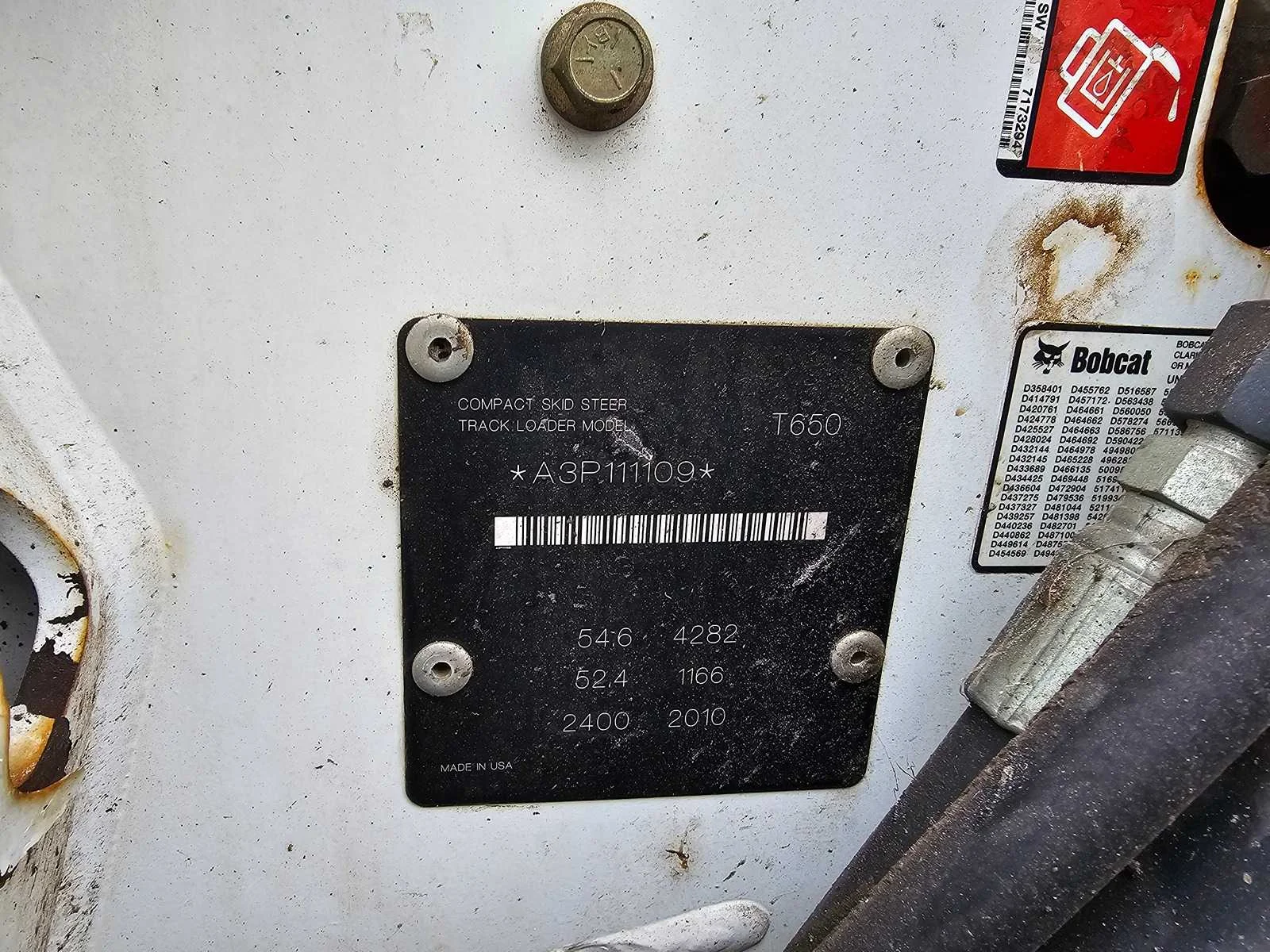 Voorzien van: Kubota dieselmotor, rupskettingen, kooi met deur, airco, leveling bord met hydraulisch verstelbare uitklapgeleiders, Trimble voorbereiding, extra lepelbord, extra bak (200cm breed), Nee Merk: Bobcat Type: T650 Bouwjaar: 2010 Serienummer: A3P111109 Merk motor: Kubota Motorvermogen (kW): 54.6kW Aantal cilinders: 4 Brandstof: Diesel Graafbak afm. b: 2400mm Afgelezen urenstand: 3703 Eigen gewicht: 4282kg Totale afmeting L: 3470mm Totale afmeting Breedte: 2600mm Totale afmeting Hoogte: 2060mm Leveringsvoorwaarden: Geladen op vrachtwagen