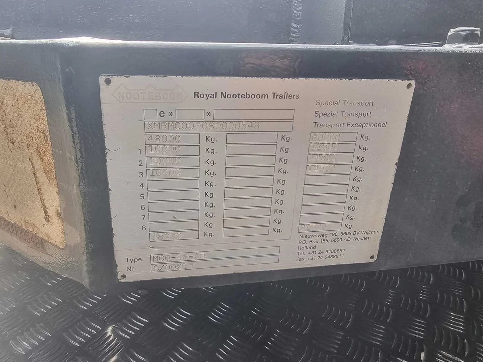 Nek Lengte: 4350mm, Hydraulisch plateau lengte: 3000mm, achter plateau lengte: 6000mm, hoogte van achter plateau vanaf grond: 920mm, rijplaten lengte: 5000mm Nee Merk: Nooteboom Type: MCO 48-03 Type aanhangwagencarrosserie: Plateauwagen Bouwjaar: 2008 Chassisnummer VIN: XRMC000080000548 Kenteken: OV-05-LH Datum eerste toelating (NL): 2024-09-19 Datum eerste toelating: 2010-02-12 APK vervaldatum: 2025-09-18 Aantal assen: 3 Laadvermogen: 30620kg Hydraulische laadklep: true Eigen gewicht: 13000kg Totale afmeting L: 1360mm Totale afmeting Breedte: 2520mm Totale afmeting Hoogte: 1300mm Zelf rijdend exporteren: Mogelijk