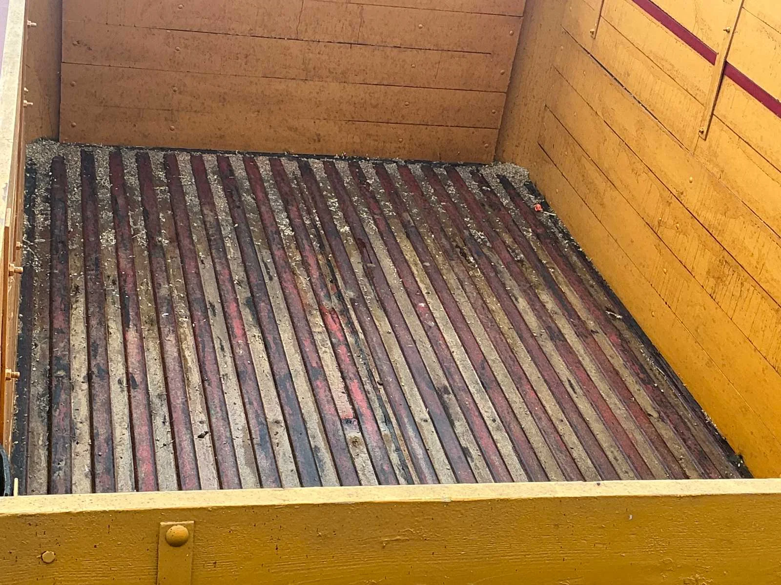 Bak 440x150cm. Nee Merk: Deutz Fahr Type: KS 2.60 Bouwjaar: 1989 Kenteken: LGX-66-B Aantal assen: 2 Bandenmaat: 13.5-17 Totale afmeting L: 5800mm Totale afmeting Breedte: 2200mm Totale afmeting Hoogte: 2650mm
