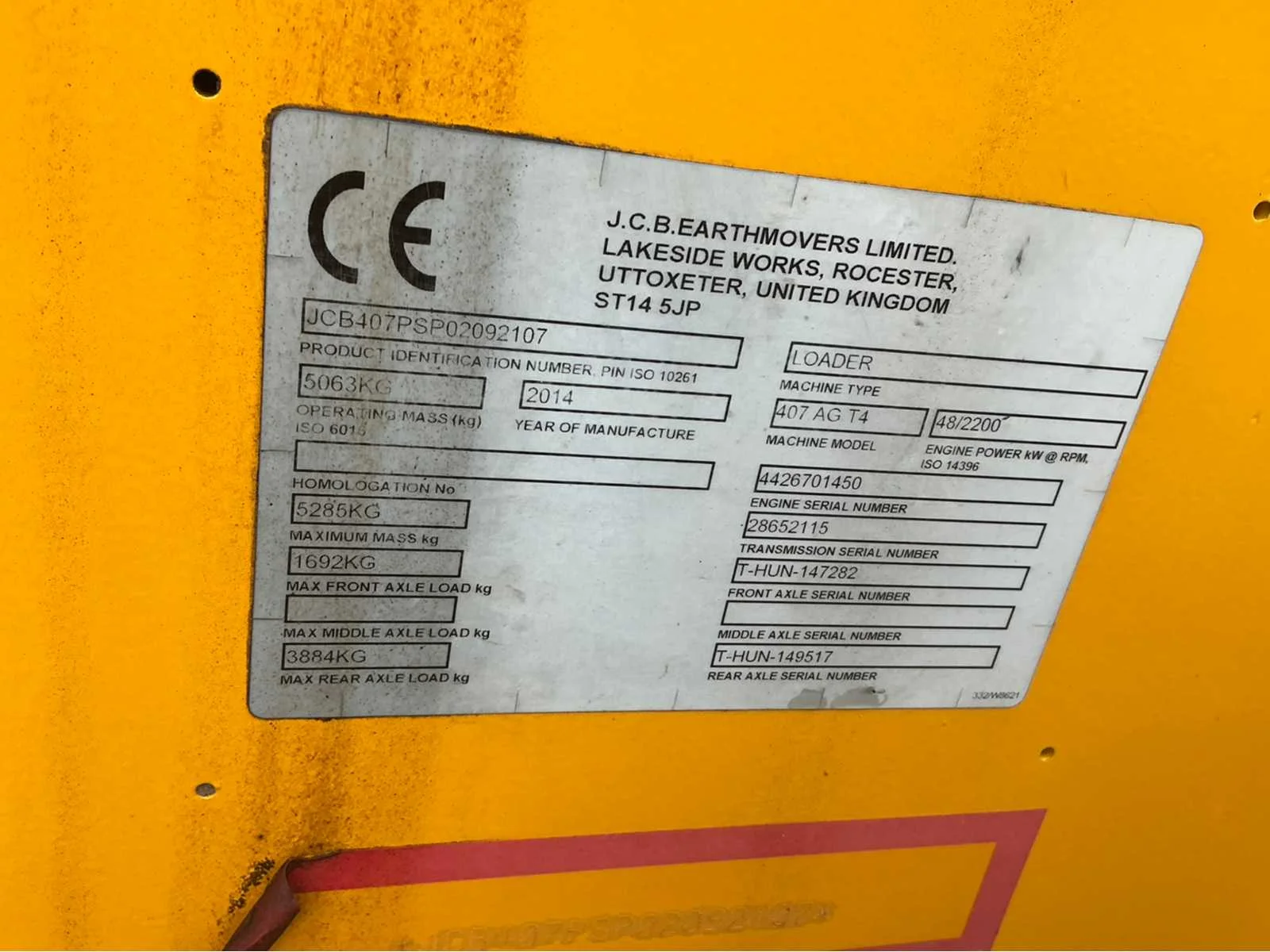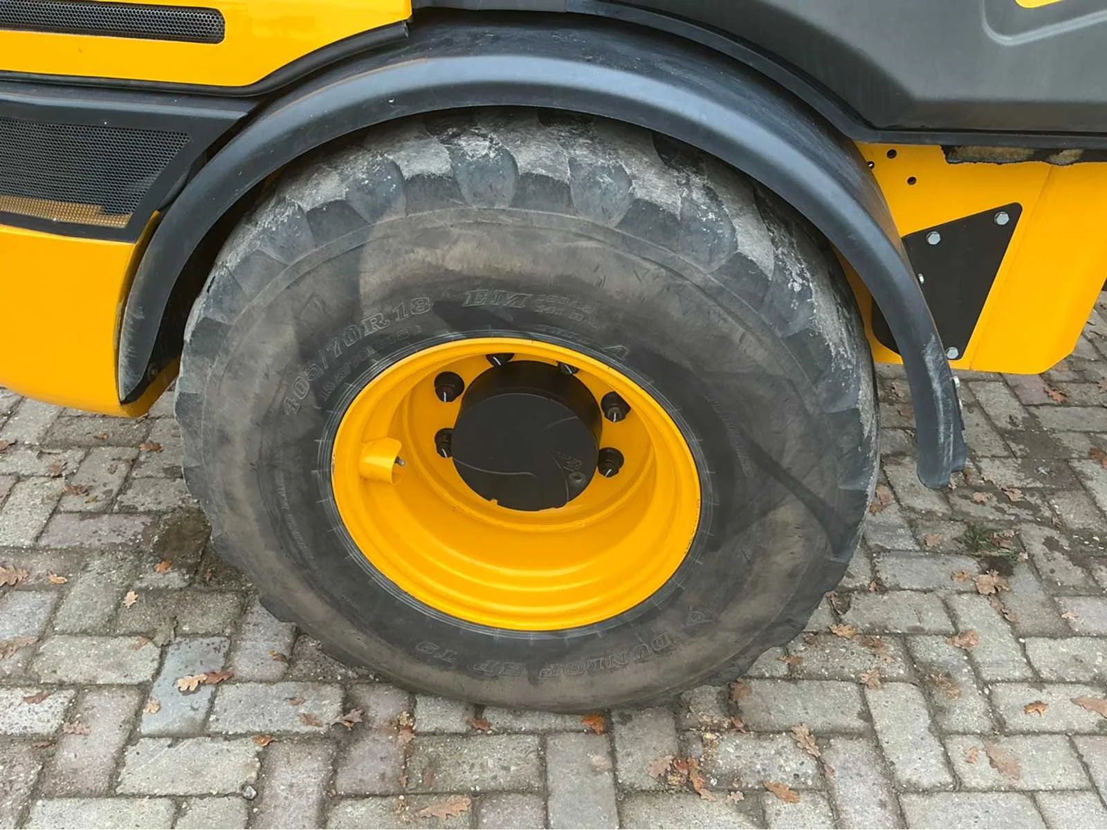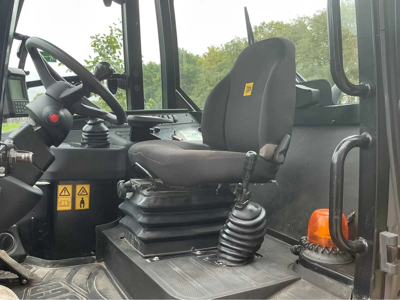 Maximaal laadvermogen: 1692 kg. Maximaal penhoogte: 312 cm. Beschikt over radio, zwaailamp, 1 extra dubbelwerkende functie, Top Master weegsysteem 3B6 en trekhaak. Lengte lepels: 120cm lengte. Graafbak breedte 201cm, hoogte 80cm, diepte 100cm. Inhoud: 1,12 m3. Gewicht: 405 kg. Nee Merk: Jcb Type: 407 Bouwjaar: 2014 Merk motor: JCB kohler Kenteken: TZB-49-D Motorvermogen (kW): 48kW Aantal cilinders: 4 Brandstof: diesel Bandenmaat: 405/70R18 Cabine: true Afgelezen urenstand: 1941 Eigen gewicht: 5063kg Totale afmeting L: 4560mm Totale afmeting Breedte: 1800mm Totale afmeting Hoogte: 2480mm
