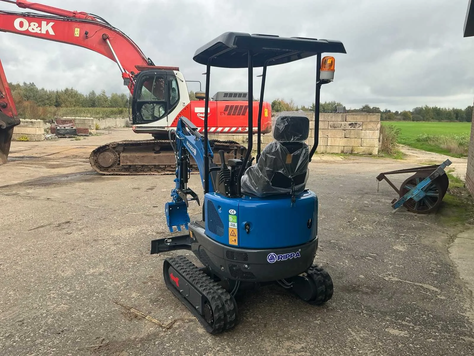 Hydrostatisch met dubbele loopmotor, Rijsnelheid: 2.3 – 3.5 km/u, Enkele tandwielpomp (gear pump), Pompcapaciteit: 18 – 22 L/min, 160 – 200 bar Nee Merk: Rippa Type: R10 Bouwjaar: 2025 Serienummer: SLP20250716090 Merk motor: Kubuto Motorvermogen (kW): 8.2kW Aantal cilinders: 2 Brandstof: Diesel Bedrijfsgewicht: 979kg Max. werkbereik: 3200mm Max. graafdiepte: 1380mm Inclusief graafbak: Yes Graafbak afm. l: 300mm Graafbak afm. b: 250mm Graafbak afm. h: 350mm Rups breedte: 180mm Afgelezen urenstand: 1.9 Totale afmeting L: 2900mm Totale afmeting Breedte: 1150mm Totale afmeting Hoogte: 2050mm