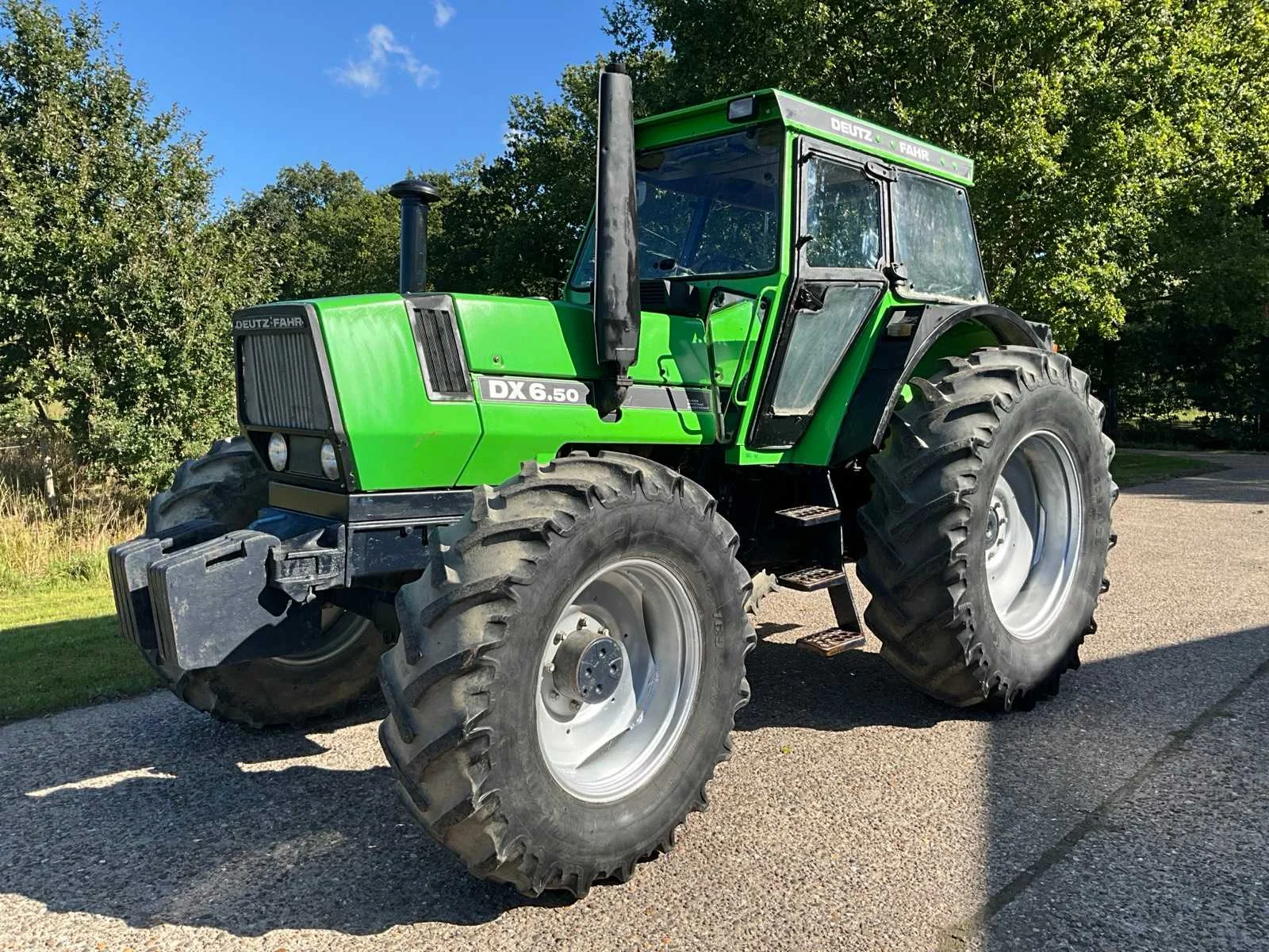 Voorzien van 6-Cil. “Deutz” Dieselengine;aircooled (BF6L913); 1 dubbelwerkend hydraulische ventiel; 1 enkelwerkend hydraulisch ventiel; ondertrekhaak; 8 frontgewichten; aftakas 540/1000 rpm; Let op, rijd enkel in versnelling 1 en achteruit! No Merk: Deutz-Fahr Type: DX 6.50 Serienummer: 74410162 Motorvermogen (kW): 103kW Afgelezen urenstand: 10917 Bandenmaat voor: 16.9R28 Bandenmaat achter: 20.8R38 Frontgewichtenset: true Cabine: true