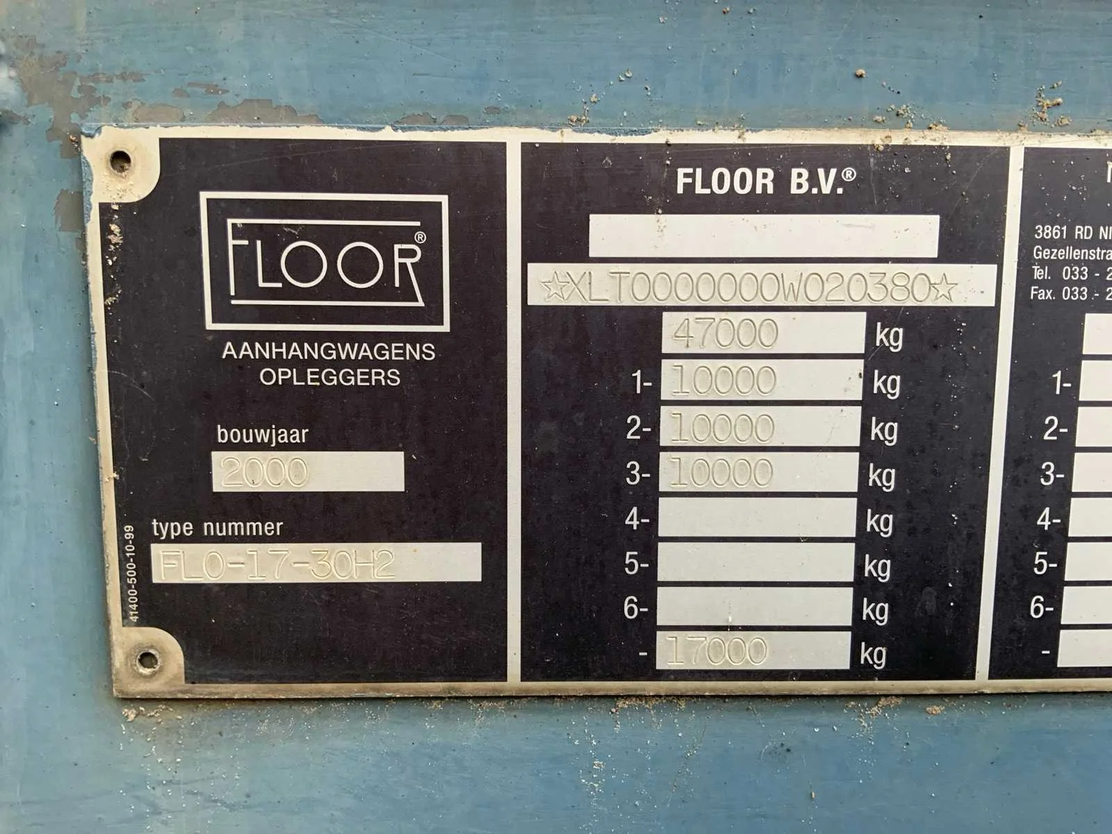 Wielbasis 982cm * Afstand hart koppeling tot achterzijde voertuig 1180 cm * voorzien van 2x meesturende as * voorzien van liftas * Voorzien van 1998 HIAB Roller 130F1 kraan Nee Merk: Floor Type: FLO-17-30H2 Bouwjaar: 2000 Chassisnummer VIN: XLT0000000W020380 Kenteken: OG-30-KD Datum eerste toelating (NL): 2000-09-28 Datum eerste toelating: 2000-09-28 APK vervaldatum: 2025-10-22 Aantal assen: 3 Laadvermogen: 38240kg Eigen gewicht: 8760kg Totale afmeting L: 13600mm Totale afmeting Breedte: 2550mm Zelf rijdend exporteren: Ja