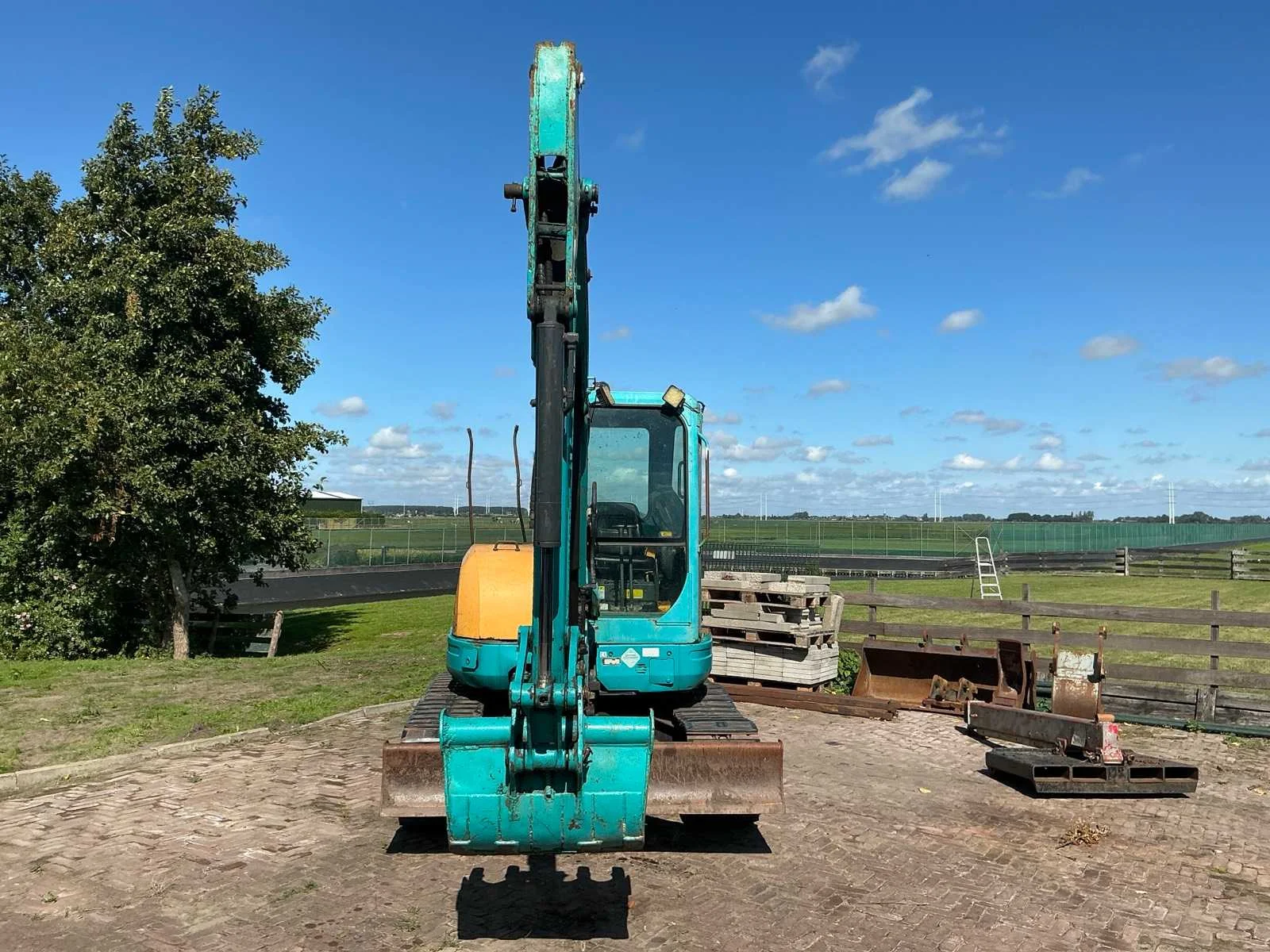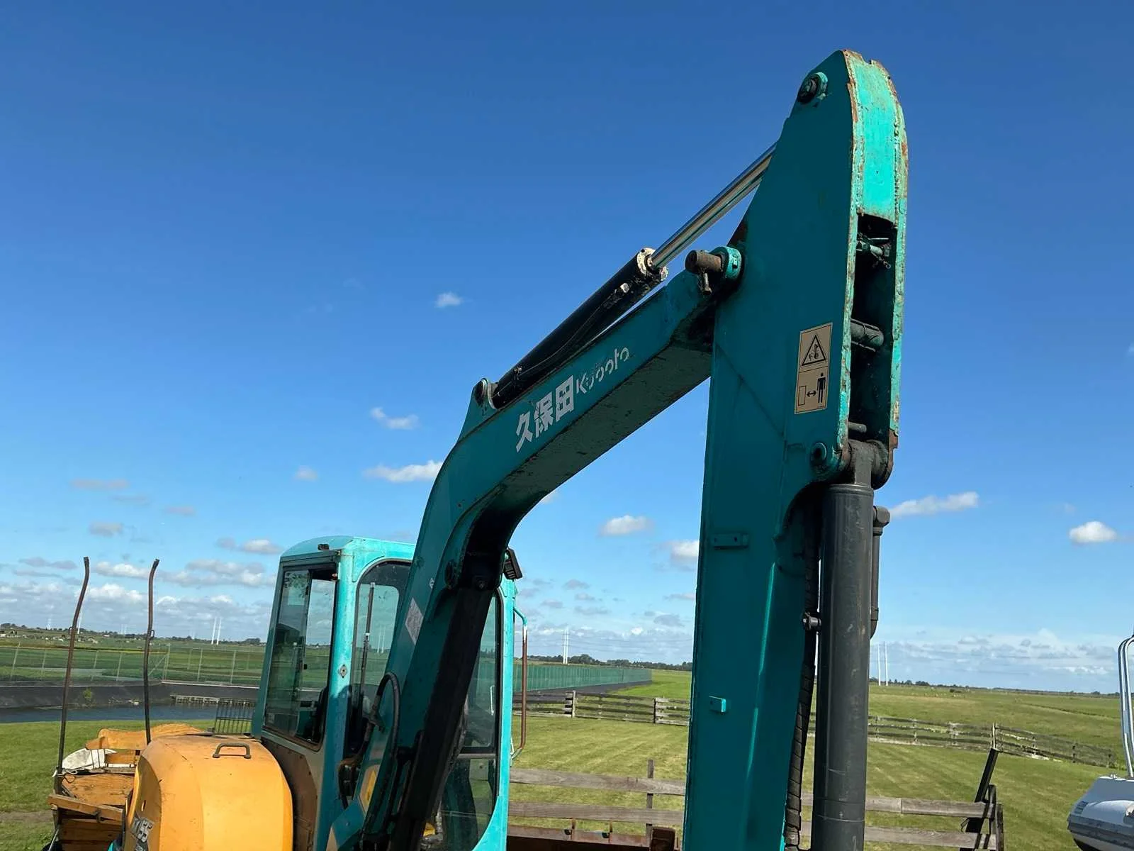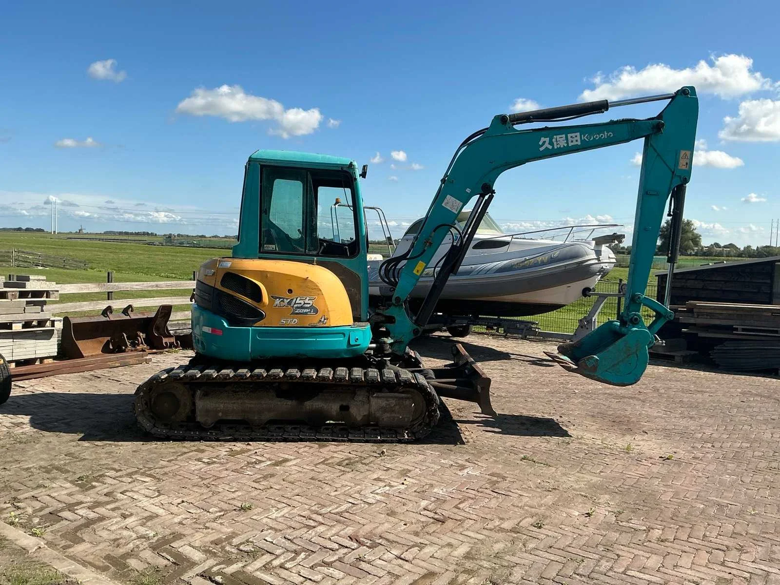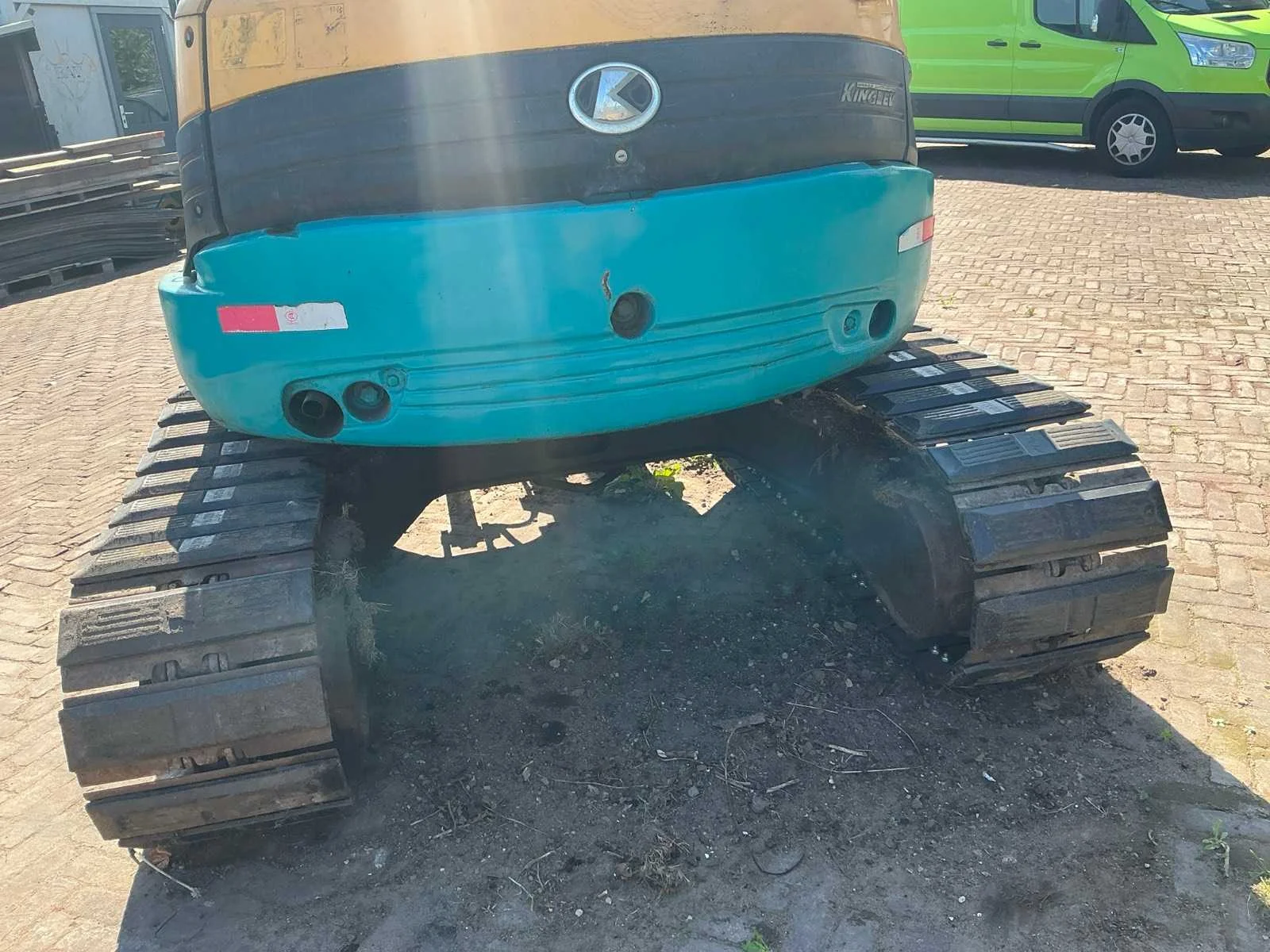 Voorzien van: zandschep, werkverlichting, radio No Merk: Kubota Type: KX155-3SZ Bouwjaar: 2015 Serienummer: 81090 Motorvermogen (kW): 29.4kW Brandstof: Diesel Bedrijfsgewicht: 5115kg Gieklengte: 2000mm Max. werkbereik: 5600mm Max. graafdiepte: 3560mm Met graafbak: true Graafbak afm. l: 700mm Graafbak afm. b: 750mm Rups breedte: 400mm Cabine: true Afgelezen urenstand: 7636 Totale afmeting L: 3800mm Totale afmeting Breedte: 2000mm Totale afmeting Hoogte: 2530mm