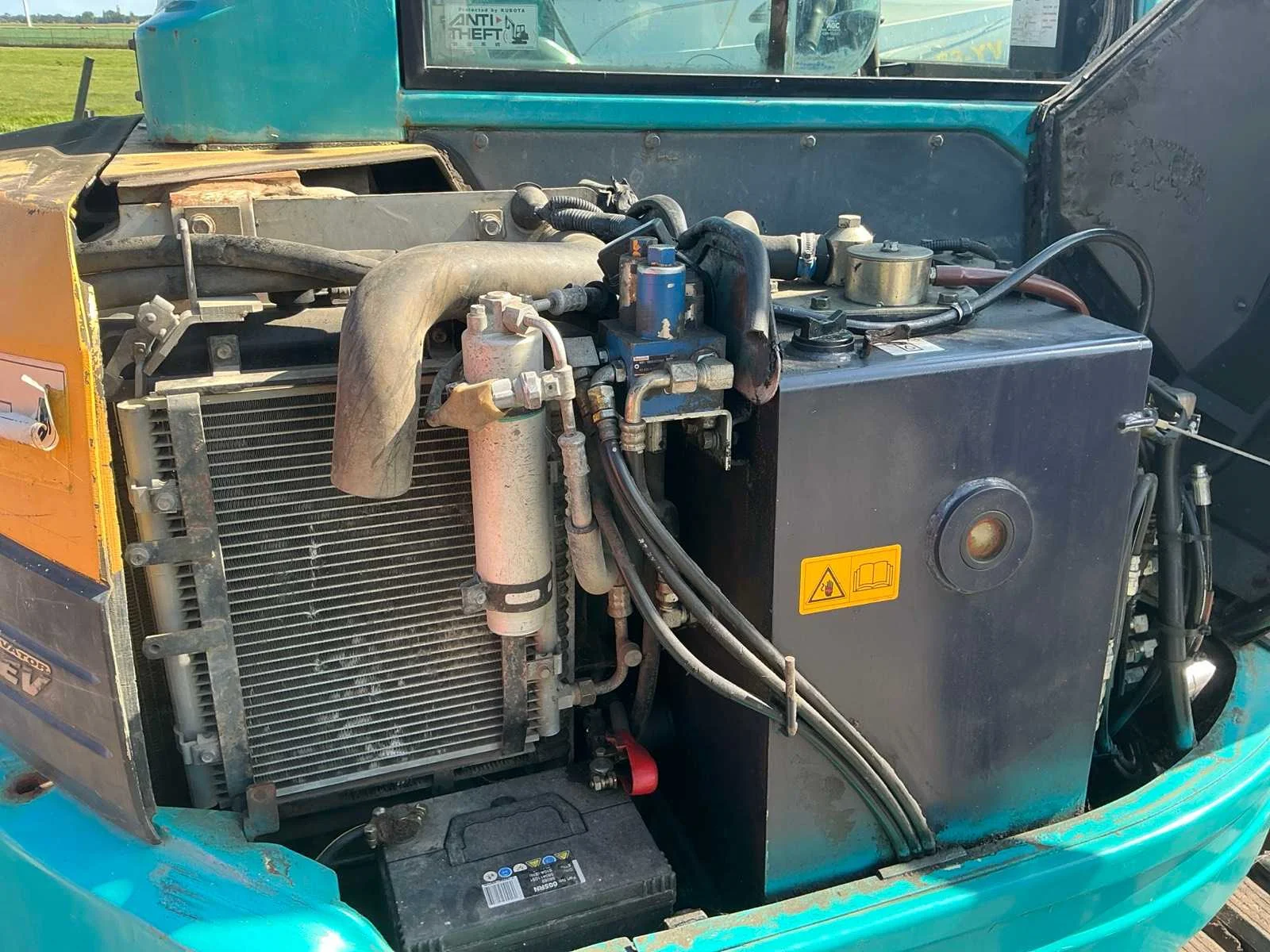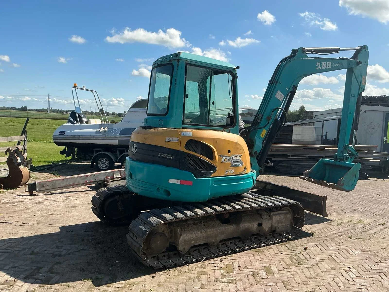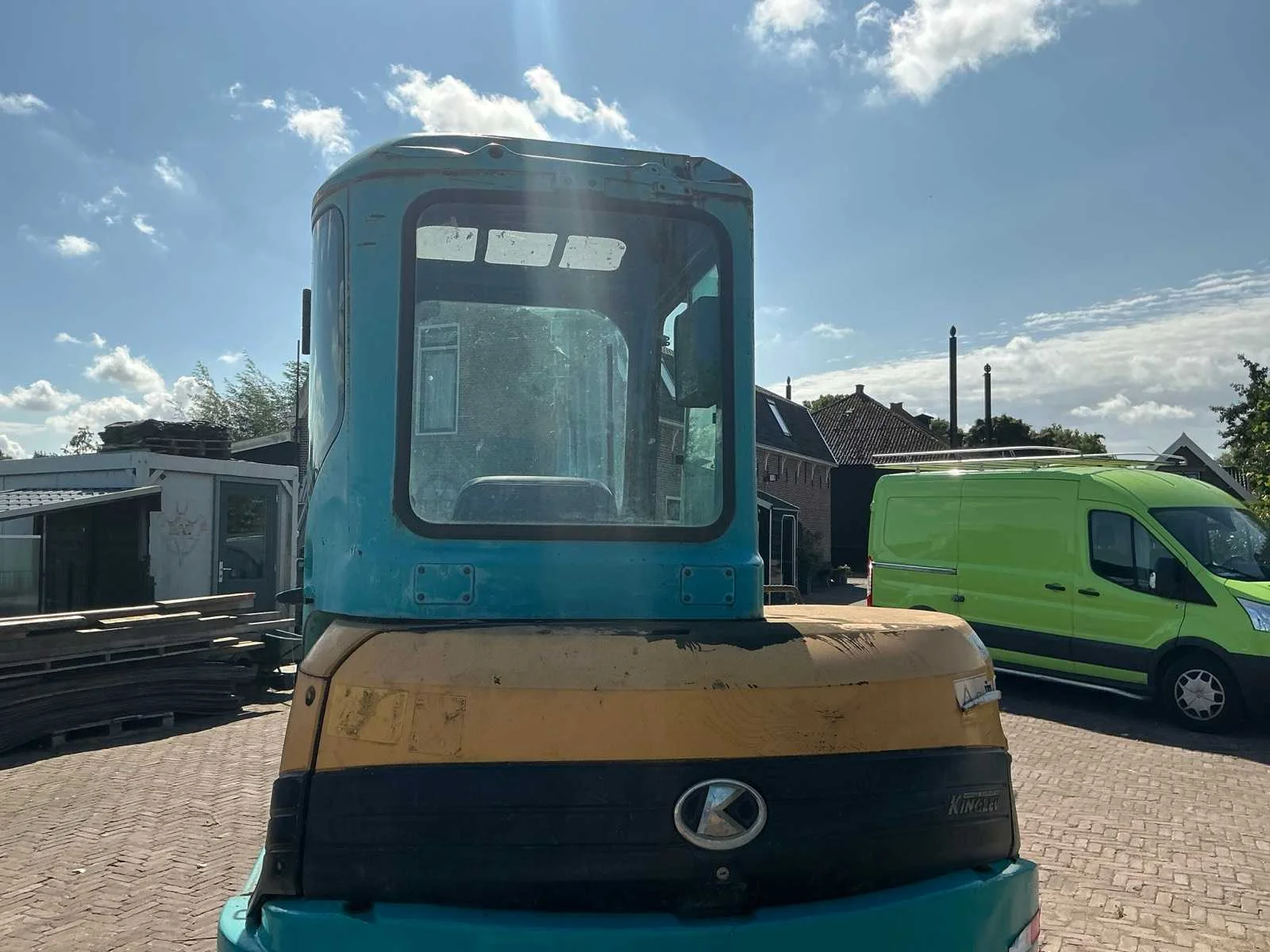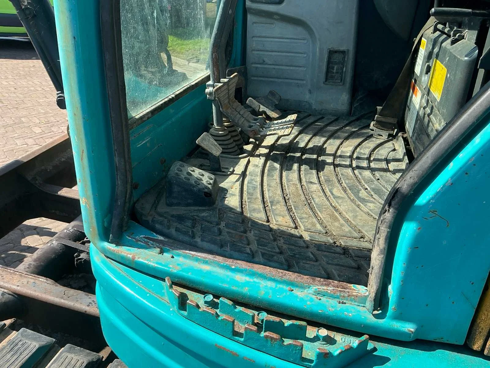 Voorzien van: zandschep, werkverlichting, radio No Merk: Kubota Type: KX155-3SZ Bouwjaar: 2015 Serienummer: 81090 Motorvermogen (kW): 29.4kW Brandstof: Diesel Bedrijfsgewicht: 5115kg Gieklengte: 2000mm Max. werkbereik: 5600mm Max. graafdiepte: 3560mm Met graafbak: true Graafbak afm. l: 700mm Graafbak afm. b: 750mm Rups breedte: 400mm Cabine: true Afgelezen urenstand: 7636 Totale afmeting L: 3800mm Totale afmeting Breedte: 2000mm Totale afmeting Hoogte: 2530mm
