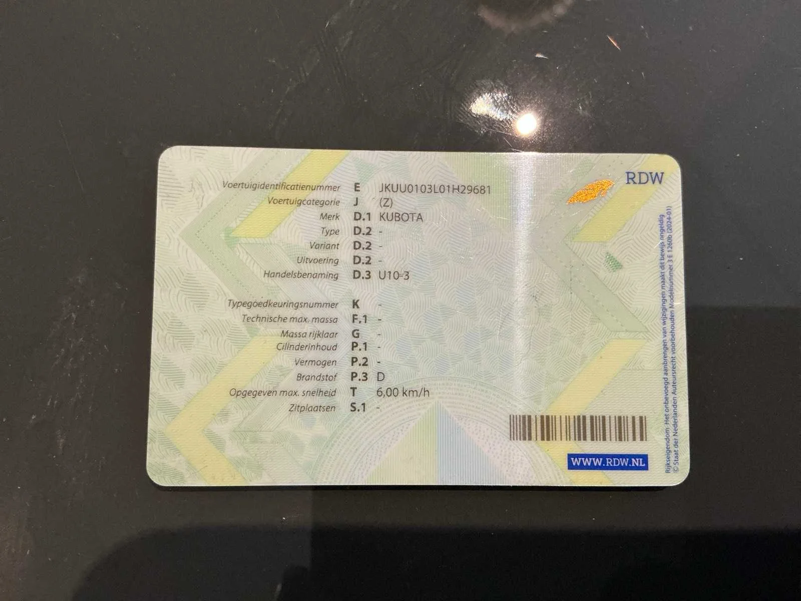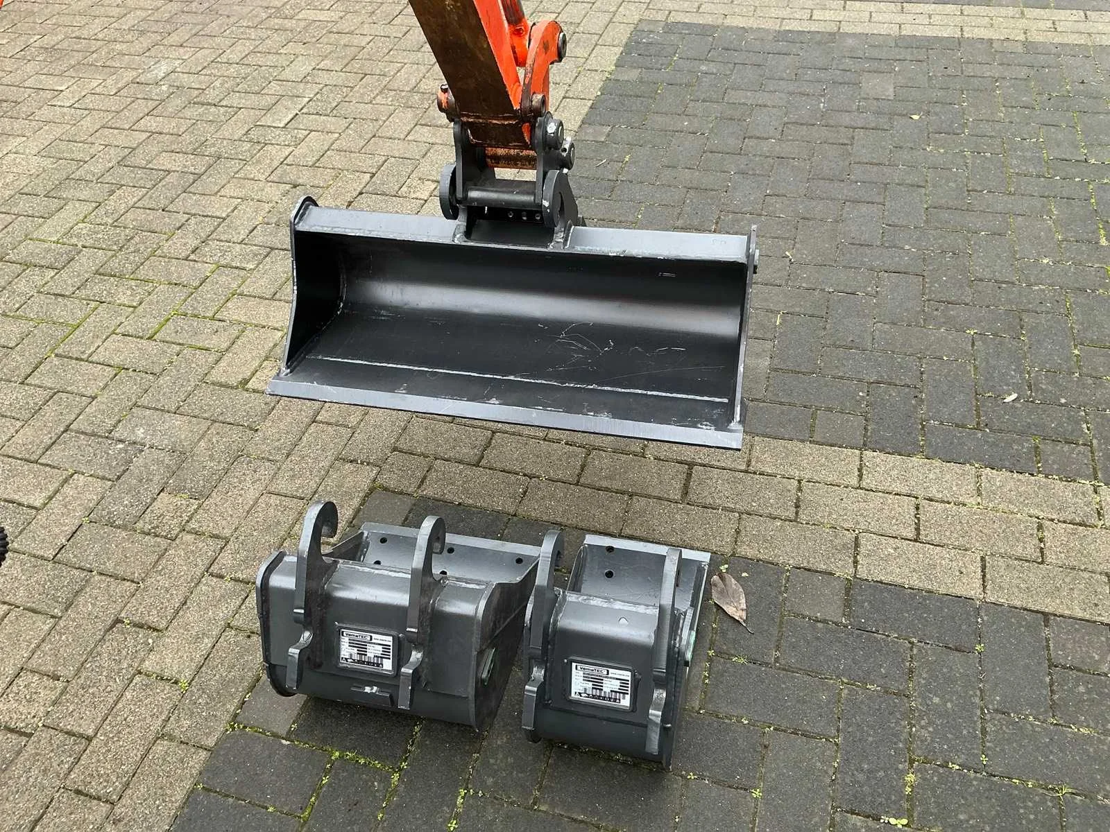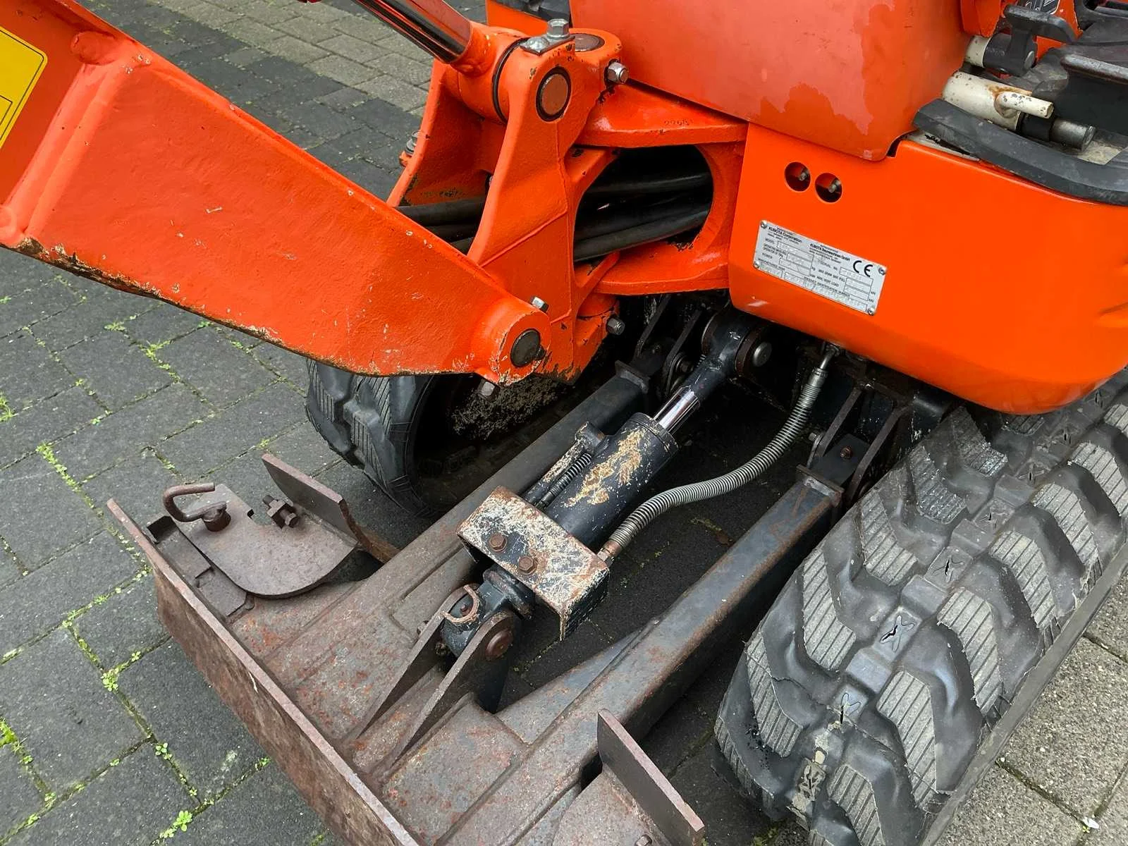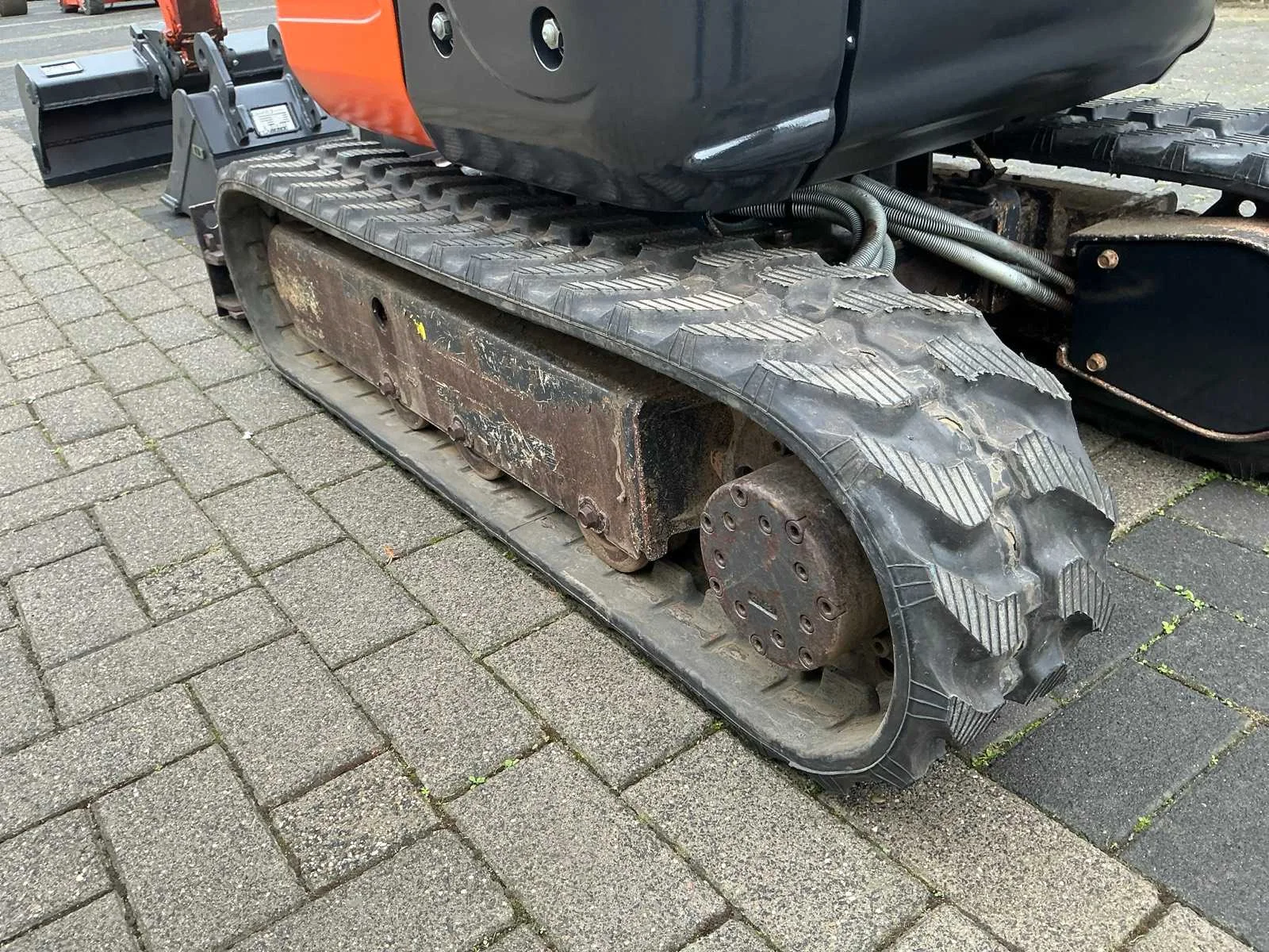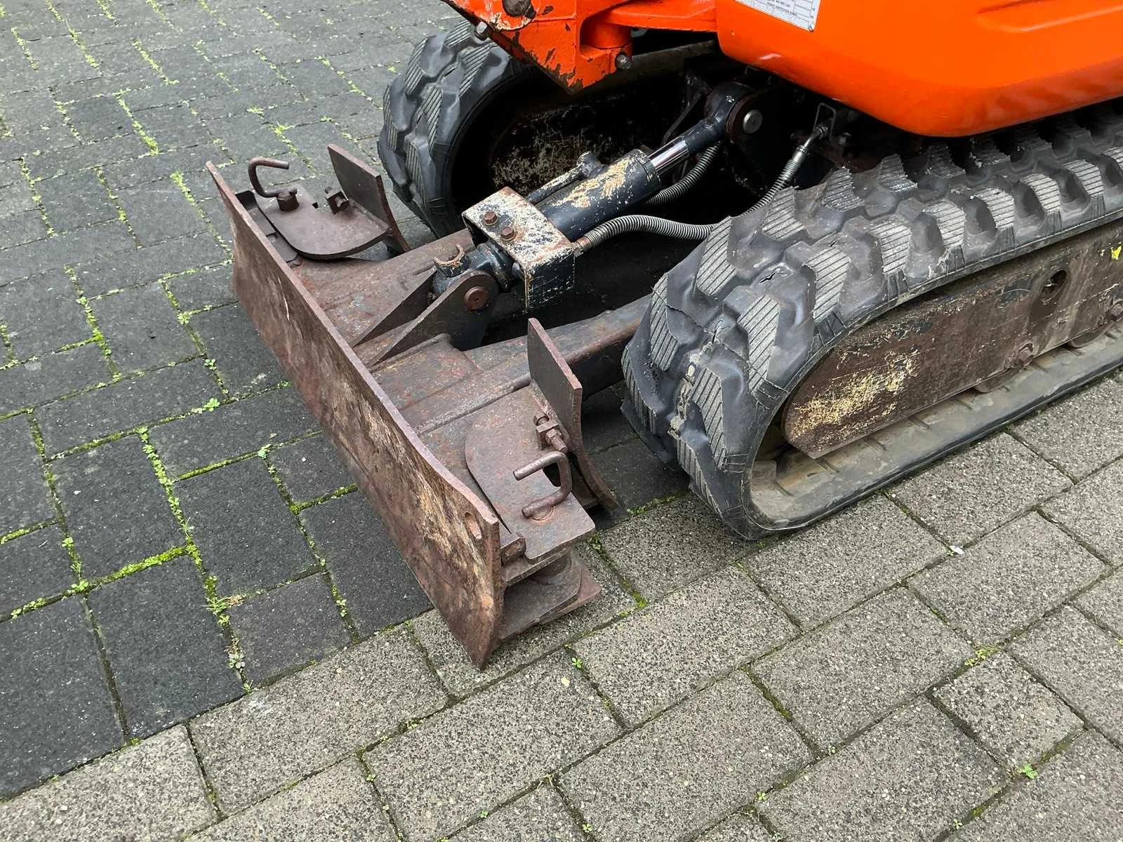 Voorzien van: Kubota D722 motor, nieuwe rupsen, 3 stuks nieuwe bakken - opschoonbak 800mm, bak 370mm, bananen bak 230mm, nieuwe mechanische snelwissel, dozerblad met verbreding, hydraulisch verstelbare rupsbreedte 750 tot 990 mm, 2 rijsnelheden, ROPS-beugel opklapbaar, werklamp, aux. functie langs lepelsteel, binnendraaier, gewicht (kg) 1120, graafdiepte (mm)1800, minimale breedte (mm) 750. Nee Merk: Kubota Type: U10-3 Bouwjaar: 2017 Serienummer: 29681 Merk motor: Kubota Motorvermogen (kW): 7.4kW Aantal cilinders: 3 Brandstof: Diesel Bedrijfsgewicht: 1120kg Inclusief graafbak: Yes Rups breedte: 180mm Afgelezen urenstand: 959 Eigen gewicht: 1120kg Totale afmeting L: 2500mm Totale afmeting Breedte: 750mm Totale afmeting Hoogte: 1700mm