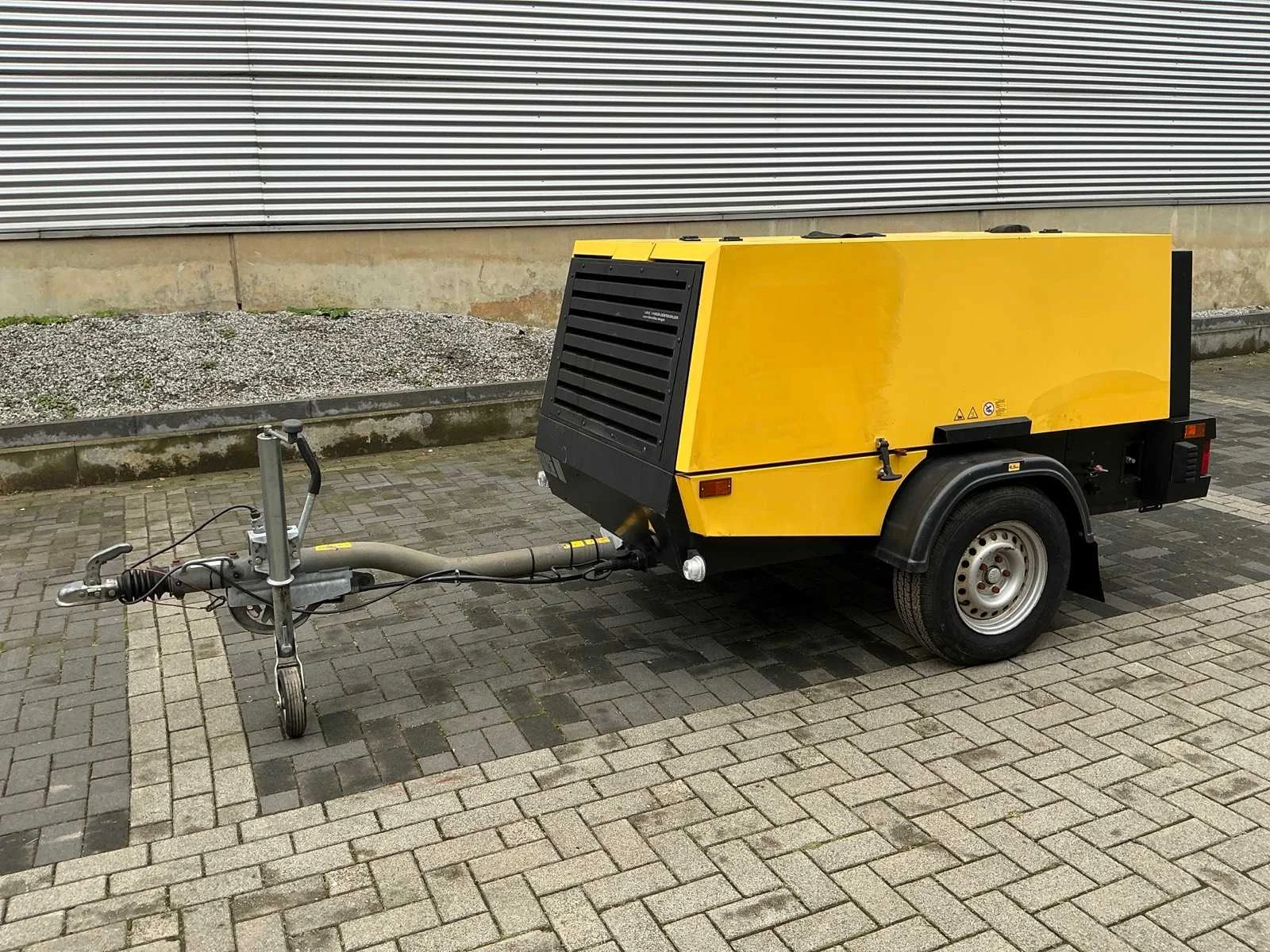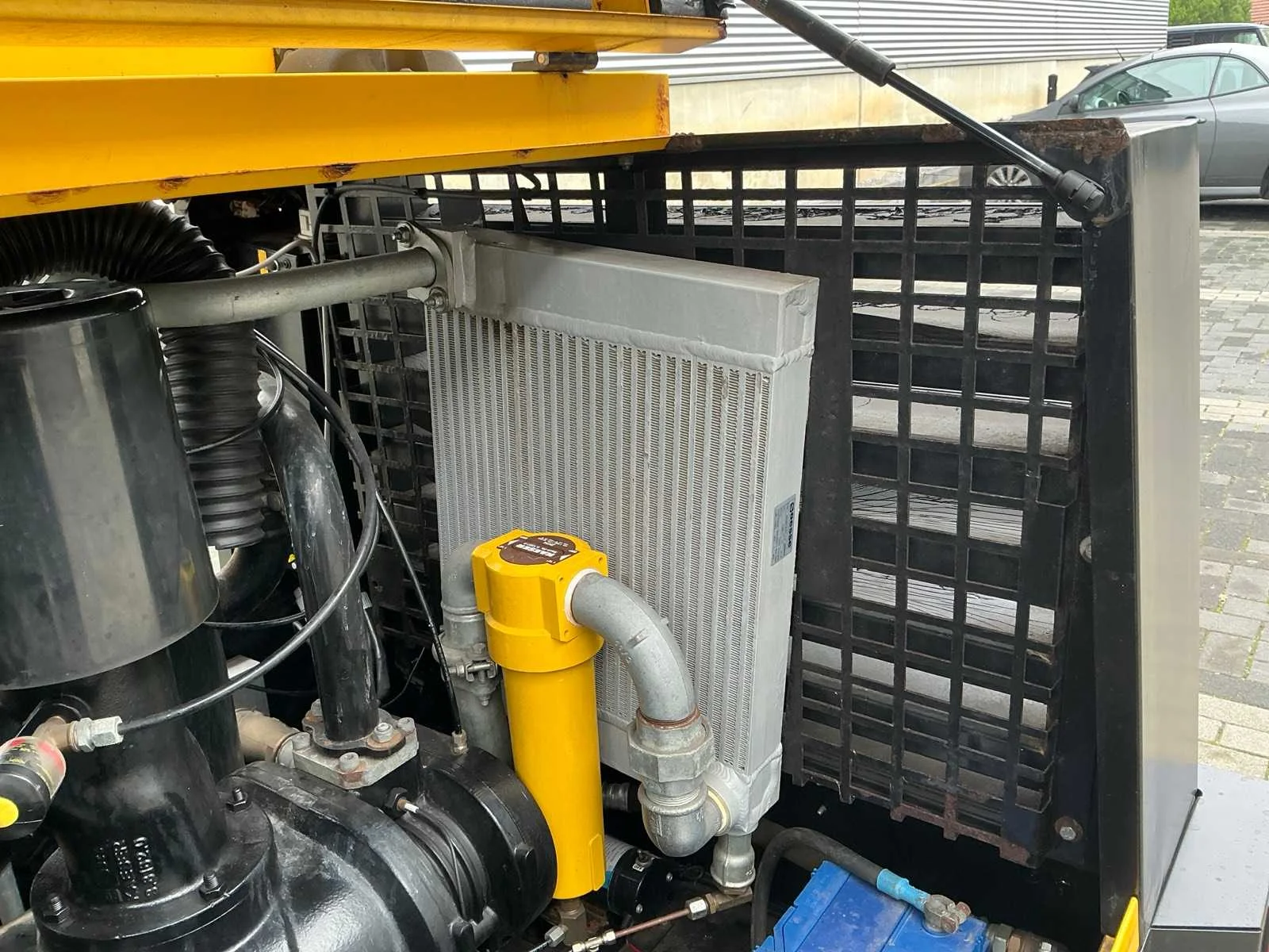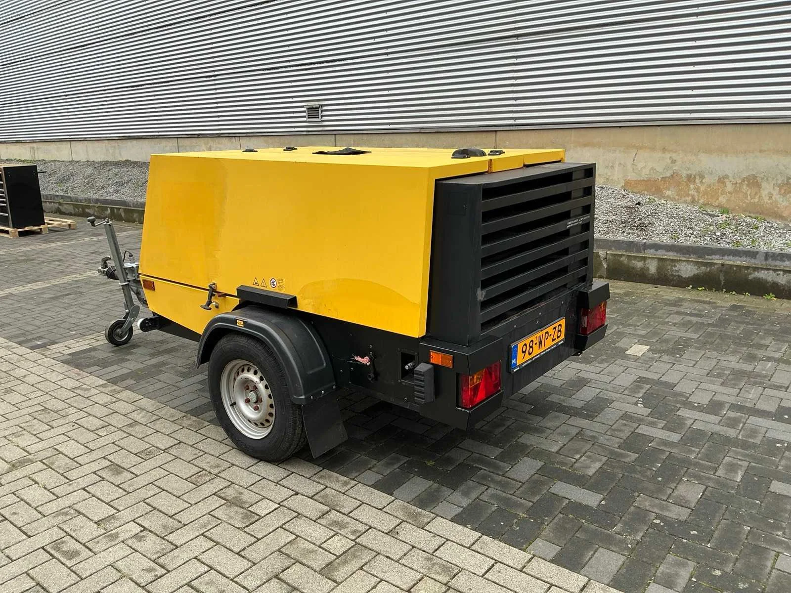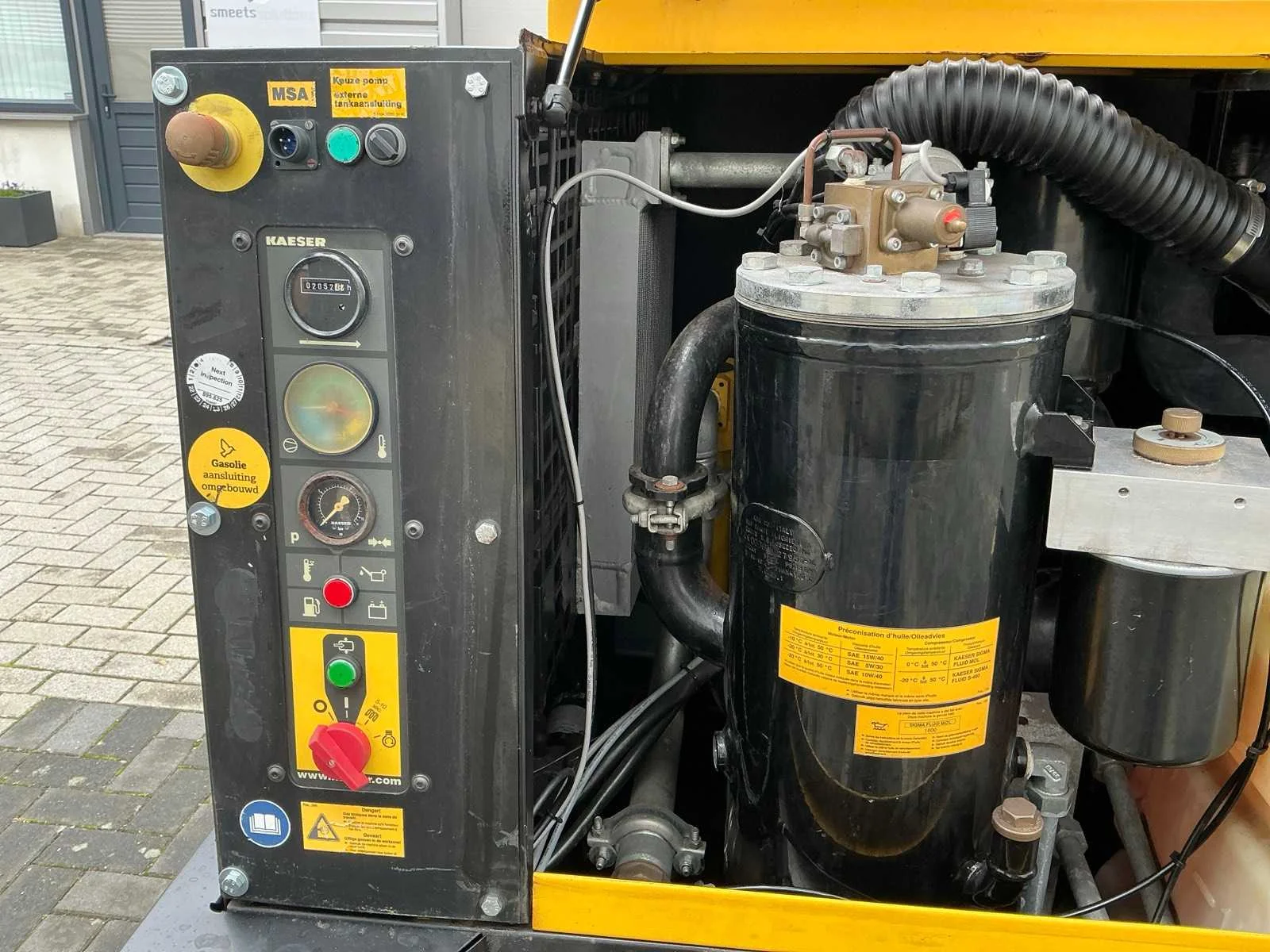 Voorzien van: Kubota V2203, 4 cilinder diesel, lucht na-koeler, snel-koppeling naar brandstof tank, verlichting, hoofdschakelaar, neuswiel, handrem, oplooprem, opbrengst: 5,2 m³/min, max. werkdruk: 7 bar, brandstoftankinhoud: 105 l, bedrijfsgewicht: 1225 kg, luchtaansluiting: 2 x G ¾, 1 x G 1. Nee Merk: Kaeser Type: M52.1C Bouwjaar: 2017 Serienummer: 1047 Capaciteit.: 7bar Luchtstroom: 2850l/min Vermogen: 35.4kW Afgelezen urenstand: 2052 Eigen gewicht: 1215kg Totale afmeting L: 4000mm Totale afmeting Breedte: 1700mm Totale afmeting Hoogte: 1400mm