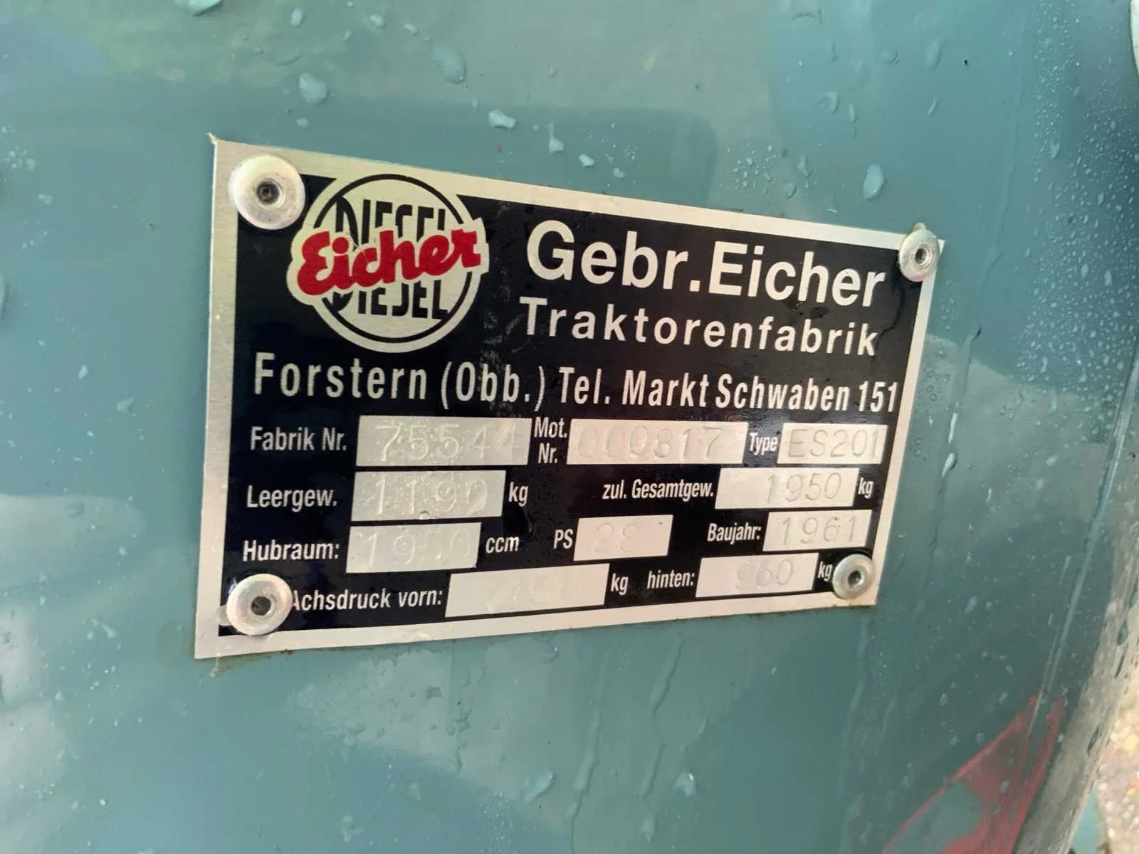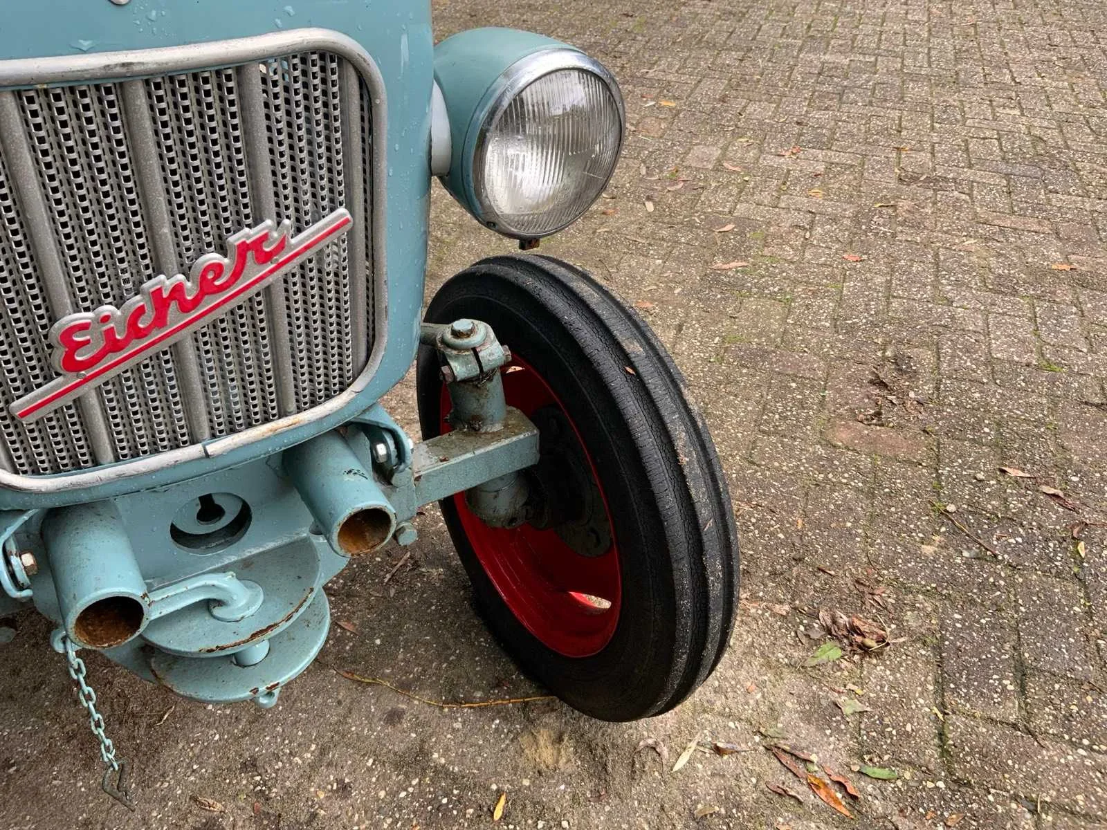 Voorzien van 28Pk “Eicher” motor; trekhaak Nee Merk: Eicher Type: ES201 Bouwjaar: 1961 Serienummer: 75544 Kenteken: TGL-08-B Bandenmaat voor: 4.00-15 Bandenmaat achter: 9.5-24 Eigen gewicht: 1190kg Totale afmeting L: 2650mm Totale afmeting Breedte: 1100mm Totale afmeting Hoogte: 1150mm Kentekenpapieren compleet?: true Datum eerste toelating: 1961-06-30 Nationaliteit documenten: Nederlandsche