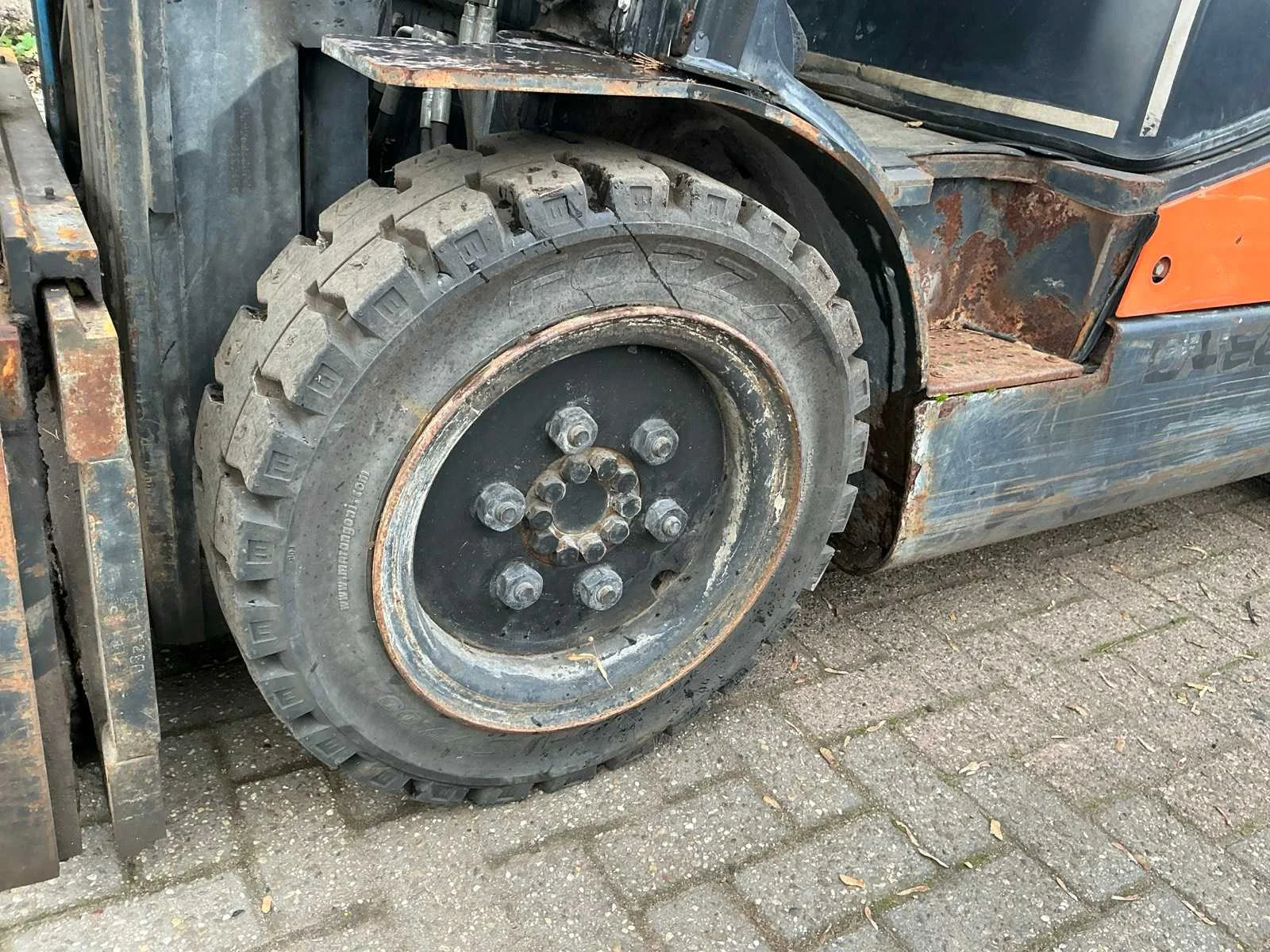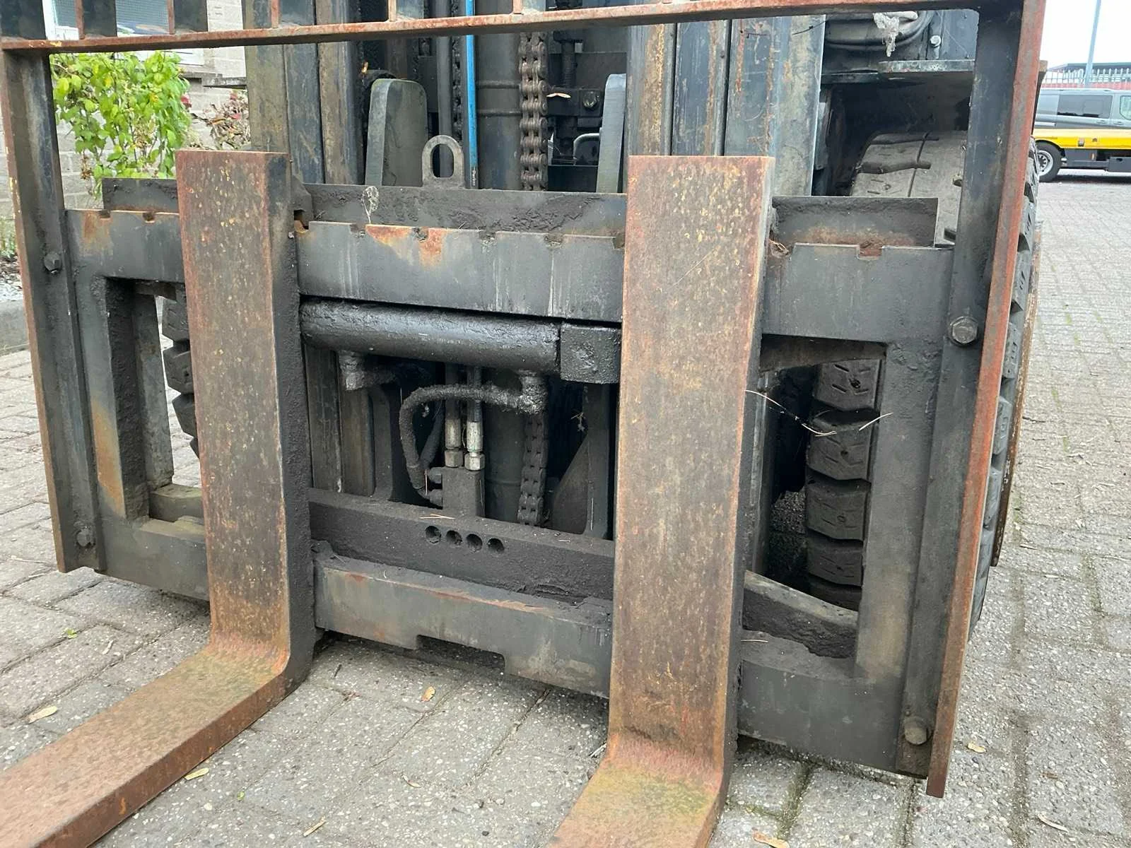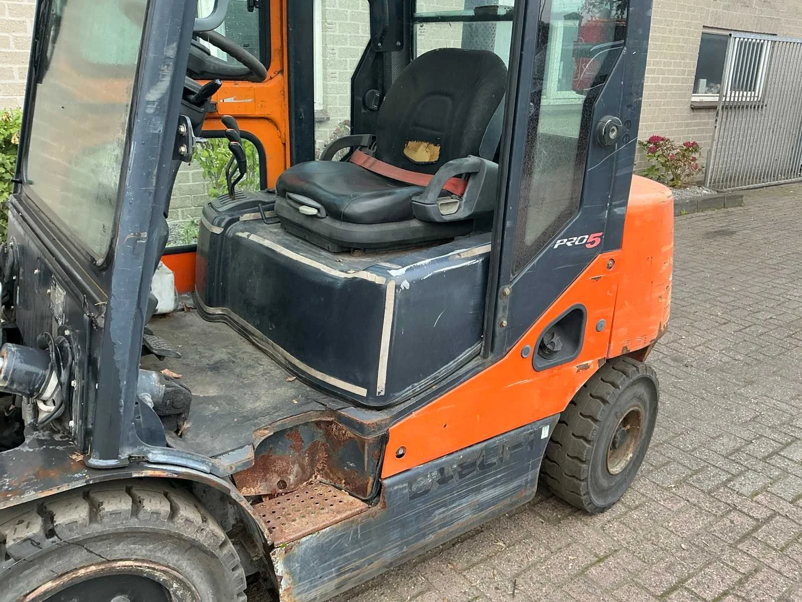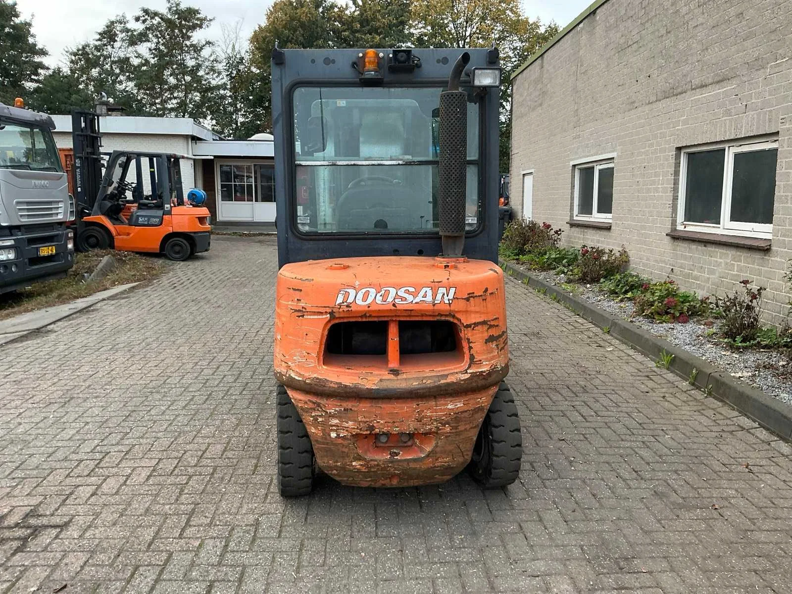 Voorzien van: werkverlichting, hydraulische aansluiting, ruitenwisser,spiegels, brandblusser, gordel Nee Merk: Doosan Type: D30S-5 Bouwjaar: 2013 Serienummer: FDA06-1240-15463 Brandstof: Diesel Mast: Triple Soort band: Volrubber banden Aantal wielen: 4 Afgelezen urenstand: 111095 Free-lift: true Side-shift: true Triple mast: true Eigen gewicht: 4761kg Hefvermogen: 3000kg Lepellengte: 1190mm Max. hefhoogte: 4730mm Vol rubber banden: true Totale afmeting L: 3850mm Totale afmeting Breedte: 1150mm Totale afmeting Hoogte: 2300mm Diesel: true