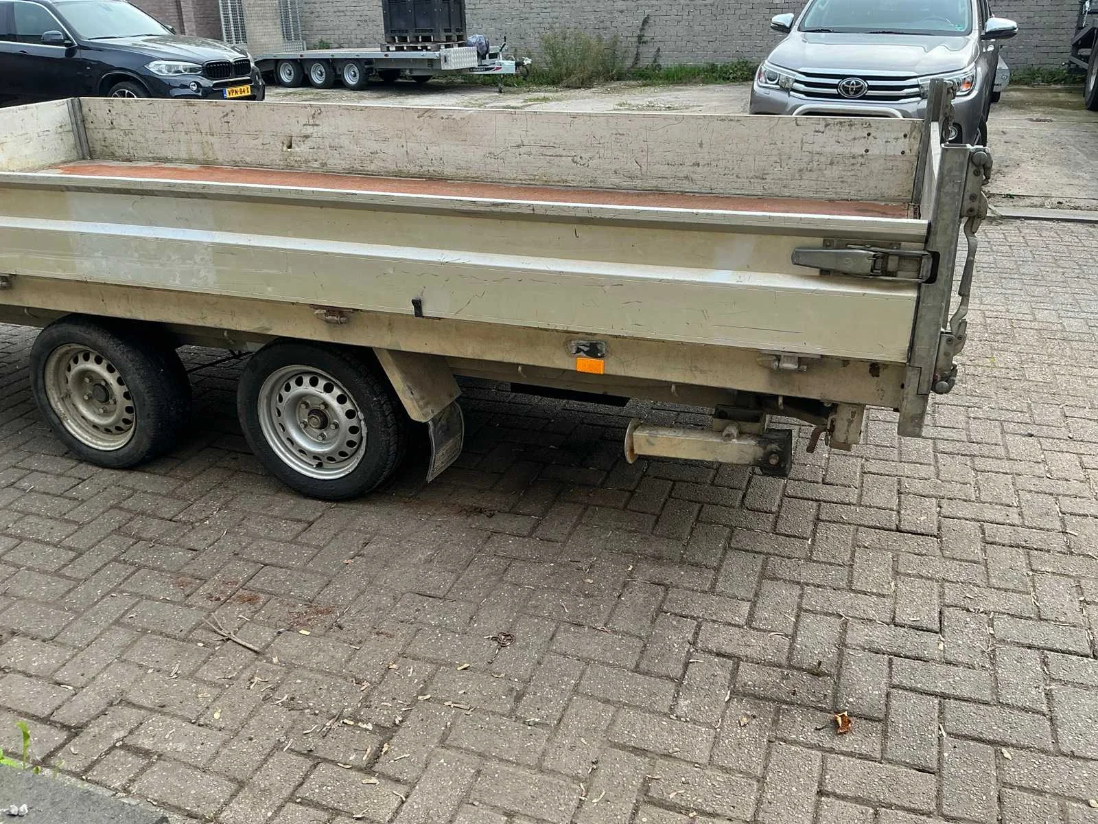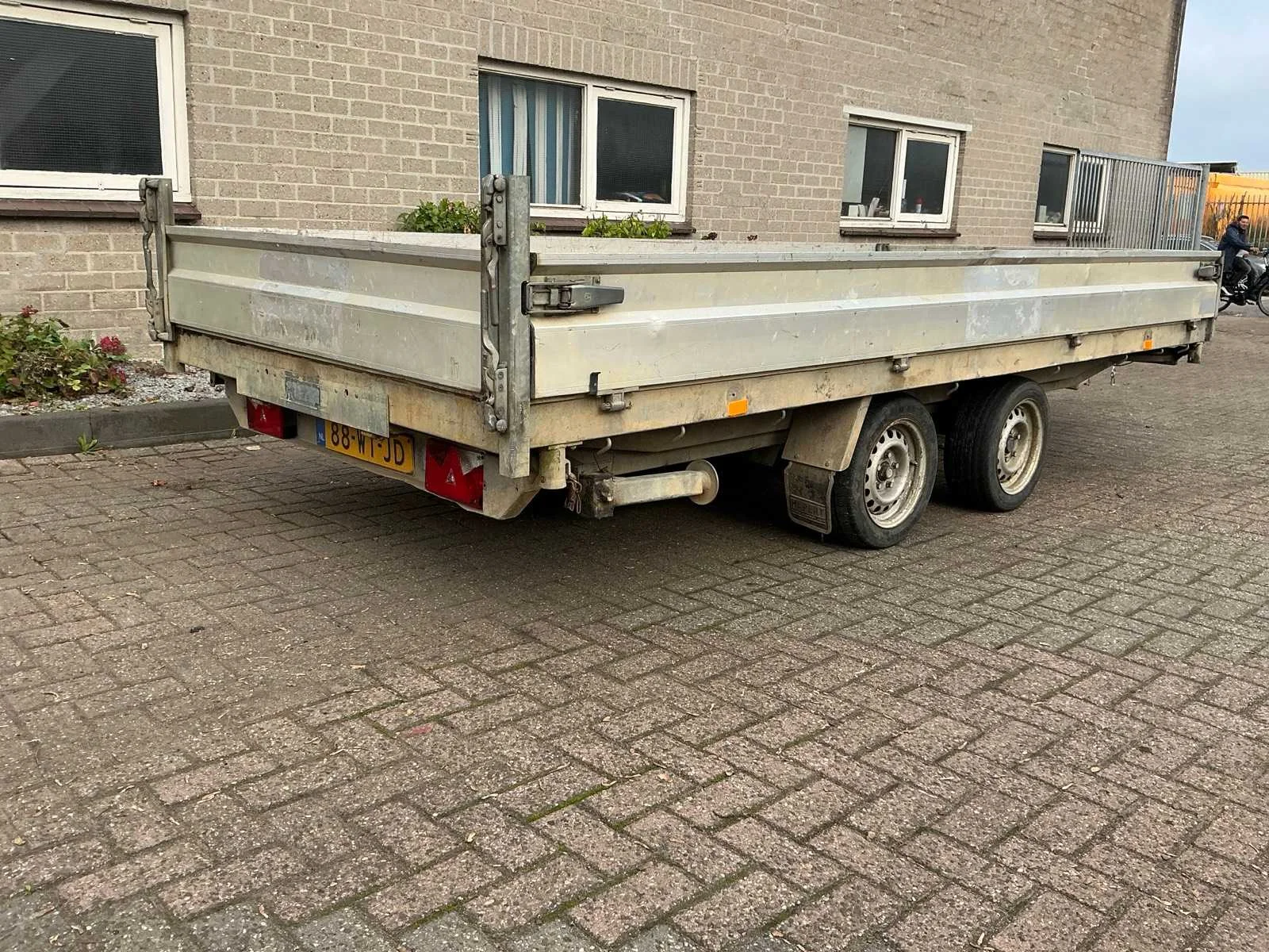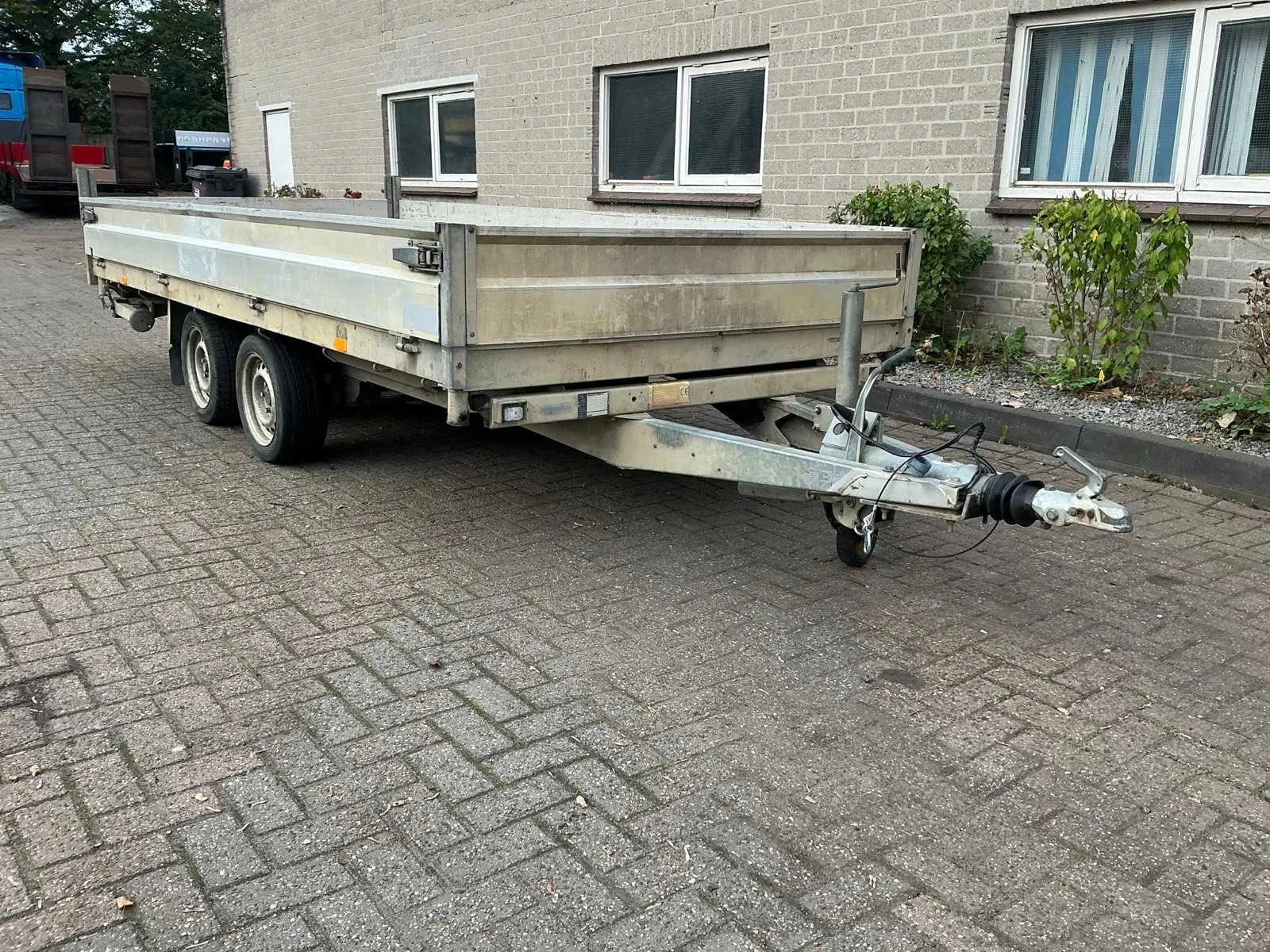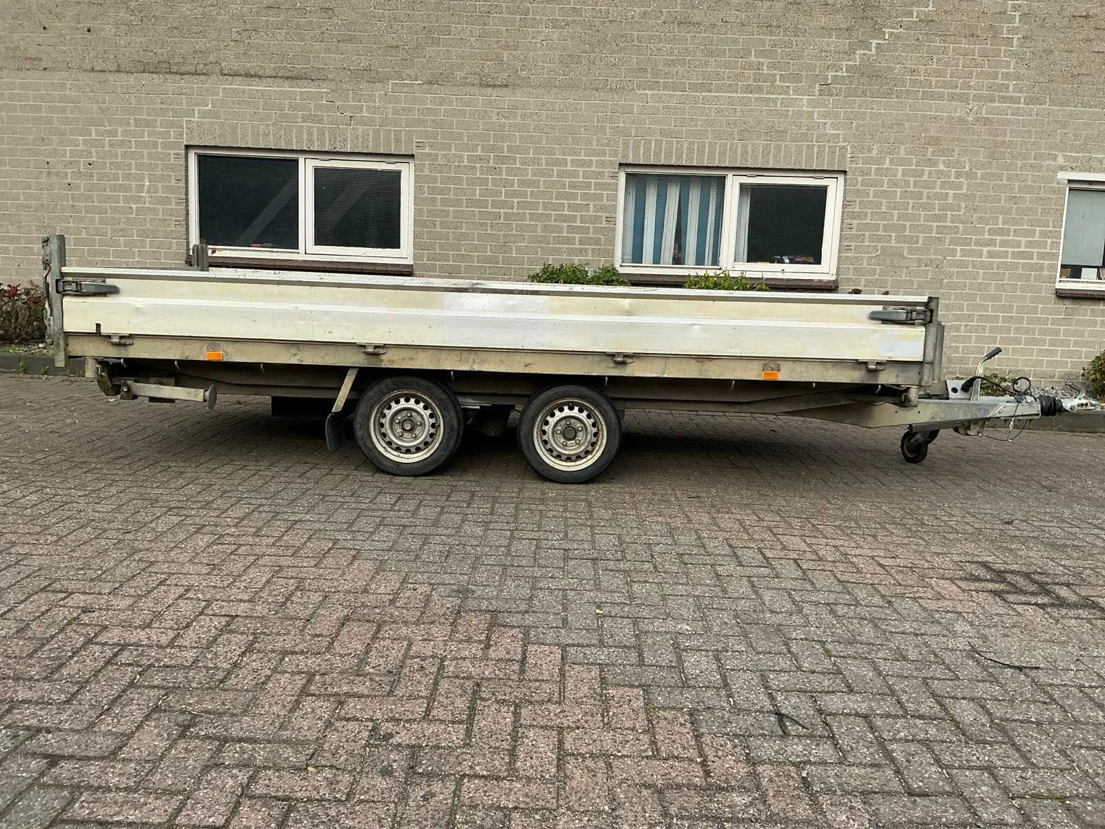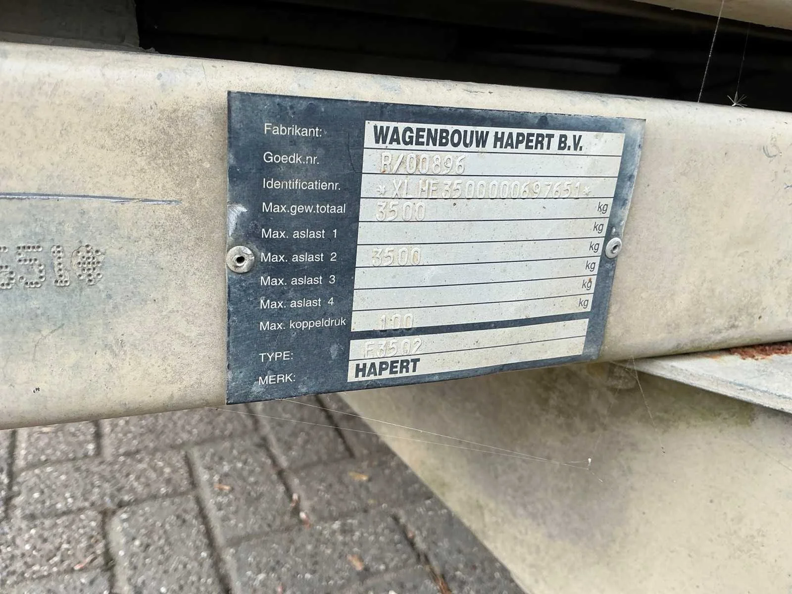 Voorzien van: steunpoten, neuswiel, aanhangwagenkoppeling met oplooprem, verlichting Nee Merk: Hapert Type: E3502 Bouwjaar: 2007 Chassisnummer: XLHE3500000697651 Aantal assen: 2 Laadbak afmeting l: 404cm Laadbak afmeting b: 180cm Ledig gewicht: 1100kg Laadvermogen: 2400kg Kenteken: 88-WT-JD