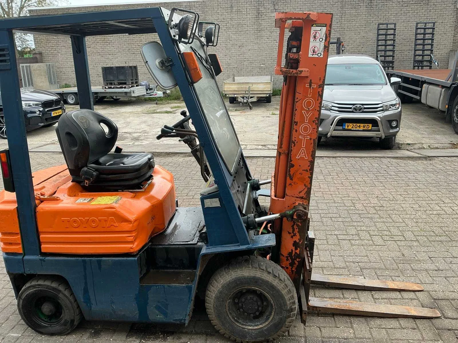 Voorzien van: werkverlichting, verlichting, spiegels, ruitenwisser, magneet in lepels, beschermende kooi, gordel Nee Merk: Toyota Type: 02-5FD 15 Bouwjaar: 1992 Serienummer: A5 FD18-62920 Brandstof: Diesel Mast: Duplex Soort band: Luchtbanden Aantal wielen: 4 Afgelezen urenstand: 9046 Duplex mast: true Eigen gewicht: 2830kg Hefvermogen: 1500kg Lepellengte: 890mm Max. hefhoogte: 3000mm Luchtbanden: true Totale afmeting L: 2900mm Totale afmeting Breedte: 1020mm Totale afmeting Hoogte: 2020mm Diesel: true