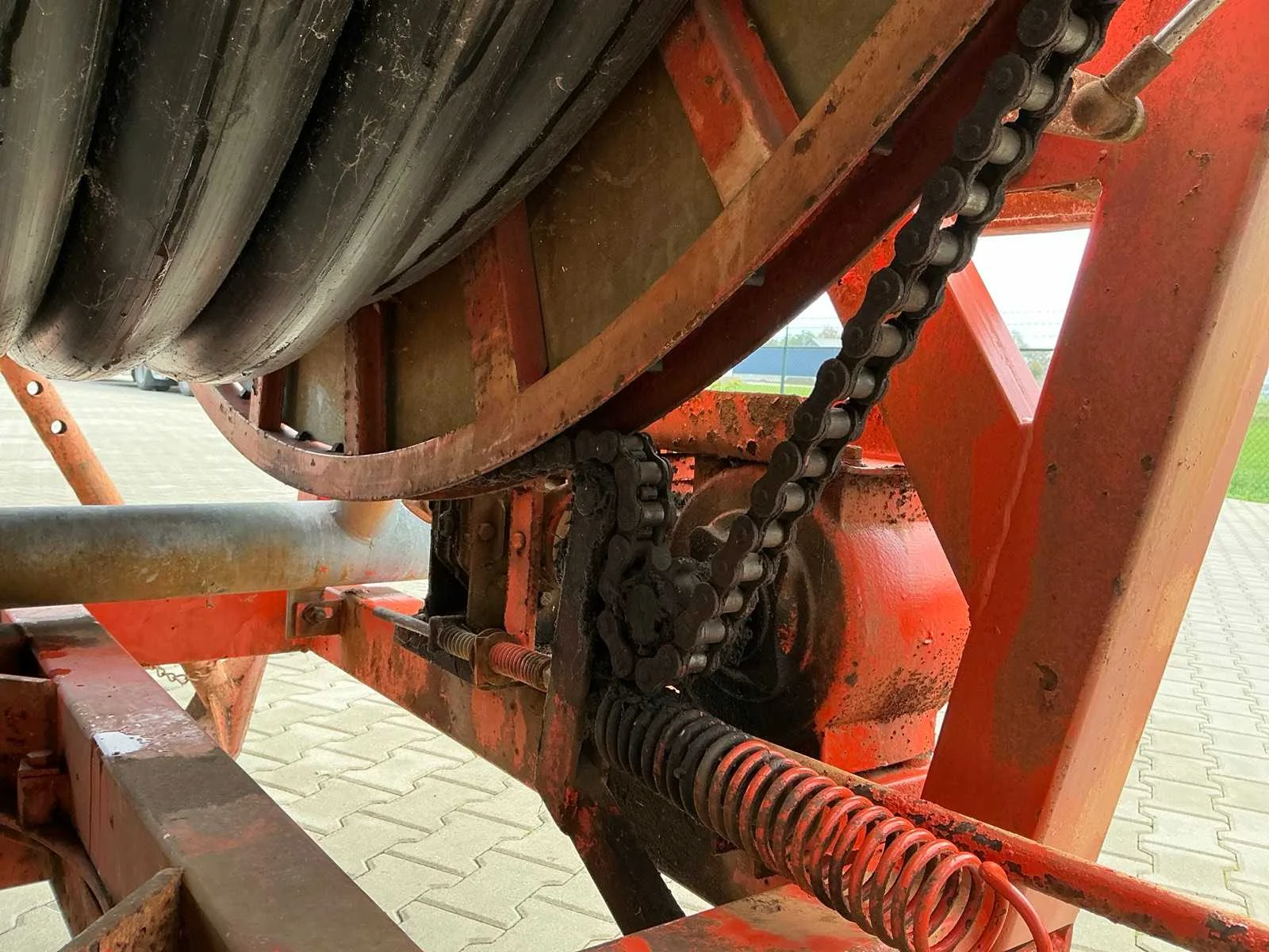 Voorzien van: slang 90mm, lengte 300mtr, sproeiwagen, sproei kanon, draaikrans. No Merk: Bauer Lengte: 300000cm Type: Rain star 90-300 Serienummer: 08 5253 Diameter circa: 90mm Steunpoten: true Totale afmeting L: 6400mm Totale afmeting Breedte: 2100mm Totale afmeting Hoogte: 2900mm