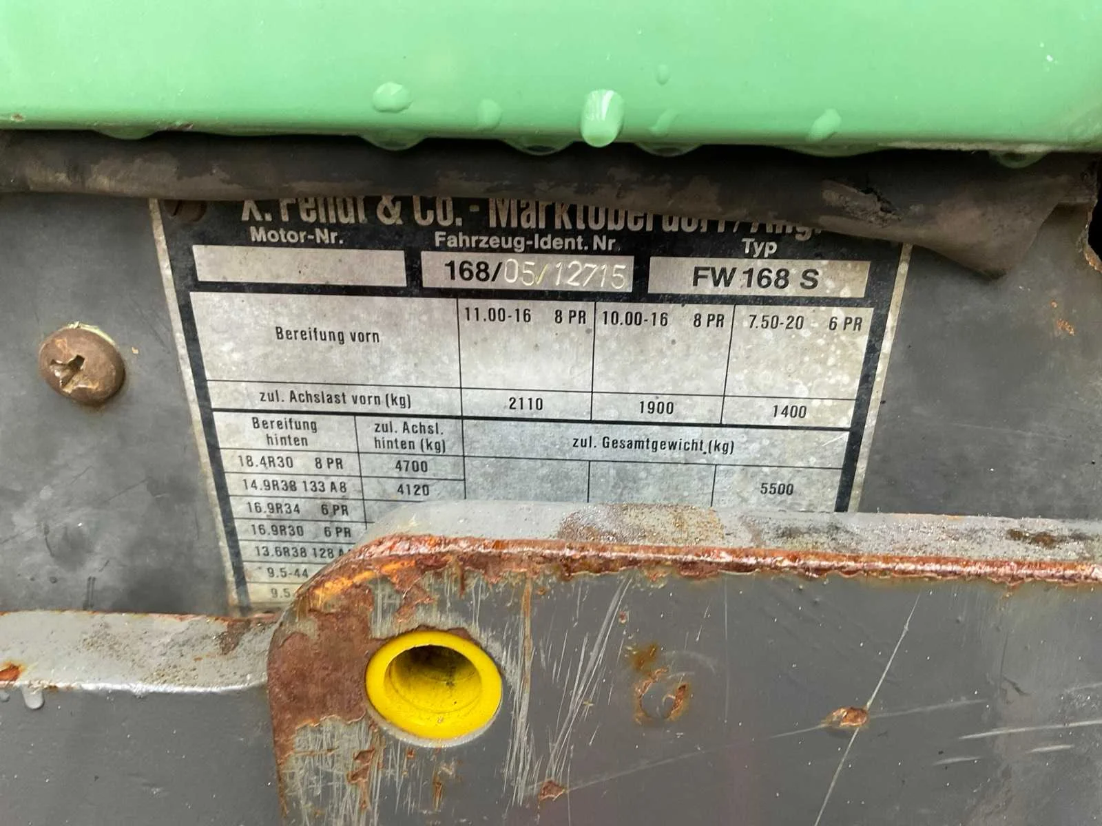 Voorzien van: spatbordbediening, 4-cilinder dieselmotor, Nederlandse kentekenregistratie, trekhaak voorzijde, stuurbekrachtiging, elektronisch bedienbare hefinrichting, 540-750-1000rpm aftakas, Nee Merk: Fendt Type: Farmer 306LS Turbomatik Bouwjaar: 2005 Serienummer: 168/05/12715 Kenteken: TNT-01-T Afgelezen urenstand: 21129 Versnellingsbaktype: 6 versnellingen + H/L Bandenmaat voor: Michelin 9.5R24 Bandenmaat achter: Alliance 320/90R46 Aantal hydraulische ventielen achter: 3 Datum eerste toelating: 2005-06-30 Nationaliteit documenten: Nederlands