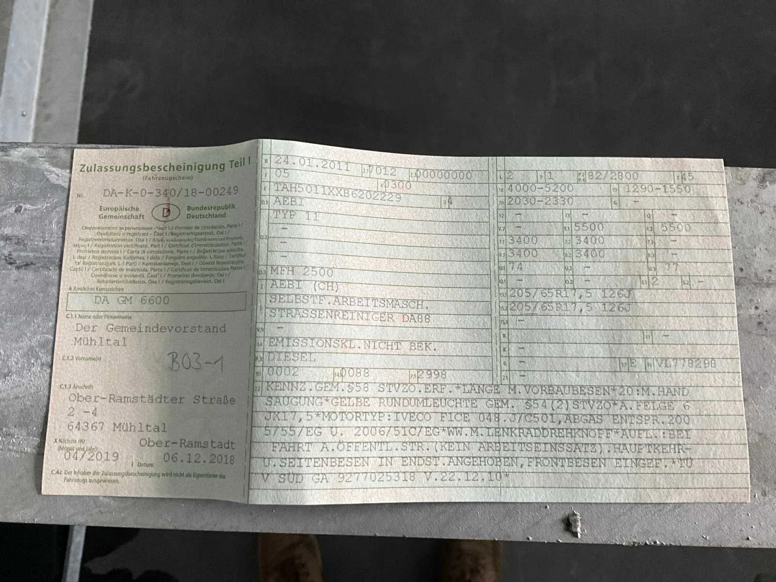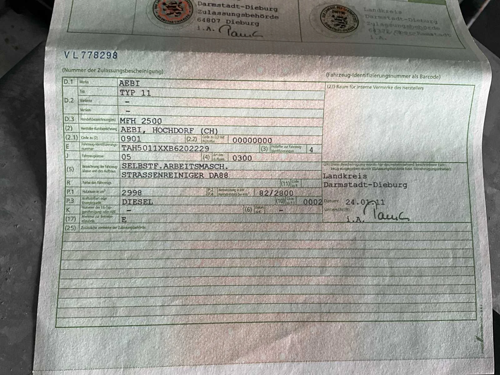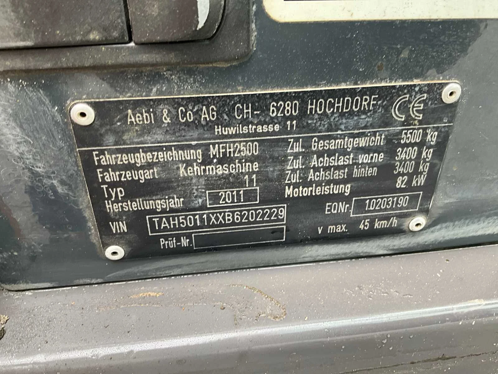 Voorzien van 4-Cil. “Iveco” 3ltr. Dieselmotor; camera (achter) met monitor; borstel met sideshift; Nee Merk: AEBI Type: MFH 2500 Bouwjaar: 2011 Serienummer: TAH5011XXB6202229 Afgelezen urenstand: 6664 Brandstofmotor aangedreven: true Brandstof: Diesel Vermogen: 84kW Merk motor: Iveco Aantal cilinders: 4