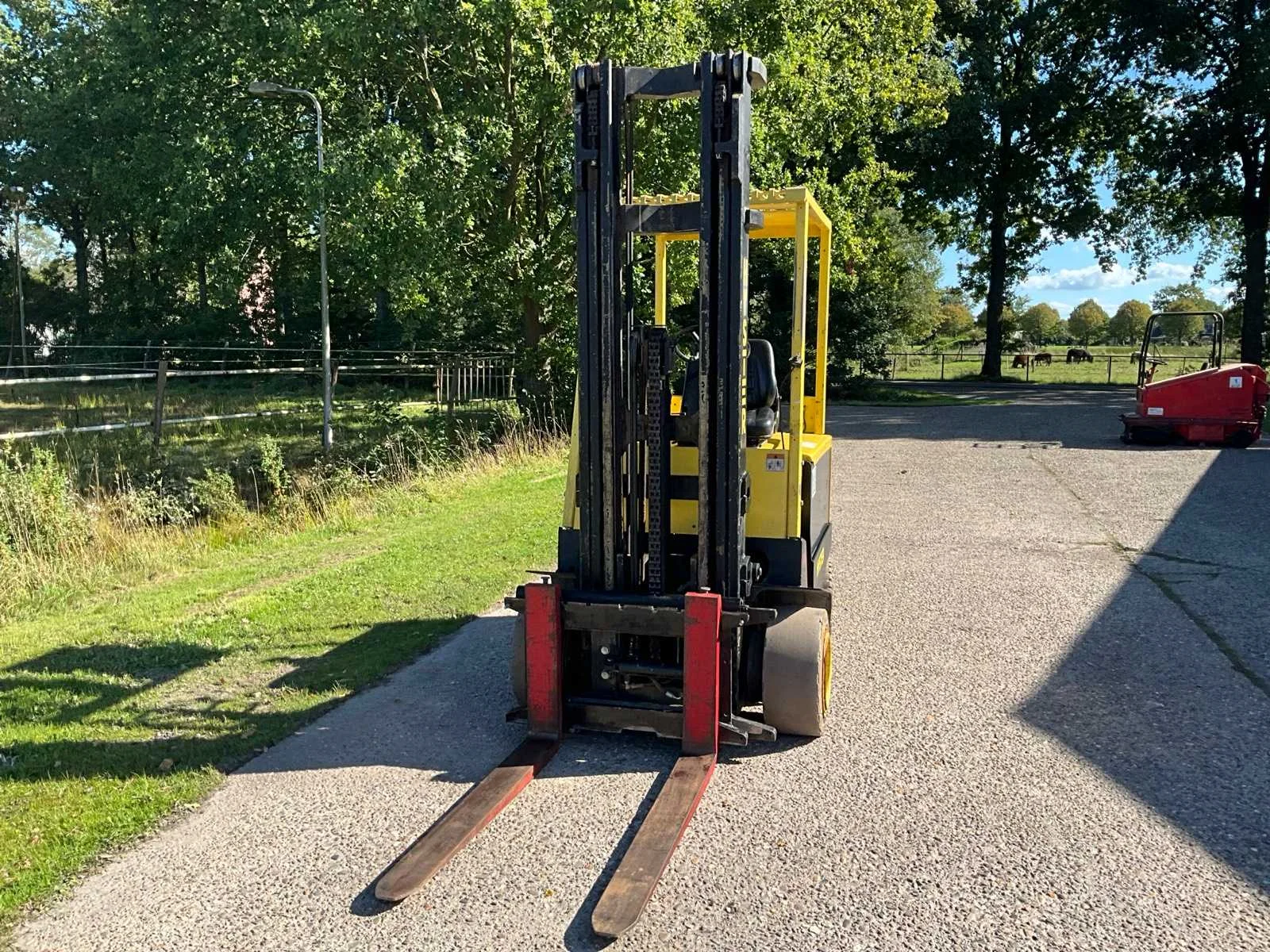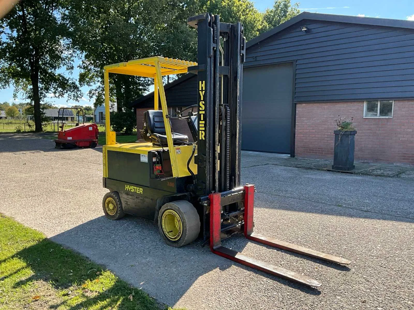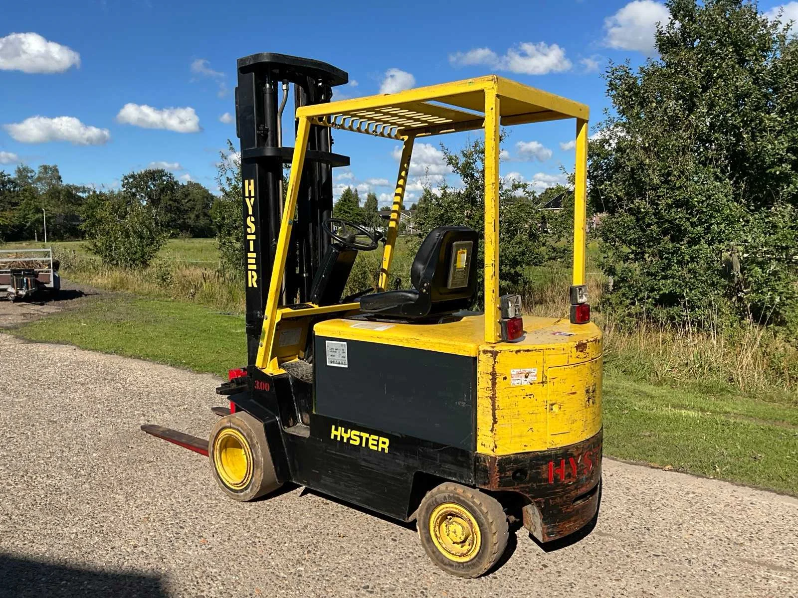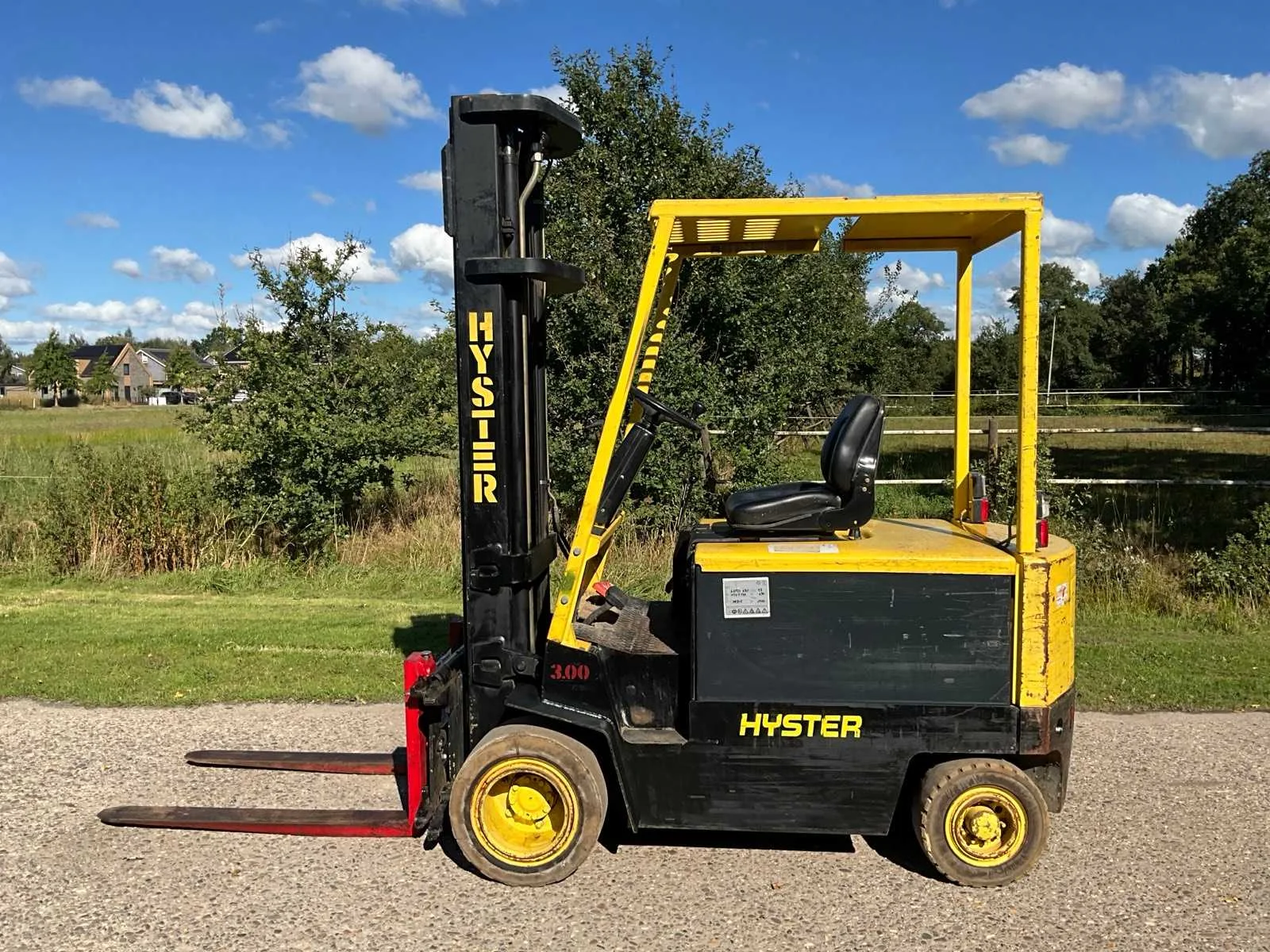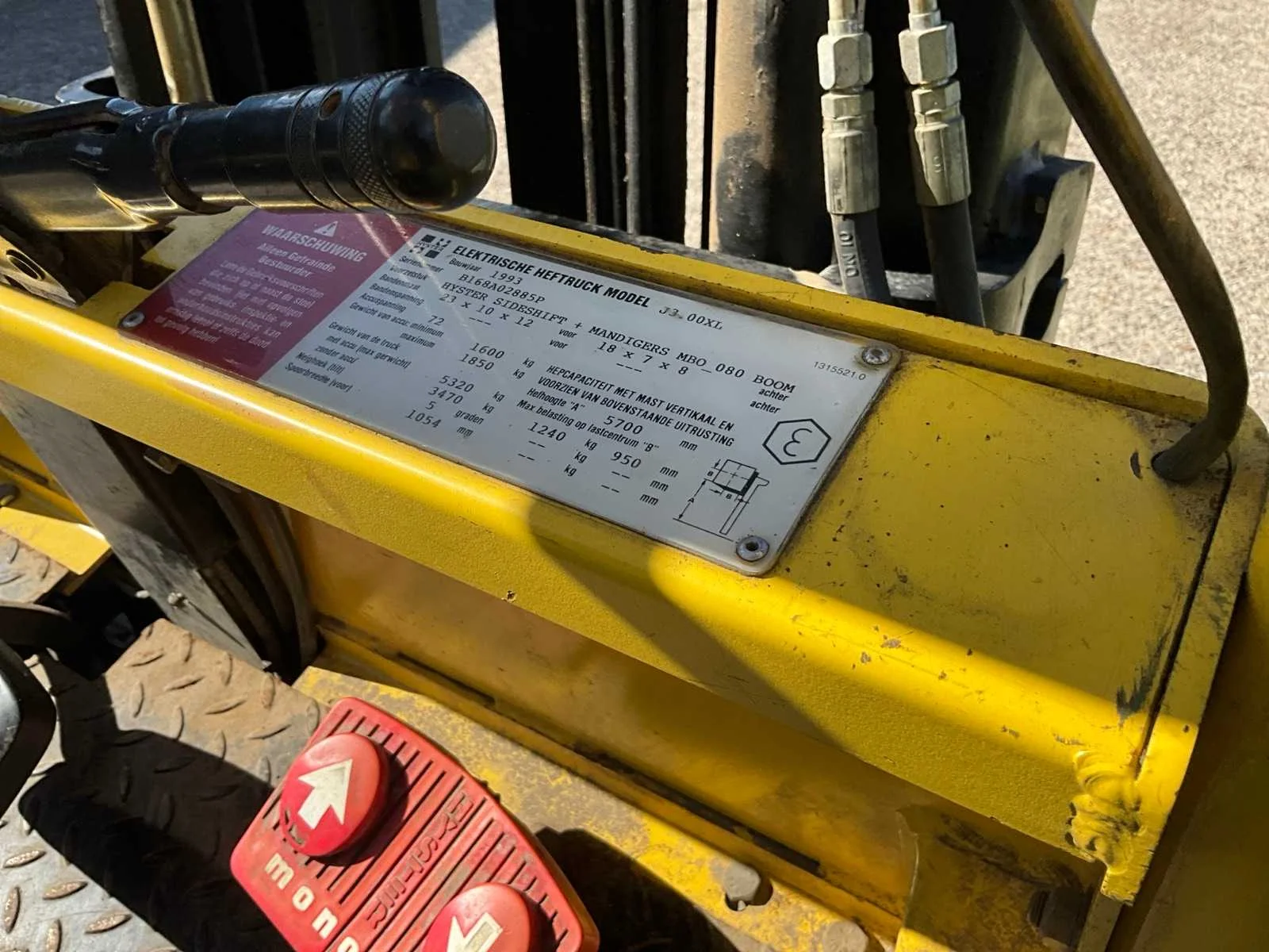 Voorzien van side-shift; triplex mast; inclusief acculader! No Merk: Hyster Type: J3.00XL Bouwjaar: 1993 Serienummer: B168A02885P Brandstof: Elektrisch Mast: Triple Soort band: Volrubber banden Aantal wielen: 4 Afgelezen urenstand: 6535 Accu lader: true Free-lift: true Side-shift: true Triple mast: true Eigen gewicht: 5320kg Hefvermogen: 3000kg Lepellengte: 1200mm Max. hefhoogte: 5700mm Hefhoogte: 5700mm Vol rubber banden: true Minimale doorrijhoogte: 2650mm Totale afmeting Breedte: 1300mm