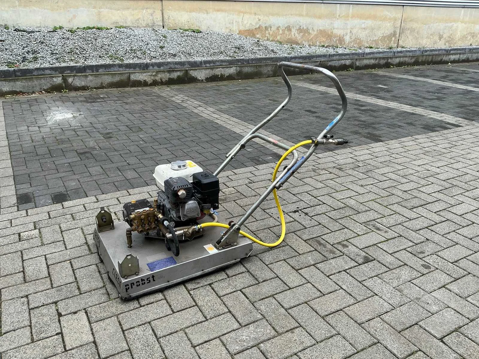 Voorzien van: Probst EC60 straatwerkreiniger / tuinreiniger / klinkerreiniger / tegelreiniger.water aansluiting, Honda motor, transportmaten zijn 800x600x500 mm (LxBxH), eigen gewicht 51 kg, werkdruk 150 bar Nee Merk: Probst Type: Easy Clean Serienummer: 4195P23 Maximale werkdruk: 150bar Totale afmeting L: 1000mm Totale afmeting Breedte: 600mm Totale afmeting Hoogte: 900mm