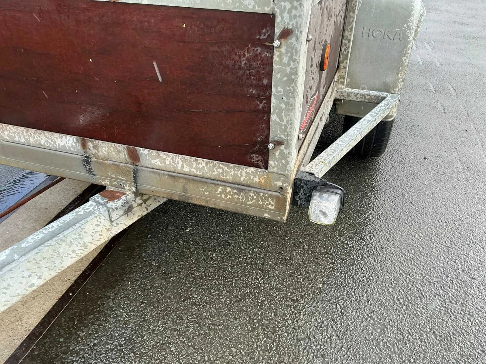 Voorzien van: verlichting, neuswiel, handrem, trekhaakkoppeling Nee Merk: Hoka Type: HOKA B1 Bouwjaar: 1999 Chassisnummer: 7362 Aantal assen: 2 Laadbak afmeting l: 305cm Laadbak afmeting b: 135cm Ledig gewicht: 460kg Laadvermogen: 1540kg Datum eerste toelating: 1999-04-12 Datum eerste toelating (NL): 1999-04-12 Kenteken: WV-27-RD Kentekenpapieren compleet?: true