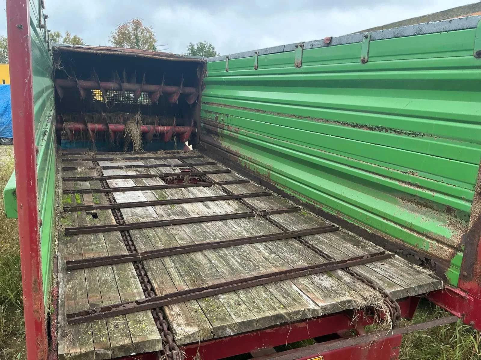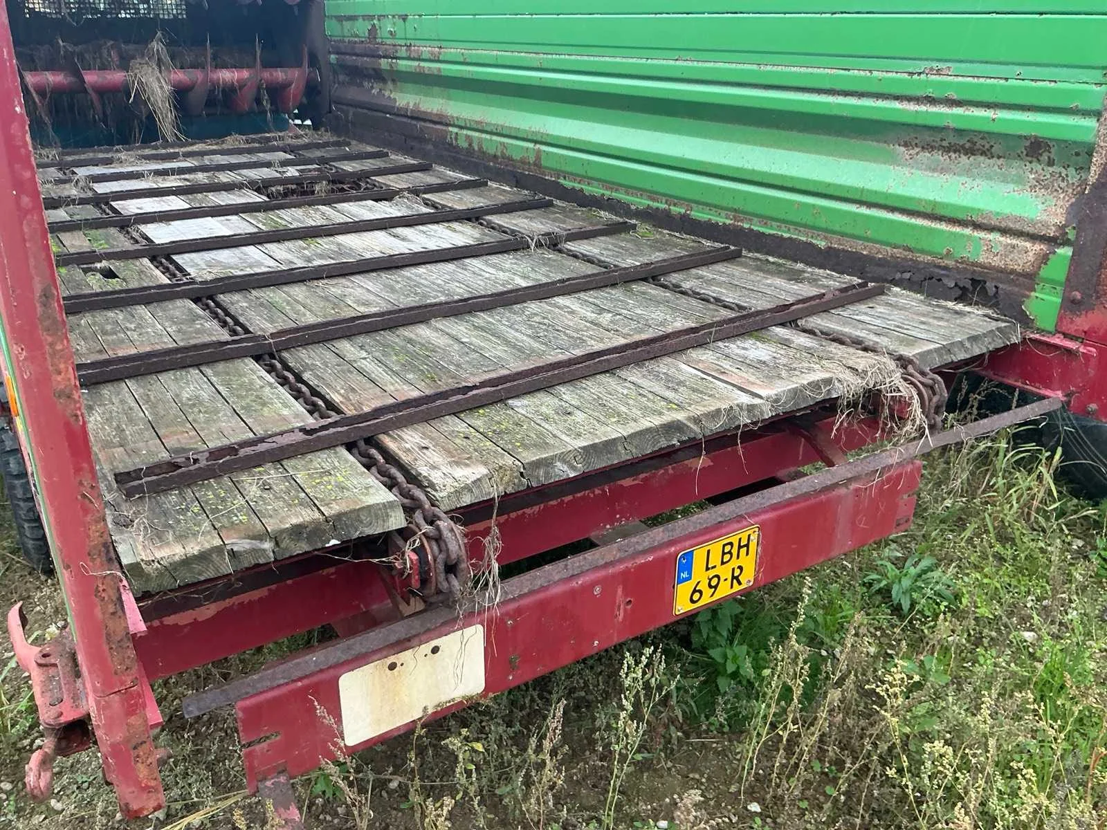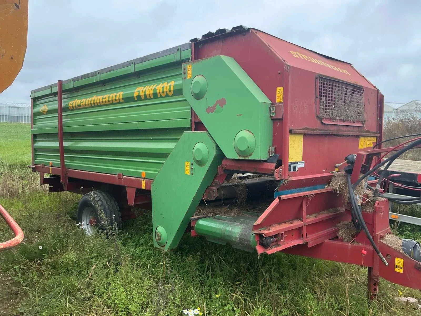 Laadvermogen tot 6900kg, Aandrijving: Aangedreven via aftakas (PTO) van tractor (540 tpm vereist), Krabbodem: 2 kettingen met meenemers, hydraulisch aangedreven, Dosering: 2 horizontale doseerwalsen (walzen met tanden), Losmechanisme: Dwarsafvoerband Nee Merk: Strautmann Type: FVW 100 Bouwjaar: 1999 Serienummer: 225991313 Kenteken: LBH-69-R Tankinhoud: 10m³ Totale afmeting L: 6000mm Totale afmeting Breedte: 2650mm Totale afmeting Hoogte: 2600mm