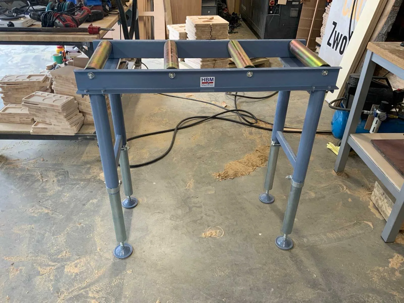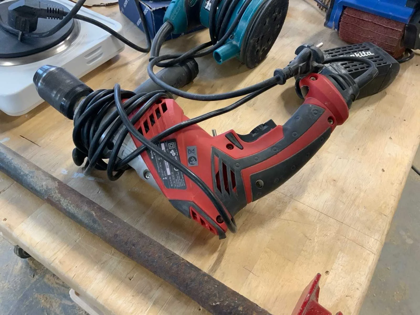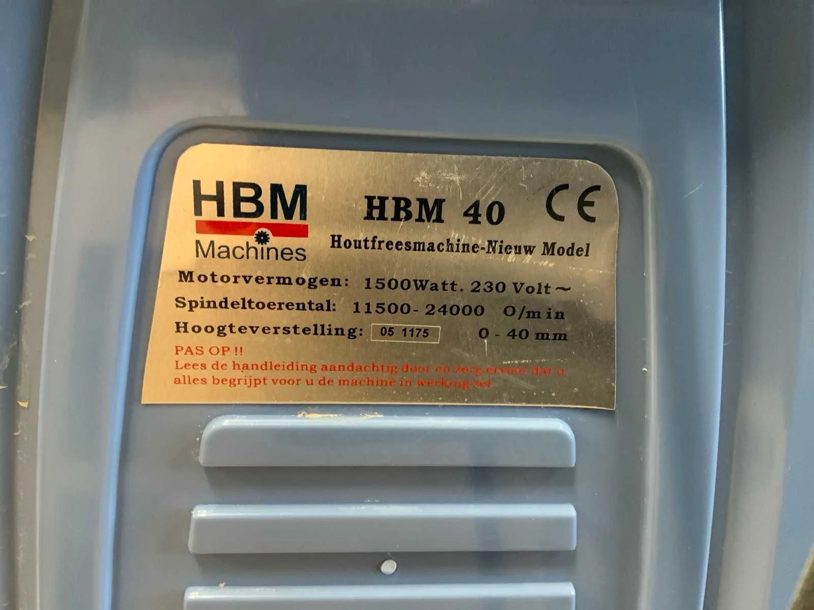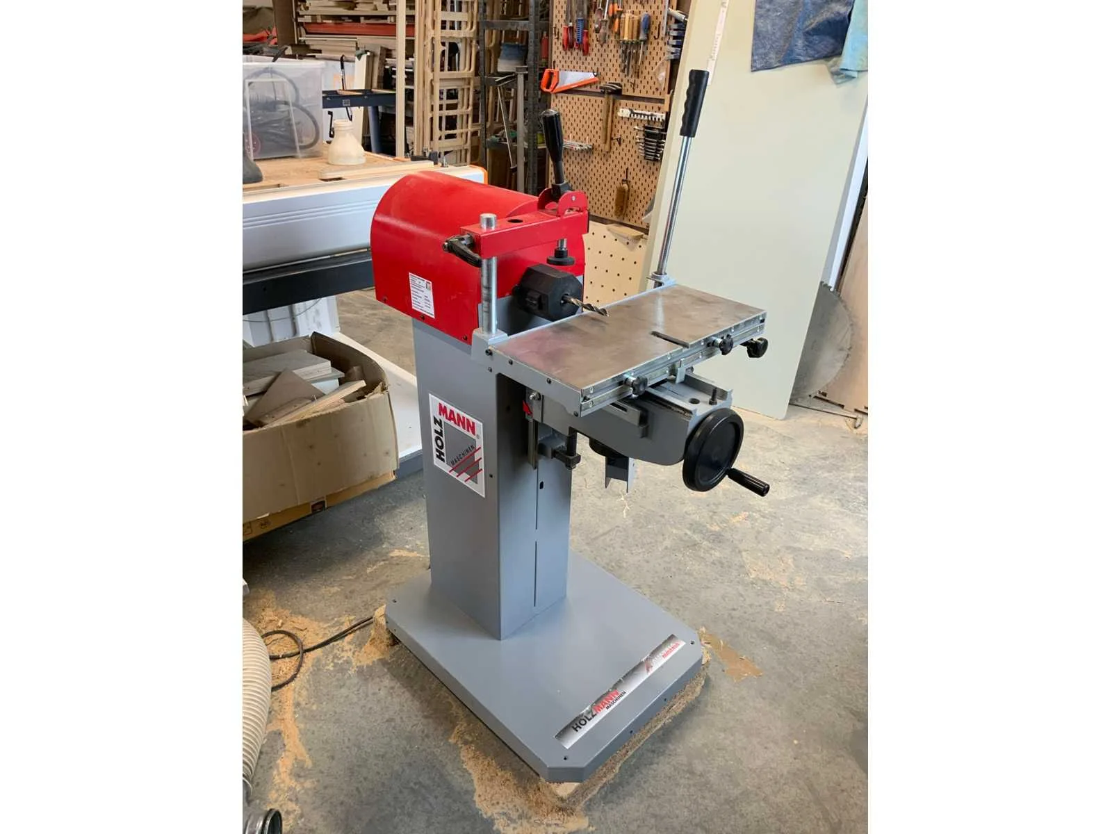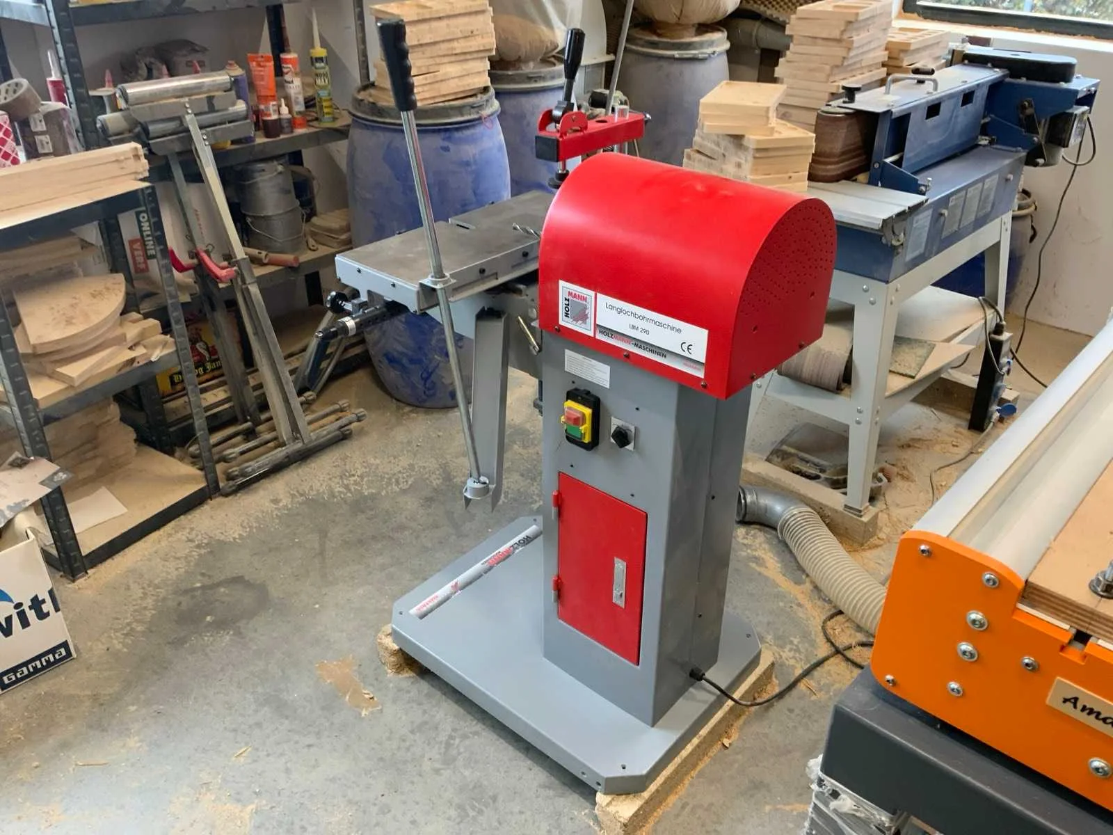 Bestaande uit oa Langgatboormachine Holzmann LBM290 Rollenbaan HBM 1000mm Stofzuiger Nilfisk Buddy II 12 Satineermachine HBM Slagboormachine Einhell RT-ID 65/1 Excentrische schuurmachine Makita 125mm BO5031 Accuboormachine Worx Schuurmachine Varo Keramische kookplaat Pijpklem lijmklem Cirkelzaag Bosch GKS85 met extra zaagblad Waterpomp 2x Vloeistofverwarmers 2x Stapelaar 160cm hoogte handmatig Stelling 60cm mecalux, schapbreedte 1900mm, hoogte 3000mm Houtfreesmachine HBM 40 Kolomboor pattfield PE-800 TBM Frezen CMT Nee