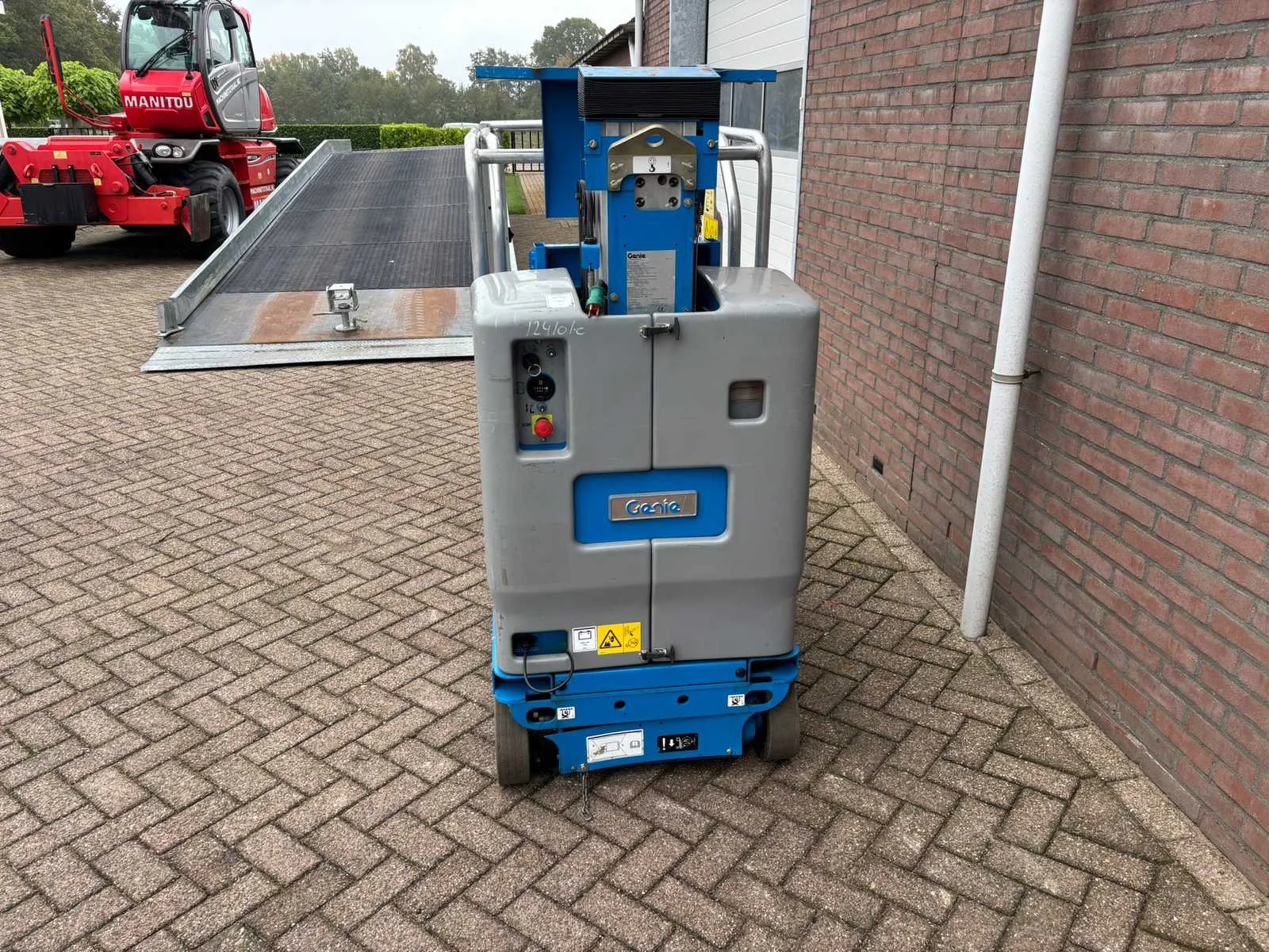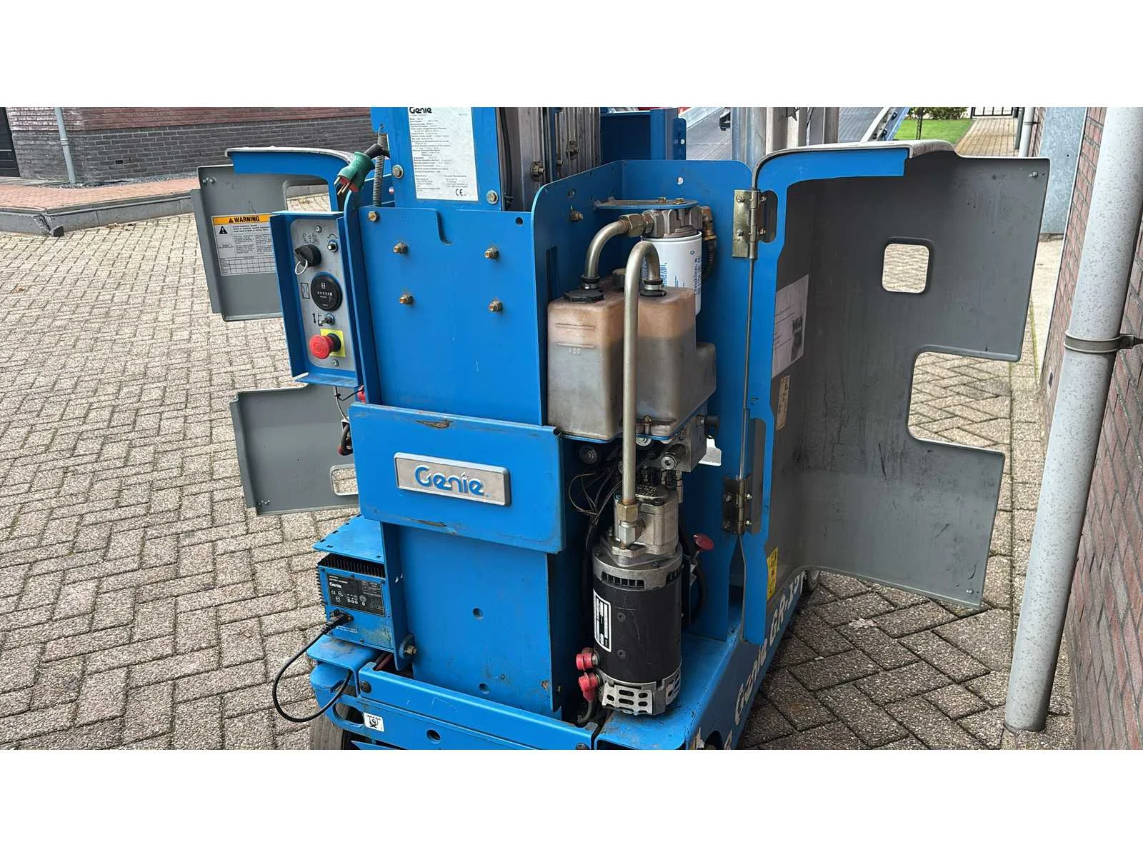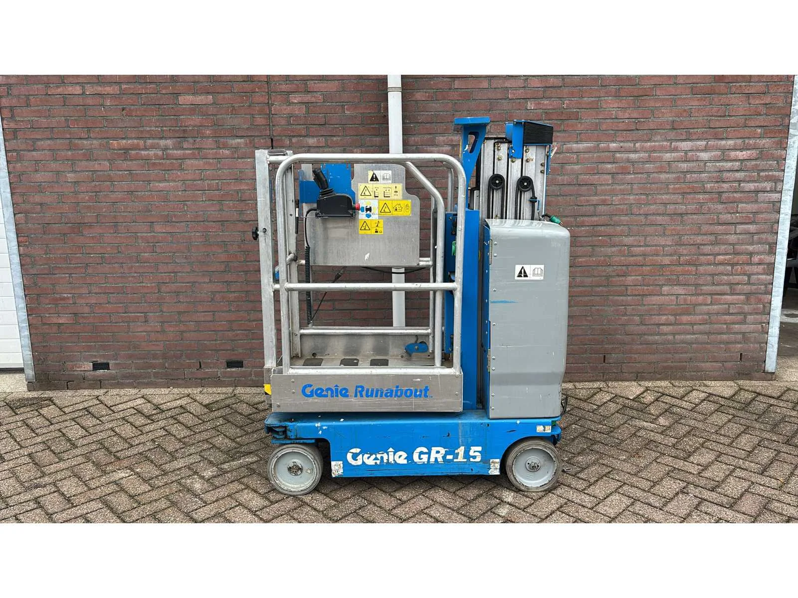 Goed werkende staat Nee Merk: Genie Type: GR-15 Bouwjaar: 2011 Elektrisch: true Werkhoogte: 6520mm Platform capaciteit: 227kg Afgelezen urenstand: 525 Eigen gewicht: 1023kg Totale afmeting L: 2000mm Totale afmeting Breedte: 750mm Totale afmeting Hoogte: 1780mm
