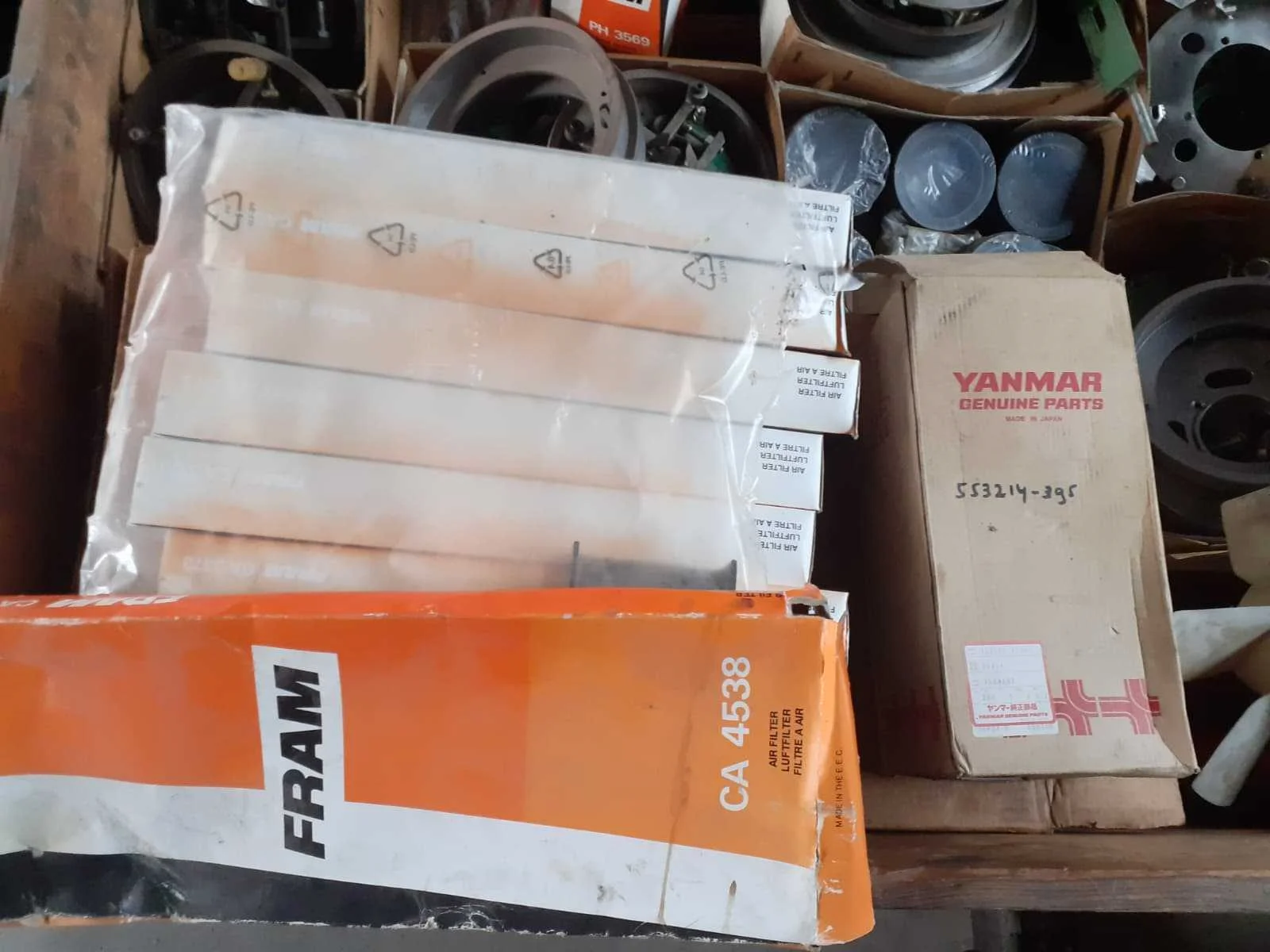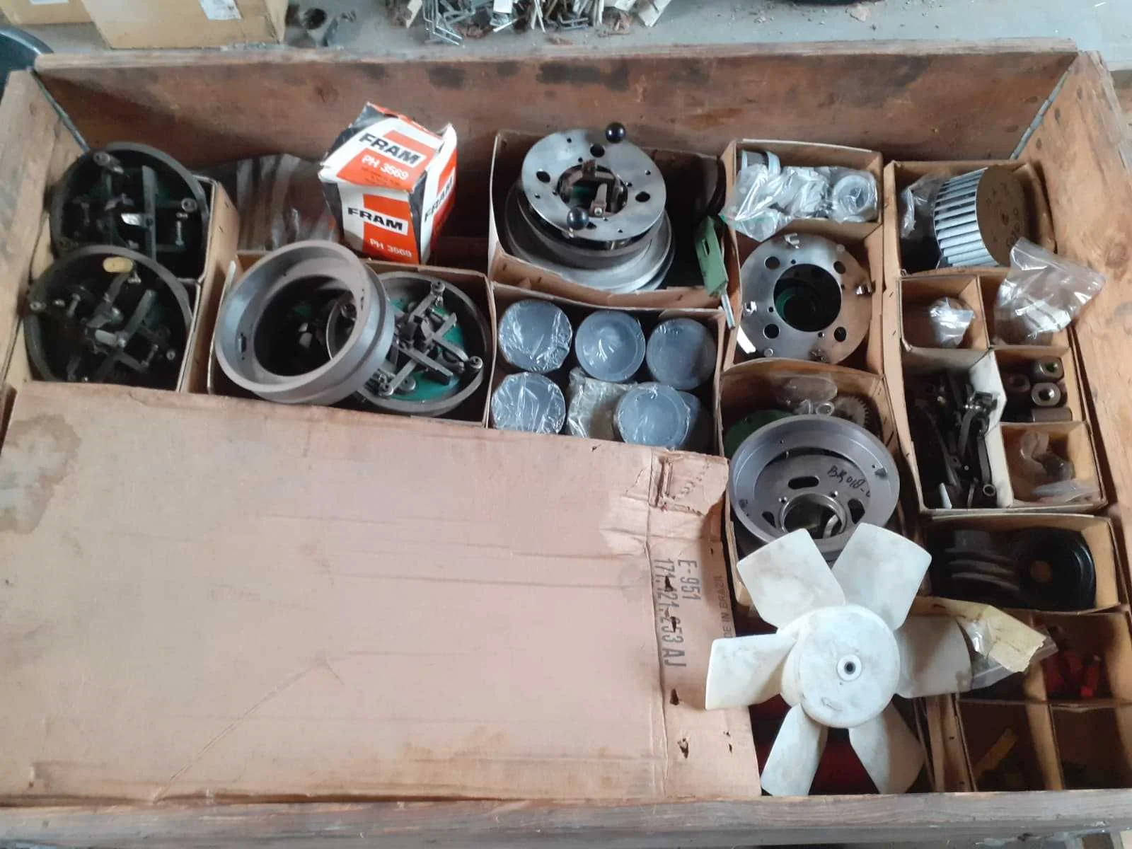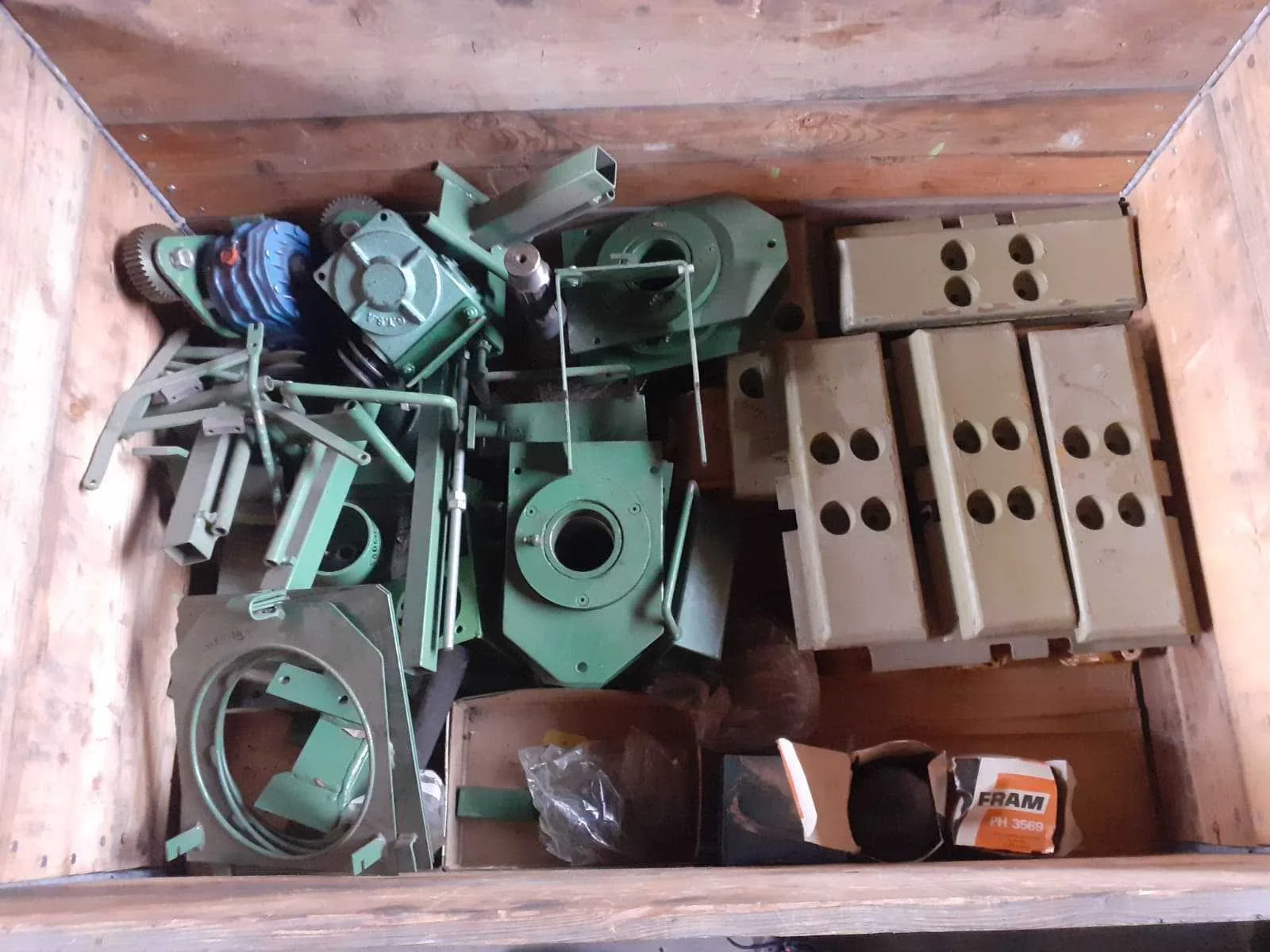 Kist met diverse onderdelen, oorspronkelijk tbv Jamafa spruitenplukkers Rupsdelen Hydromotoren Filters, plukkoppen etc No Merk: Jamafa
