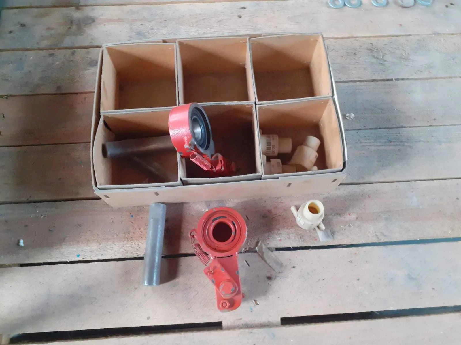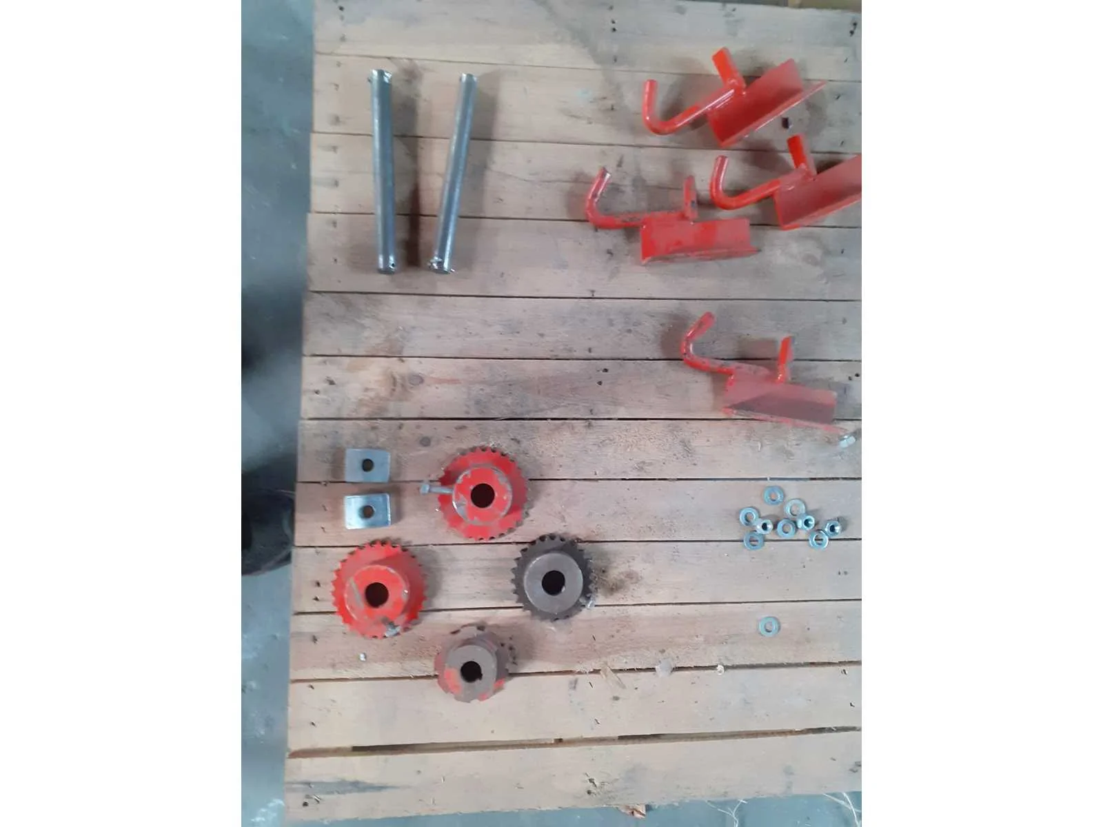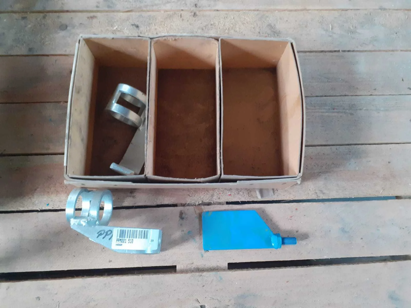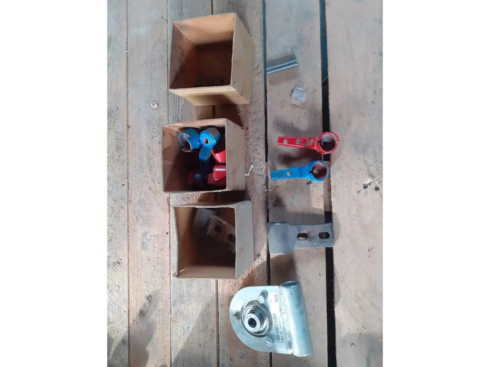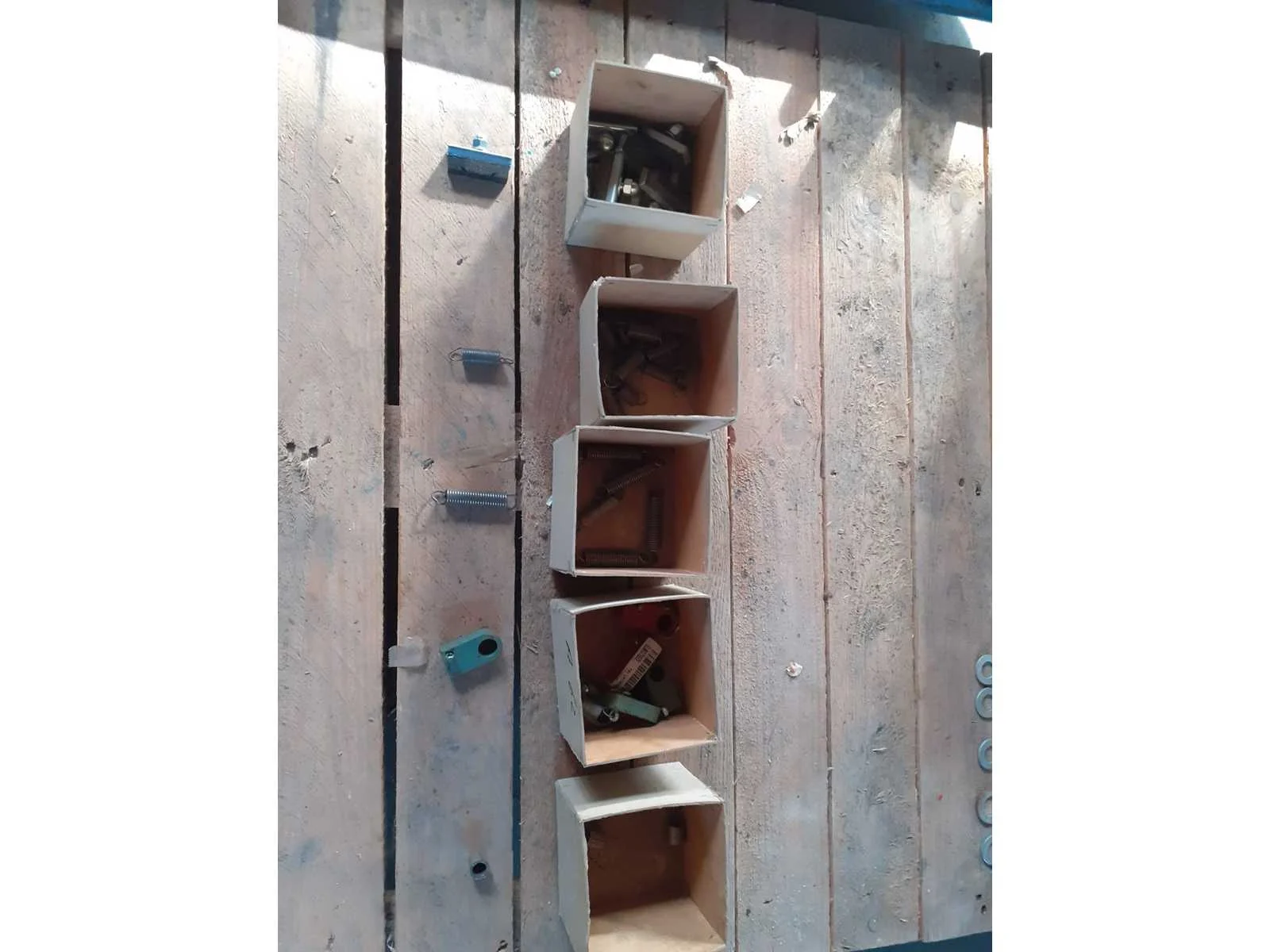 Kist met onderdelen tbv Lauwers plantmachines wielen, carousels etc No